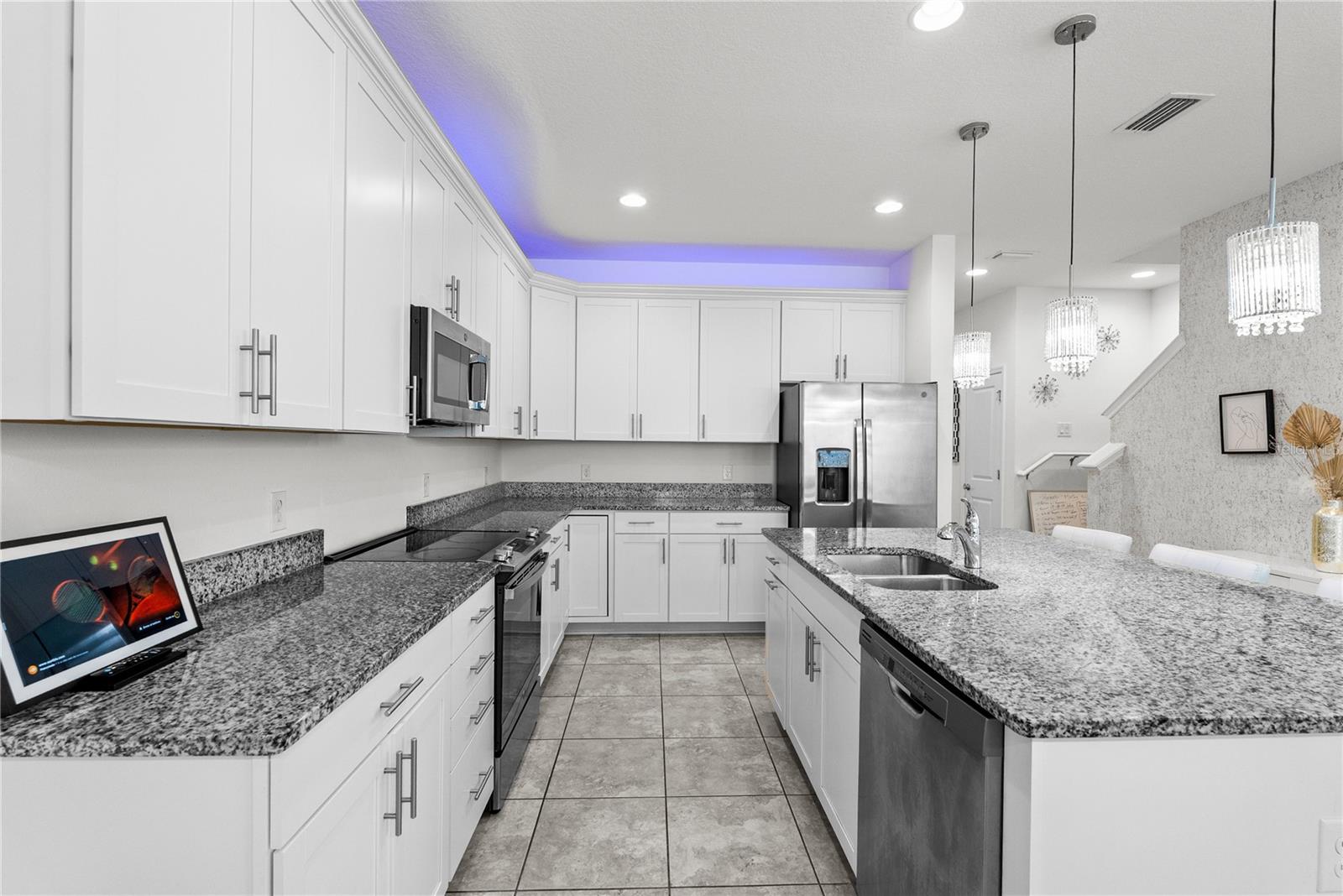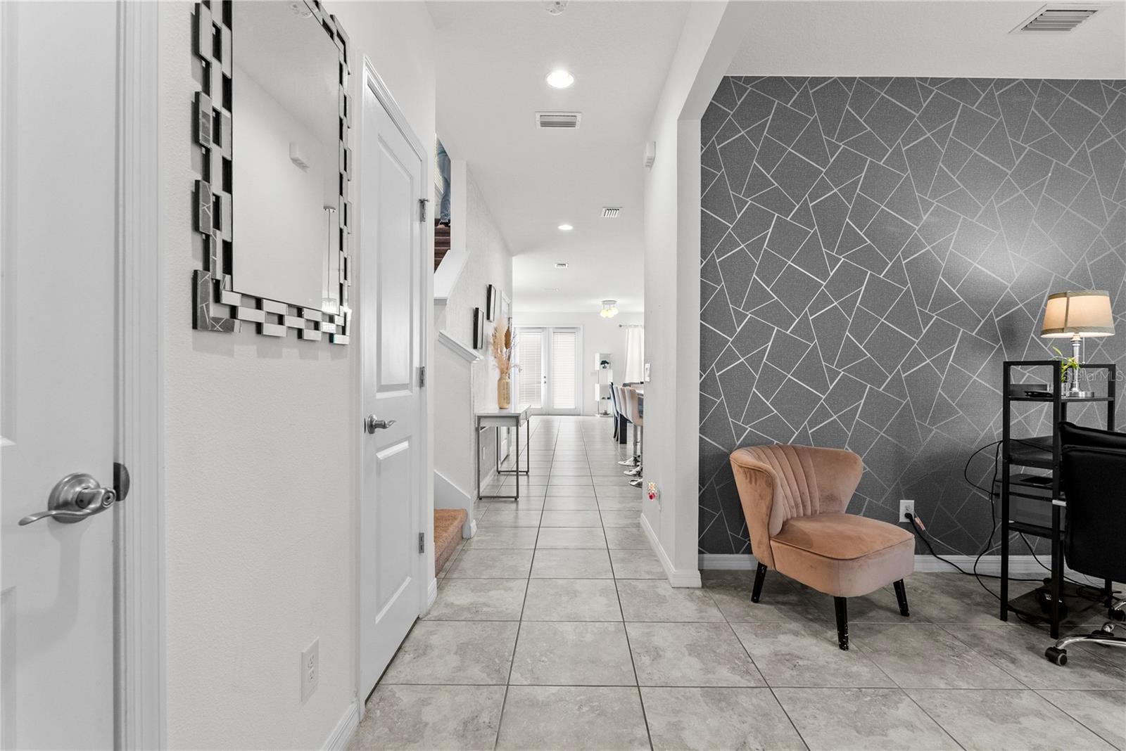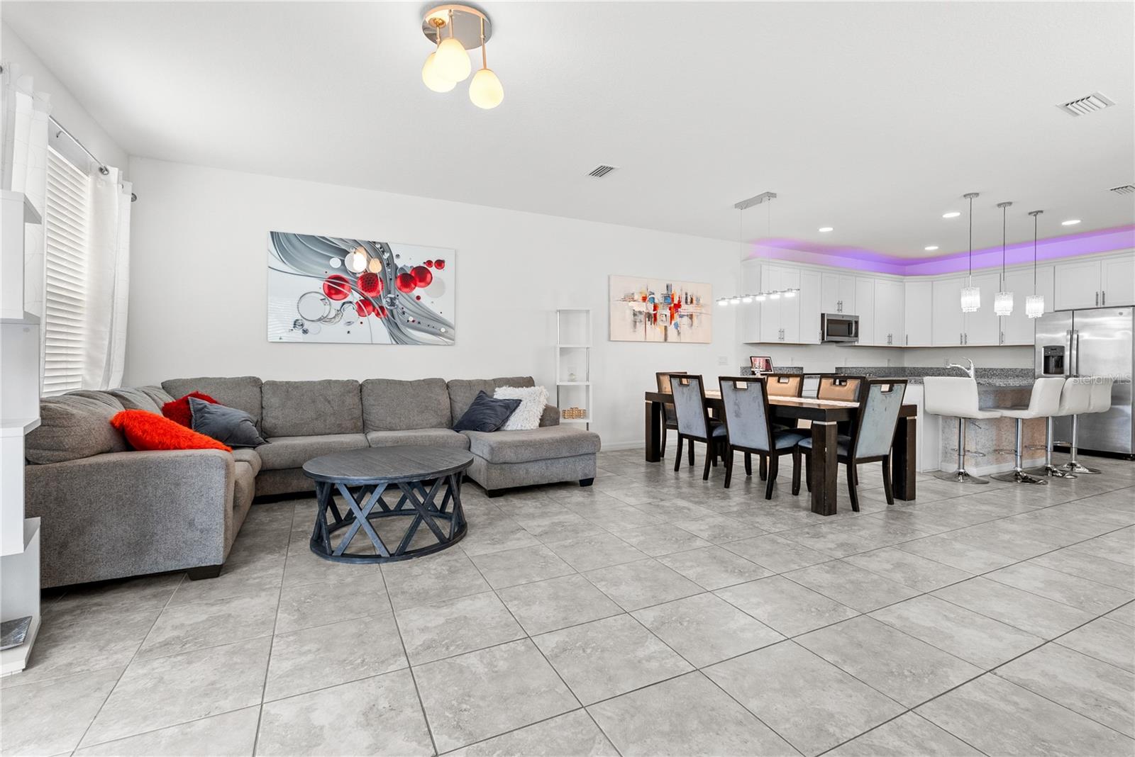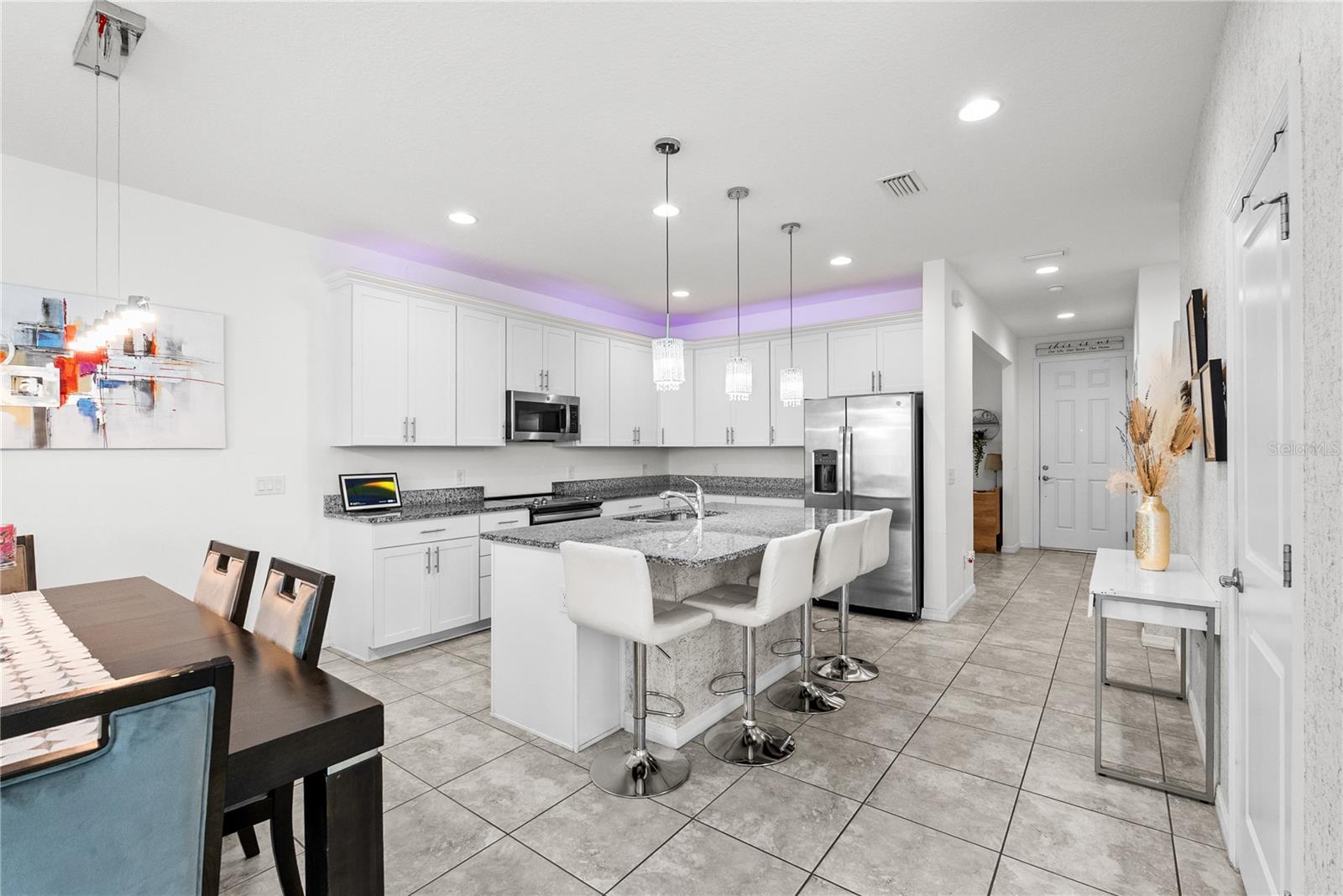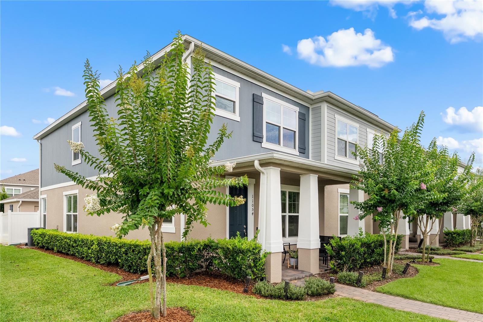 Bem-vindo a esta casa de unidade de canto de 2021 lindamente mantida, onde o conforto atende à funcionalidade a partir do momento em que você chega. Idealmente localizado em uma área de altamente em desenvolvimento-com fácil acesso a grandes rodovias, shopping centers, restaurantes e escolas e a poucos quilômetros da Disney-entrada de tijolos e área de estar coberta criam uma primeira impressão calorosa e convidativa. Entre para encontrar um escritório versátil imediatamente à sua direita - complete com tratamentos de janela - e um hidromático de convidado, convenientemente localizado à esquerda. Continue através do hall de entrada e descubra um layout de conceito aberto complementado pela iluminação natural, projetada para a vida e o entretenimento cotidianos. A cozinha possui uma ilha de granito com iluminação pendente, bancadas em granito e armários brancos com moldagem por coroa e elegante hardware de prata. Aparelhos GE de aço inoxidável-incluindo uma faixa de vidro, microondas, lava-louças e geladeira-complete o espaço. A área de jantar flui sem esforço para a sala de estar, onde o ventilador de teto, várias janelas (com tratamento) e a luz natural aumentam o espaço. Adjacentes da sala de estar, as portas francesas levam a um pátio traseiro particular, parcialmente cercado e pavimentado, que se conecta a uma garagem para dois carros e uma garagem pavimentada de tijolos. No andar de cima, a espaçosa suíte master oferece um closet e banheira de suíte com um walk-in de vidro, chuveiro ambiente e um banco embutido. Uma vaidade dupla com bancadas em granito e armários brancos combinando com hardware prateado completa o espaço. No lado oposto do mestre, há dois quartos adicionais, um banheiro completo e uma conveniente lavanderia no andar de cima com arruela e secadora de transmissão e secadora. Esta casa oferece mais do que apenas belos interiores - oferece um estilo de vida. Não há dúvida de que você vai adorar a conveniência e a energia desta comunidade vibrante. Venha experimentar onde o conforto, o estilo e a localização se reúnem neste lugar, você poderá ligar para "para casa".