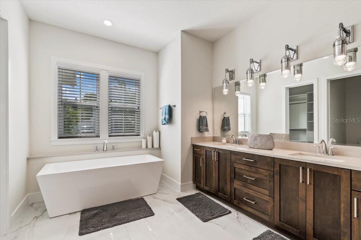 Esta antiga casa modelo do Edifício J&J nunca foi habitada e foi cuidadosamente cuidada. Com 3.453 pés quadrados na casa principal, oferece 4 quartos, 3,5 banheiros e uma garagem ampla para 2,5 carros com espaço extra para carrinho de golfe. Uma casa com piscina independente de 538 pés quadrados adiciona flexibilidade valiosa, oferecendo um quinto quarto, banheiro completo, bar, escritório e closet - uma configuração ideal para família extensa, um espaço de trabalho privado ou quartos de hóspedes. A suíte do proprietário no primeiro andar é um verdadeiro refúgio, com piso de madeira, dois closets generosos e uma banheira inspirada em spa. A madeira projetada flui pelas principais áreas de estar, enquanto a cozinha é projetada tanto para reuniões quanto para a vida cotidiana - apresentando uma grande ilha com assentos, bancadas de quartzo, armários de madeira até o teto e eletrodomésticos Bosch, incluindo geladeira embutida e fogão a gás. Tetos de três metros, vigas de madeira personalizadas, sancas e uma escada aberta dão à casa uma sensação luminosa e convidativa. No andar de cima, um loft conecta três quartos adicionais e dois banheiros completos, proporcionando muito espaço para familiares e convidados. No exterior, a piscina privada de água salgada com cascata é perfeita para fins de semana relaxantes. O pátio coberto com cozinha de verão facilita o entretenimento. As taxas HOA incluem acesso a duas piscinas comunitárias, clube, parques, playgrounds e um diretor de atividades comunitárias. Localizada ao longo da West Orange Fitness Trail e a apenas um passeio de carrinho de golfe até o centro de Winter Garden, esta casa também oferece acesso rápido à Turnpike.