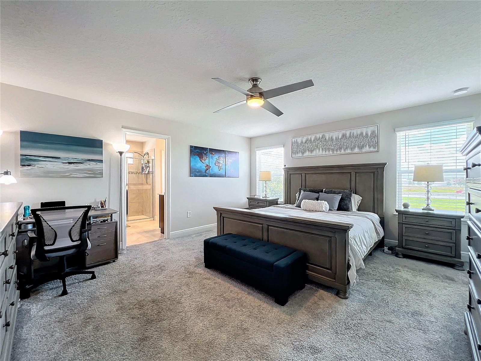 Sua pesquisa termina aqui! Esta impressionante casa de 5 quartos e 3 banheiros possui uma garagem de 2 carros e painéis solares com economia de energia. A grande entrada leva a um quarto no térreo e banheiro completo, sala de jantar formal e espaçosa sala de família. A cozinha moderna inclui uma despensa e um recanto, abrindo um quintal expansivo com um pátio pavimentado e uma banheira de hidromassagem privada - perfeita para entretenimento. No andar de cima oferece 4 quartos, 2 banheiros e um closet em cada quarto. Os recursos adicionais incluem um sistema de amaciador de água em toda a casa. Localizado em uma comunidade desejável com piscina e playground e a poucos minutos das principais rodovias, compras, refeições e escolas de melhor classificação. Uma casa perfeita para sua família!
