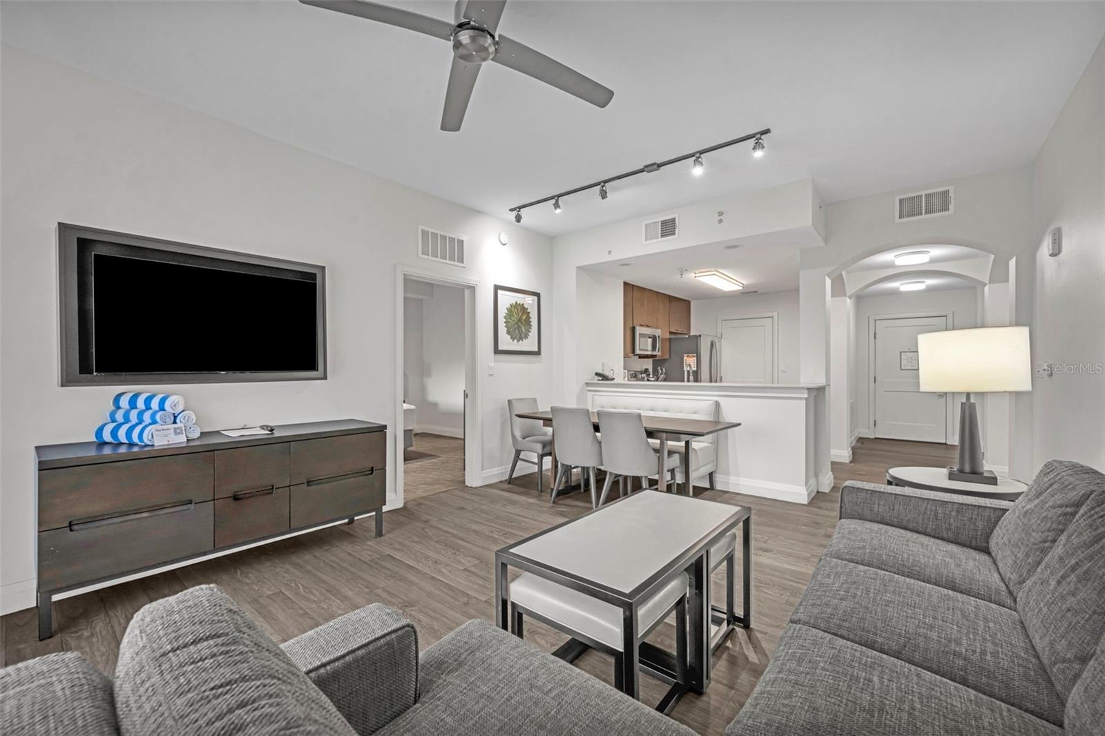 O sonho de investimento de Orlando! Este condomínio totalmente mobiliado de 2 quartos e 2 banheiros está localizado no Grove Resort & Spa, uma das principais comunidades de investimento de férias do centro da Flórida! Situado no 5º andar com uma linha de árvore deslumbrante e vistas do pátio. Localizado a poucos minutos da Disney World e perto de Universal Studios e SeaWorld. A planta piso de conceito aberto apresenta uma cozinha lindamente projetada, uma grande sala grande e janelas de grandes dimensões que preenchem o espaço com a luz solar natural da Flórida. Desfrute de vistas pacíficas da sua varanda privada e relaxe na suíte primária com um banheiro no estilo de spa, oferecendo uma banheira de jardim, chuveiro de azulejos e vaidades duplas. O layout de quartos divididos garante a privacidade e a unidade inclui quatro TVs de tela grande. As comodidades incríveis do resort incluem o Surfari Water Park com um simulador de surf FlowRider®, lâminas lazios, lâminas de água, piscina de entrada zero, piscina de atividades, três piscinas adicionais, um jacuzzi perto do prédio, cabanas particulares com serviço de alimentos e bebidas, restaurantes no local em Longboard Bar & Grill, Spa, Centro de Fitness, arcado e mais. Esse investimento na mão-chave inclui todas as reservas atuais no fechamento, com o gerenciamento de gerenciamento no local operações e manutenção de hotéis para obter uma renda verdadeiramente sem mãos. Agende sua exibição particular hoje!