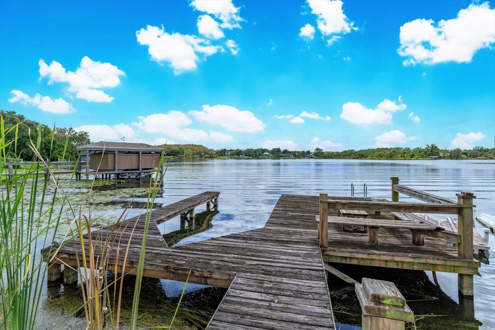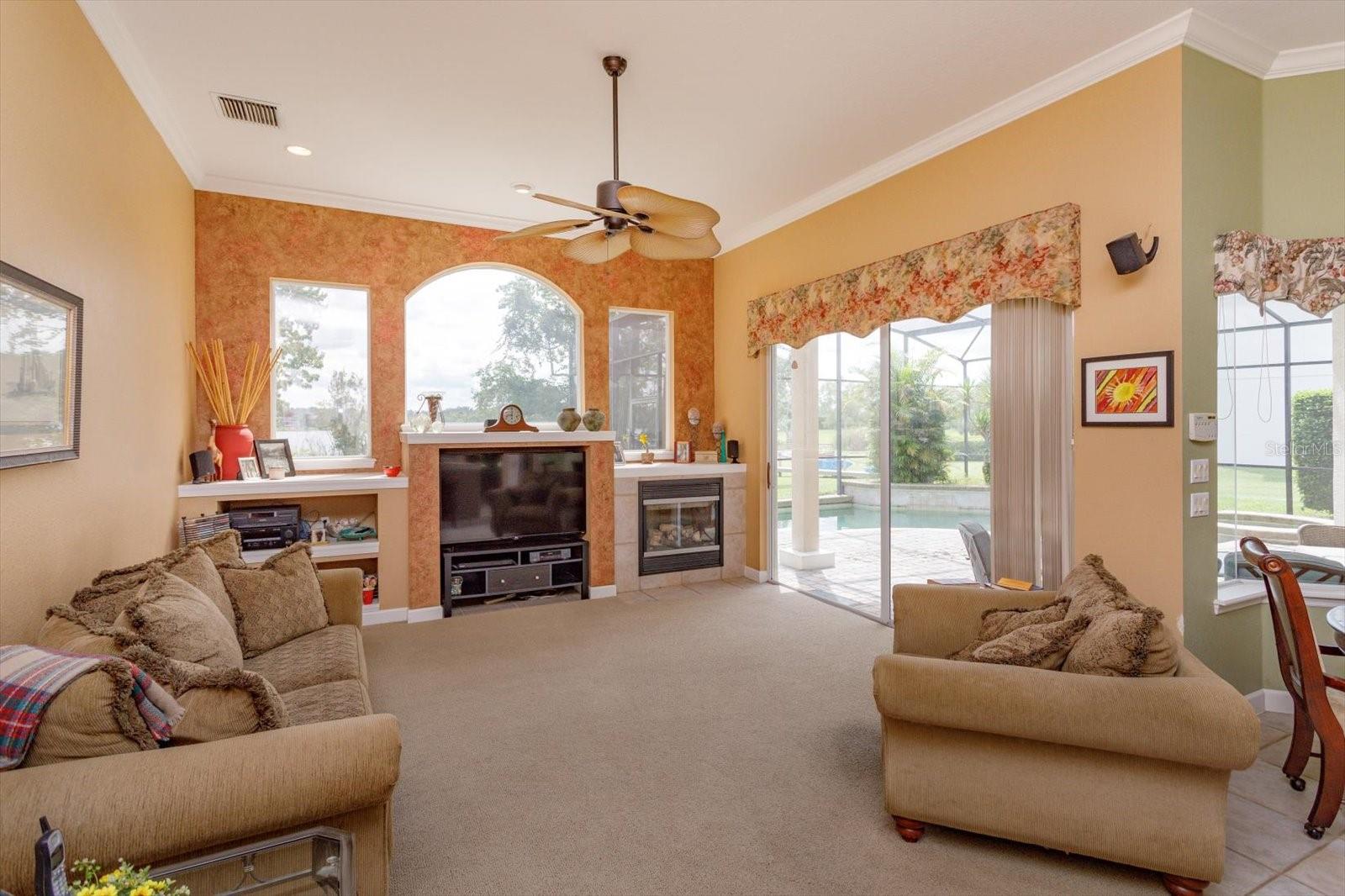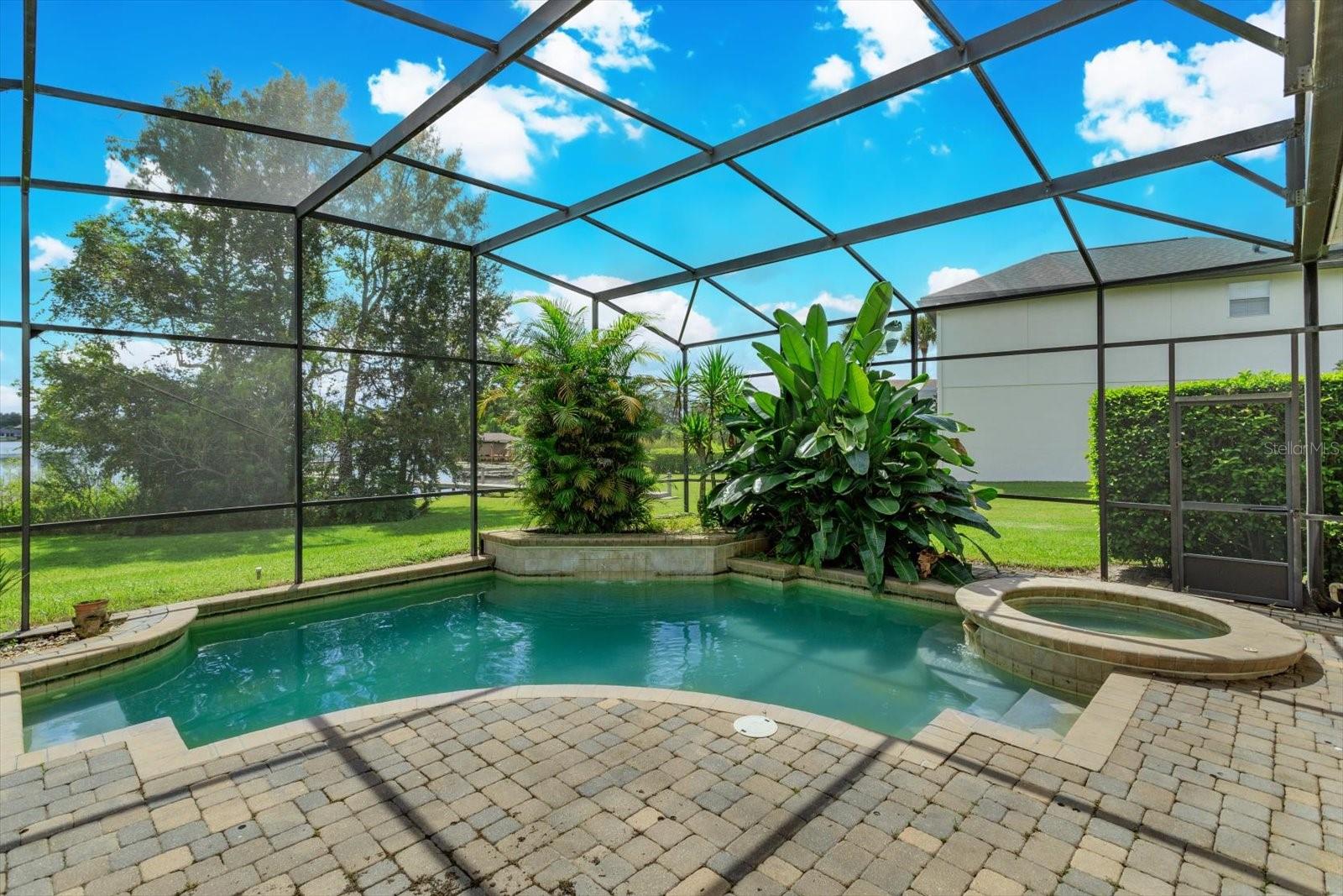 Impressionante casa personalizada à beira do lago com 3 quartos, 3 banheiros, além de escritório ou escritório, sala de estar e jantar formal e uma piscina protegida com vista para os fogos de artifício noturnos da Disney! Este plano de quarto dividido oferece privacidade e elegância de tetos de 15 pés e 20 pés, com azulejos de cerâmica por toda parte, bancadas de granito, eletrodomésticos de aço inoxidável, armários de 42" com sancas na cozinha e lavanderia. Sistema de aspiração central na cozinha e lareira a gás na sala da família. A espaçosa suíte principal inclui um armário personalizado, penteadeiras divididas e box amplo. A sala bônus possui sua própria unidade de ar condicionado e controles, e é pré-instalada e pronta para ar condicionado para um banheiro adicional e armário. Aproveite a conveniência de uma lavanderia interna e garagem para 3 carros. Saia para sua doca privada em um lago de esqui privado de 38 acres e relaxe em seu oásis no quintal enquanto aprecia a vista serena do lago.