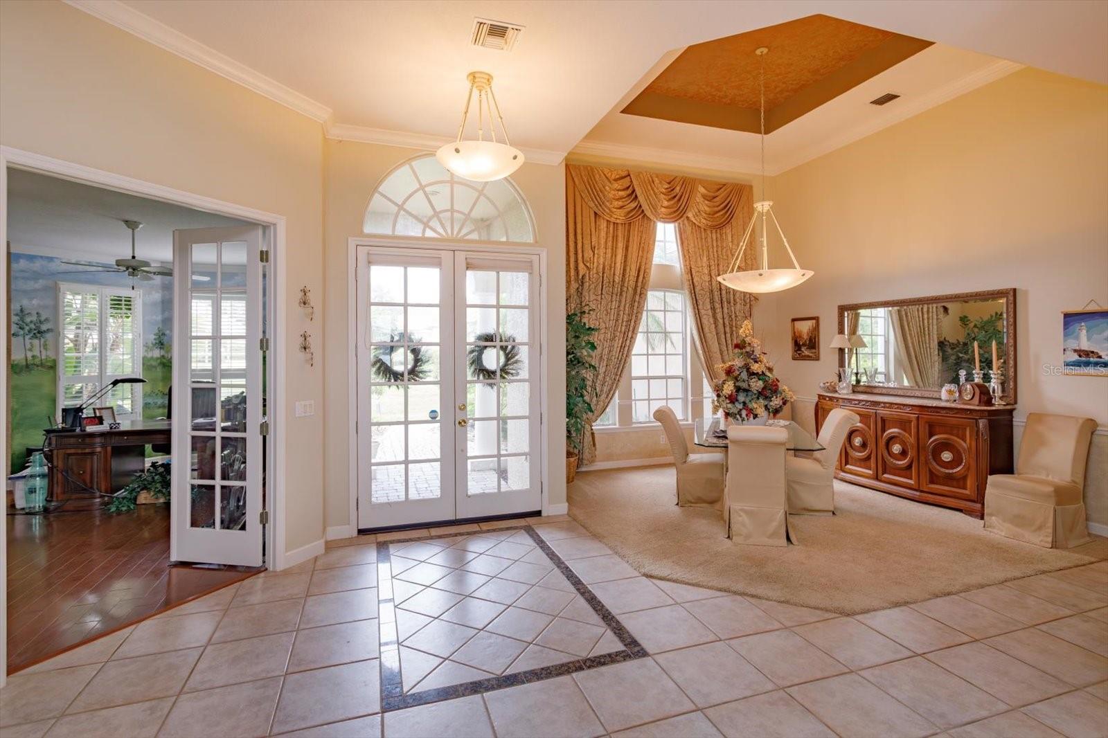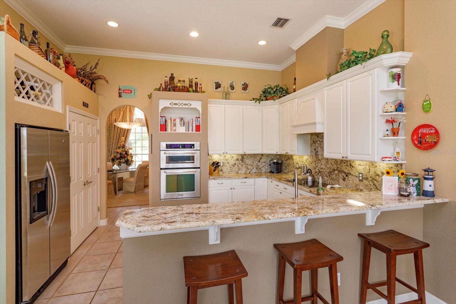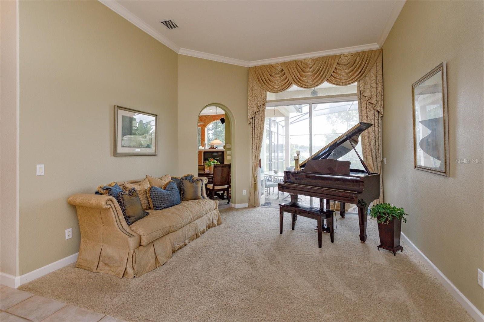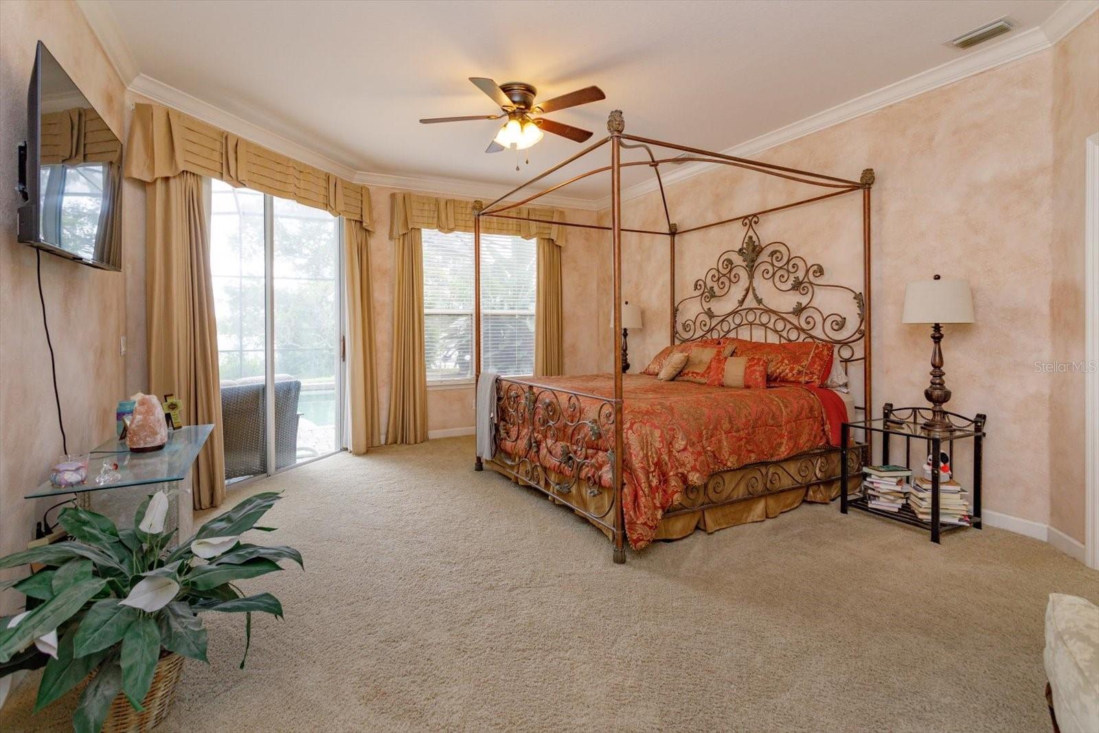 Impressionante casa personalizada à beira do lago com 3 quartos, 3 banheiros, além de escritório ou escritório, sala de estar e jantar formal e uma piscina protegida com vista para os fogos de artifício noturnos da Disney! Este plano de quarto dividido oferece privacidade e elegância de tetos de 15 pés e 20 pés, com azulejos de cerâmica por toda parte, bancadas de granito, eletrodomésticos de aço inoxidável, armários de 42" com sancas na cozinha e lavanderia. Sistema de aspiração central na cozinha e lareira a gás na sala da família. A espaçosa suíte principal inclui um armário personalizado, penteadeiras divididas e box amplo. A sala bônus possui sua própria unidade de ar condicionado e controles, e é pré-instalada e pronta para ar condicionado para um banheiro adicional e armário. Aproveite a conveniência de uma lavanderia interna e garagem para 3 carros. Saia para sua doca privada em um lago de esqui privado de 38 acres e relaxe em seu oásis no quintal enquanto aprecia a vista serena do lago.