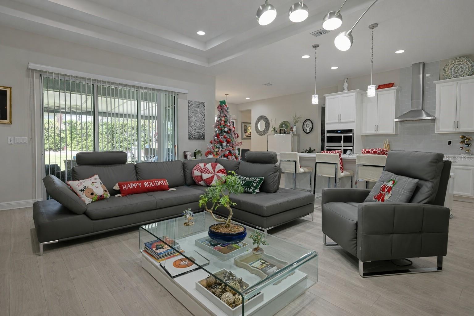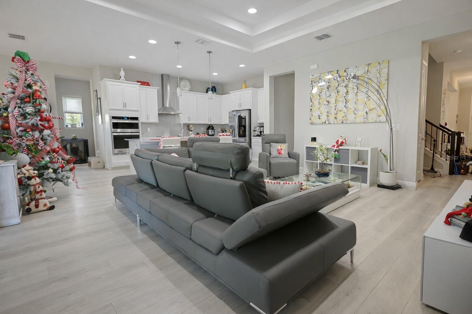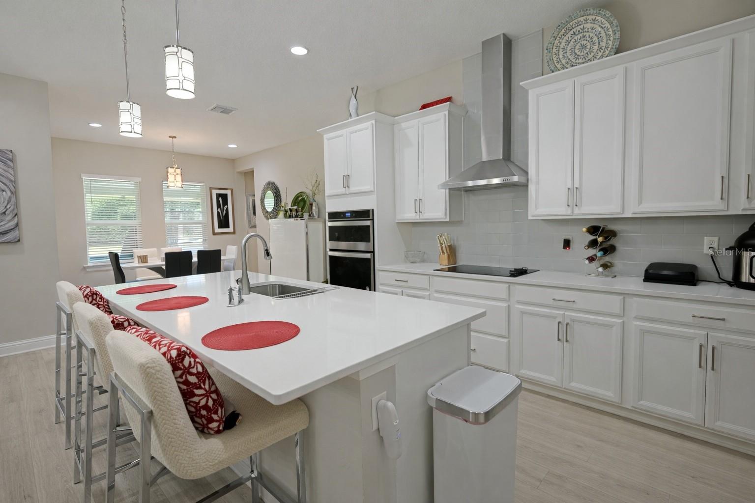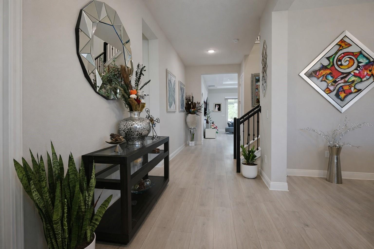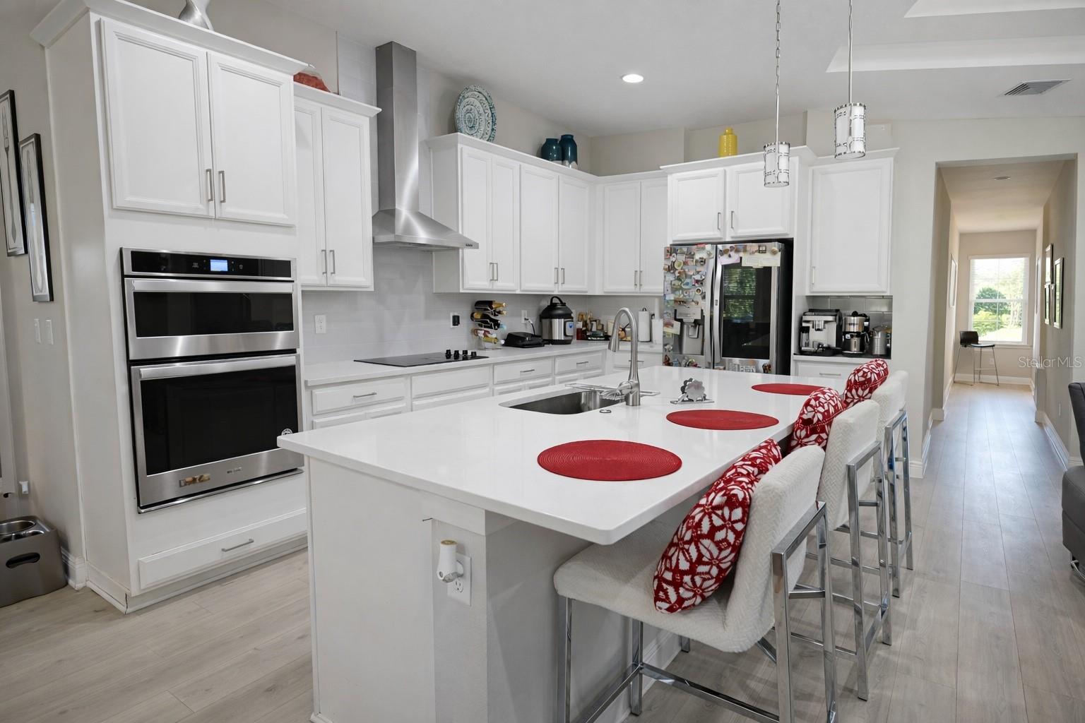 Localizada na desejável área de Wincey Groves/Hamlin em Winter Garden, esta espaçosa planta baixa de Ellington, construída em 2021, oferece cinco quartos, 3,5 banheiros e aproximadamente 3.628 pés quadrados de área útil, incluindo uma desejável suíte do proprietário no primeiro andar, um escritório dedicado e uma sala de jantar separada para entretenimento sem esforço. A cozinha gourmet possui bancadas de quartzo, armários de linho e uma combinação de forno/microondas, abrindo para uma grande sala iluminada com tetos de 3 metros e piso de cerâmica elegante em todas as áreas de estar principais, enquanto os quartos têm carpete macio para maior conforto. Ao ar livre, uma grande varanda coberta flui para uma ampla área de entretenimento completa com uma cozinha externa totalmente equipada, amplo espaço para sentar e uma aconchegante área com fogueira, ideal para reuniões nas noites frias da Flórida. No andar de cima, um generoso loft ancora os quartos secundários, proporcionando um retiro ideal para hóspedes, familiares ou uma área de mídia/recreação. Situada em um enorme lote de esquina de 7.500 pés quadrados com orientação voltada para o leste, esta casa também possui uma garagem tandem para 3 carros para armazenamento extra, um sistema de sprinklers medido e muito espaço no quintal, tudo a poucos minutos das lojas, restaurantes, principais rodovias de Hamlin e da procurada Horizon High School e outras escolas de alto nível de Orange County.