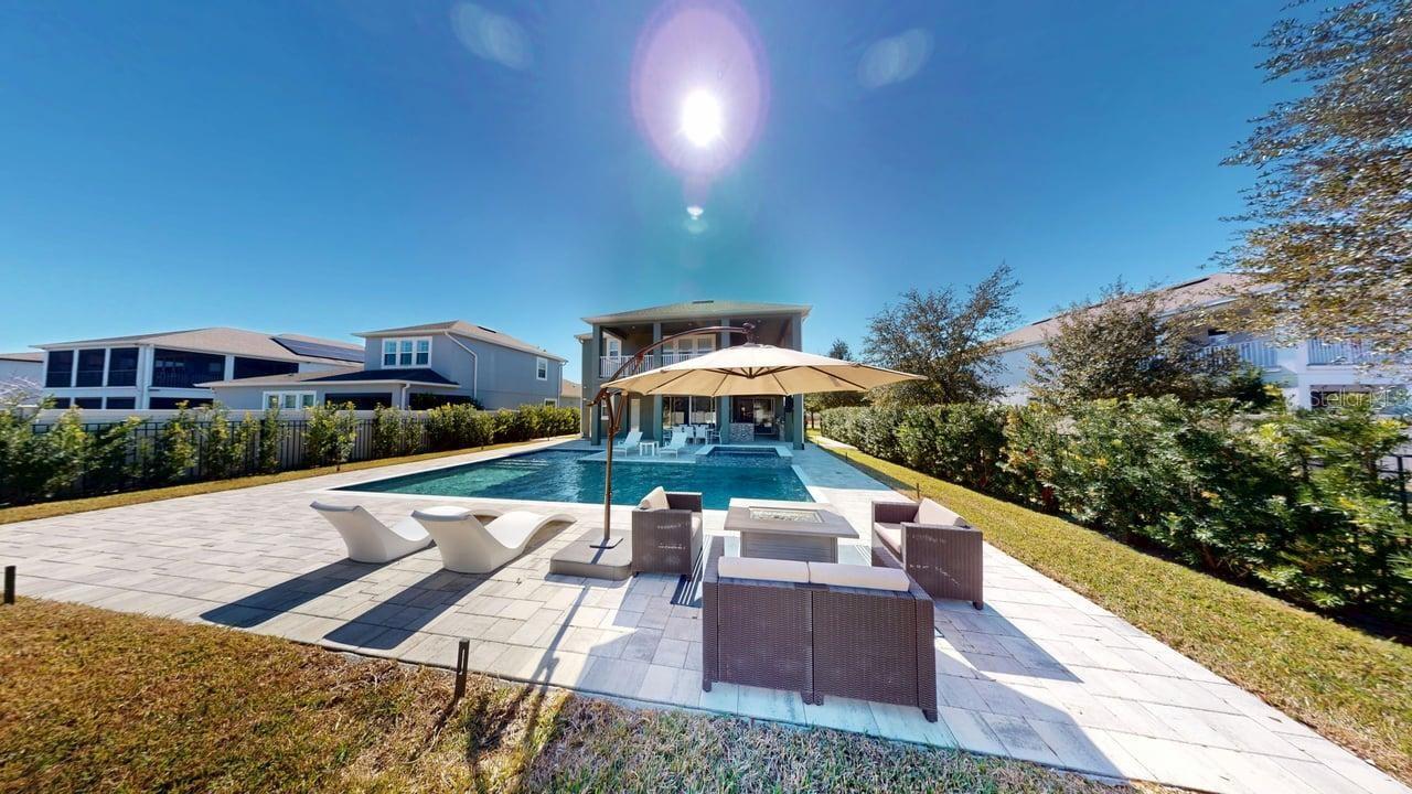 Luxuosa casa de 5 quartos e 5 banheiros com DUAS SUÍTES MASTER. A suíte principal fica no segundo andar. A segunda suíte está localizada no primeiro andar. Ladrilho cerâmico 8 x 48 com aspecto aconchegante de madeira em toda a casa. Ilha de cozinha enorme. Cachoeira de Quartzo para Ilha de Cozinha. Pia de cozinha de ferro fundido Undermount da fazenda. Área de despensa do mordomo e ampla despensa entre a cozinha e a sala de jantar. Armários de madeira maciça de 42 polegadas com iluminação embutida e portas e gavetas com fechamento suave. Enchimento de panela acima do fogão a gás. Os aparelhos de aço inoxidável incluem forno embutido e micro-ondas. Armazenamento de vinho embutido personalizado, refrigeradores de vinho e cerveja sob as escadas. Pátio externo coberto no primeiro andar e pátio coberto no segundo andar com vista para a enorme piscina e spa. Configuração de som surround com alto-falantes de teto no interior da casa. Cozinha externa com pia, geladeira, cooktop, churrasqueiras a gás e carvão. Comunidade de Gás Natural com gás natural subterrâneo para churrasqueira externa, cooktop de cozinha, piscina e aquecedor de spa. Piscina comunitária com banheiros, área de lazer com parque infantil, cais e acesso ao lago Avalon.