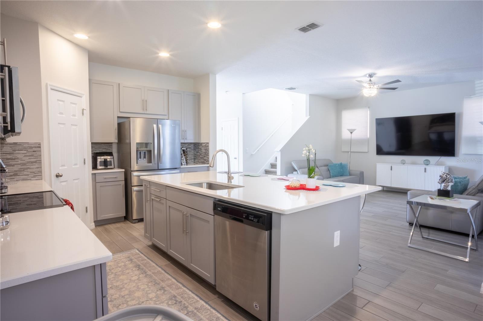 Linda casa unifamiliar moderna com 3 quartos e 2,5 banheiros, cuidadosamente projetada para oferecer conforto e estilo. A cozinha de conceito aberto apresenta bancadas de quartzo, uma ilha de café da manhã, backsplash luxuoso e armários altos cinza, criando um espaço elegante e funcional. O primeiro andar oferece piso elegante de tábuas de azulejos, um espaço versátil e flexível ideal para um escritório doméstico ou estudo, um lavabo conveniente e armazenamento extra com um armário sob as escadas. Quartos espaçosos por toda parte, com uma suíte principal iluminada e convidativa. Incrível localização no Winter Garden em Avalon Rd, a poucos minutos de Hamlin, Flamingo Crossings, parques temáticos, FL-429, Orange County National Golf Center, Clermont, Windermere e escolas de primeira linha.