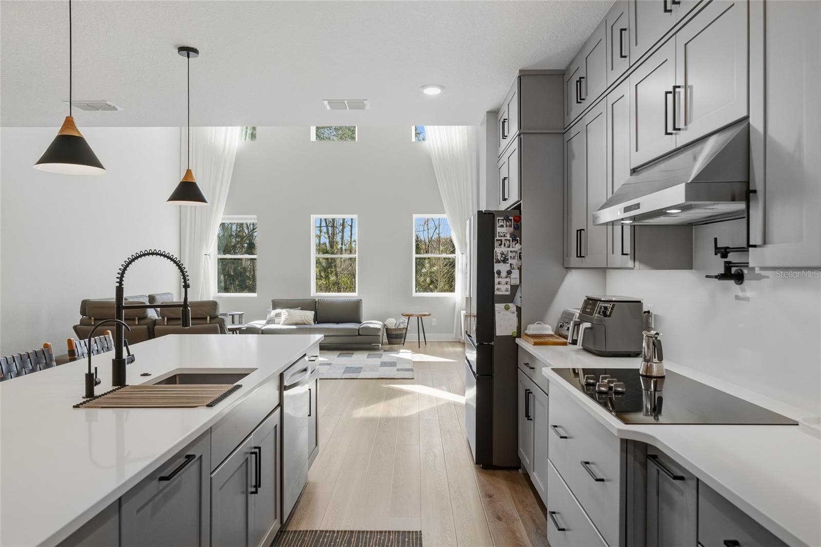 Casa excepcional atualizada em lote de conservação premium no Winter Garden Bem-vindo a esta residência de dois andares lindamente atualizada, localizada em uma das comunidades mais desejáveis de Winter Garden, dividida em zonas para escolas A de alta classificação e cercada por conveniência, estilo de vida e valor de longo prazo. Com 5 quartos e 4,5 banheiros, esta casa oferece um layout espaçoso e funcional projetado tanto para a vida cotidiana quanto para o entretenimento. A suíte principal oferece um retiro privado com um amplo closet e um espaçoso banheiro principal com chuveiro grande, pias duplas e acabamentos elevados por toda parte. Os quartos adicionais oferecem conforto e arrumação bem planeada. A partir do momento em que você entra, os dramáticos tetos de pé-direito duplo criam uma impressionante sensação de espaço e luz natural. Uma parede personalizada com painéis de madeira do chão ao teto serve como um ponto focal impressionante na área de estar principal, adicionando calor e presença arquitetônica. Em toda a casa, cortinas personalizadas foram cuidadosamente instaladas e permanecerão na propriedade, um acessório elegante e valioso raramente incluído. A cozinha de conceito aberto combina acabamentos atemporais com funcionalidade moderna, apresentando armários atualizados, bancadas de quartzo, encanamentos refinados e detalhes de design cuidadosamente selecionados. Mais de 115.000 dólares em atualizações de projeto do construtor foram investidos nesta casa, além de melhorias personalizadas concluídas após a construção. Agregando ainda mais valor e conforto, a casa está equipada com um sistema de filtragem de água para toda a casa, fornecendo água filtrada em toda a propriedade para maior qualidade, comodidade e tranquilidade. A varanda coberta foi pré-instalada e equipada com planejamento elétrico para uma futura cozinha de verão, oferecendo flexibilidade para entretenimento ao ar livre e personalização de longo prazo. Situada num lote de conservação premium, esta propriedade oferece privacidade excepcional, sem vizinhos traseiros e sem desenvolvimento futuro atrás da casa. O quintal cercado oferece um ambiente externo tranquilo, ideal para relaxar ou realizar reuniões. Os destaques adicionais incluem uma entrada ampliada, garagem para dois carros e uma localização a poucos minutos das principais rodovias, lojas, restaurantes e entretenimento. Com um HOA baixo e posicionado em um dos corredores de maior valorização do Winter Garden, esta é uma rara oportunidade de possuir uma casa cuidadosamente atualizada que combina privacidade, qualidade e localização estratégica. Não perca esta oportunidade de morar com qualidade, conforto e estilo. Agende sua visita!