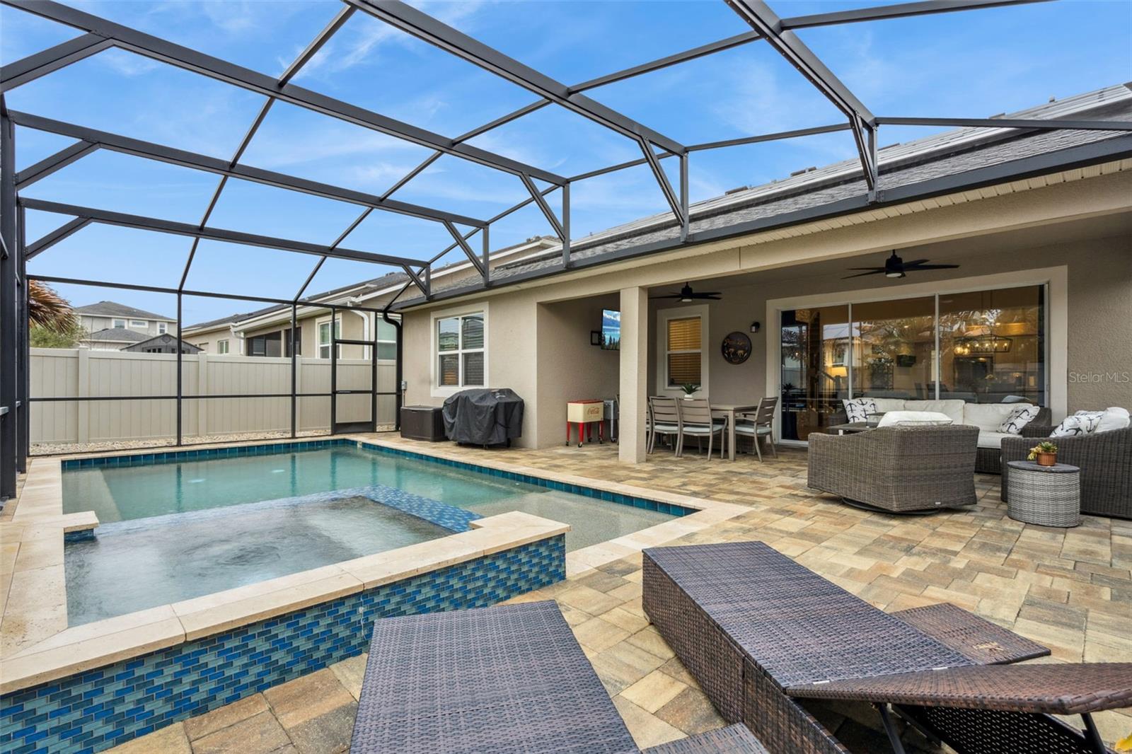 Esta casa deslumbrante está maravilhosamente situada no coração de Horizon West e Winter Garden, Flórida, a poucos minutos do Walt Disney World Resort. A comunidade encantadora e pitoresca oferece uma sensação de bairro acolhedor com comodidades maravilhosas, incluindo abundante espaço verde, um grande parque infantil, centro de fitness, clube e piscina comunitária. Com ruas pitorescas perfeitas para caminhadas, ciclismo e passeios noturnos, este é realmente um lugar onde você pode relaxar, conectar-se e aproveitar o melhor da vida na Flórida. A partir do momento em que chegar, você se sentirá em casa. O convidativo foyer apresenta detalhes aconchegantes e aconchegantes que dão o tom para o design cuidadoso. Logo na entrada há um escritório privado no primeiro andar com portas francesas, juntamente com uma porta secundária de ligação à área de estar principal, tornando-o ideal para trabalhar em casa, estudar tranquilamente ou um retiro tranquilo. O lindo porcelanato com acabamento em madeira flui perfeitamente pelos principais espaços, criando uma atmosfera elegante e confortável. A cozinha gourmet é o verdadeiro coração da casa, oferecendo armários cinza claro, bancadas de quartzo, ferragens de níquel escovado e backsplash perfeitamente coordenado. Fornos embutidos, cooktop e uma ilha espaçosa com iluminação pendente tornam este espaço tão funcional quanto acolhedor, enquanto a grande despensa e a iluminação acima e abaixo dos armários agregam comodidade e aconchego. A área de estar principal foi projetada para reunir e criar memórias, destacada por uma impressionante parede de pedra com lareira elétrica, manto flutuante e suporte para televisão - criando o ponto focal perfeito. O primeiro andar também possui uma lavanderia espaçosa, uma área de armazenamento conveniente com prateleiras e ganchos logo no interior da garagem e um elegante banho de pó. A suíte principal, localizada no nível principal, oferece um refúgio relaxante com teto falso, luxuoso piso de pranchas de vinil e um amplo closet. O banheiro principal tipo spa dá continuidade ao design elegante da casa com armários cinza claro, bancadas de granito e penteadeiras e espelhos separados altamente desejáveis. No andar de cima, um amplo espaço flexível oferece infinitas possibilidades de entretenimento, noites de cinema ou dias de jogos com a família e amigos. Dois quartos compartilham um banheiro Jack and Jill com pias duplas e uma combinação de banheira e chuveiro, enquanto um quarto adicional e um banheiro completo no corredor proporcionam conforto e privacidade para hóspedes ou entes queridos. Saia e experimente o verdadeiro empecilho da casa - seu oásis privado no quintal. A bela piscina e spa apresentam iluminação deslumbrante para o ambiente noturno, uma varanda coberta perfeita para refeições ao ar livre ou relaxar à sombra e um amplo deck com tela que oferece um espaço generoso para entretenimento e relaxamento. A piscina é aquecida a gás para diversão durante todo o ano, e a cerca de privacidade mantém as casas vizinhas fora da vista, criando um retiro tranquilo e isolado. Os painéis solares tornam a casa incrivelmente eficiente em termos energéticos e as atualizações adicionais incluem um sistema de amaciador de água. Com todos os eletrodomésticos incluídos, esta casa pronta para morar é uma oportunidade maravilhosa de desfrutar de conforto, estilo e conveniência em um dos locais mais desejáveis da Flórida Central.