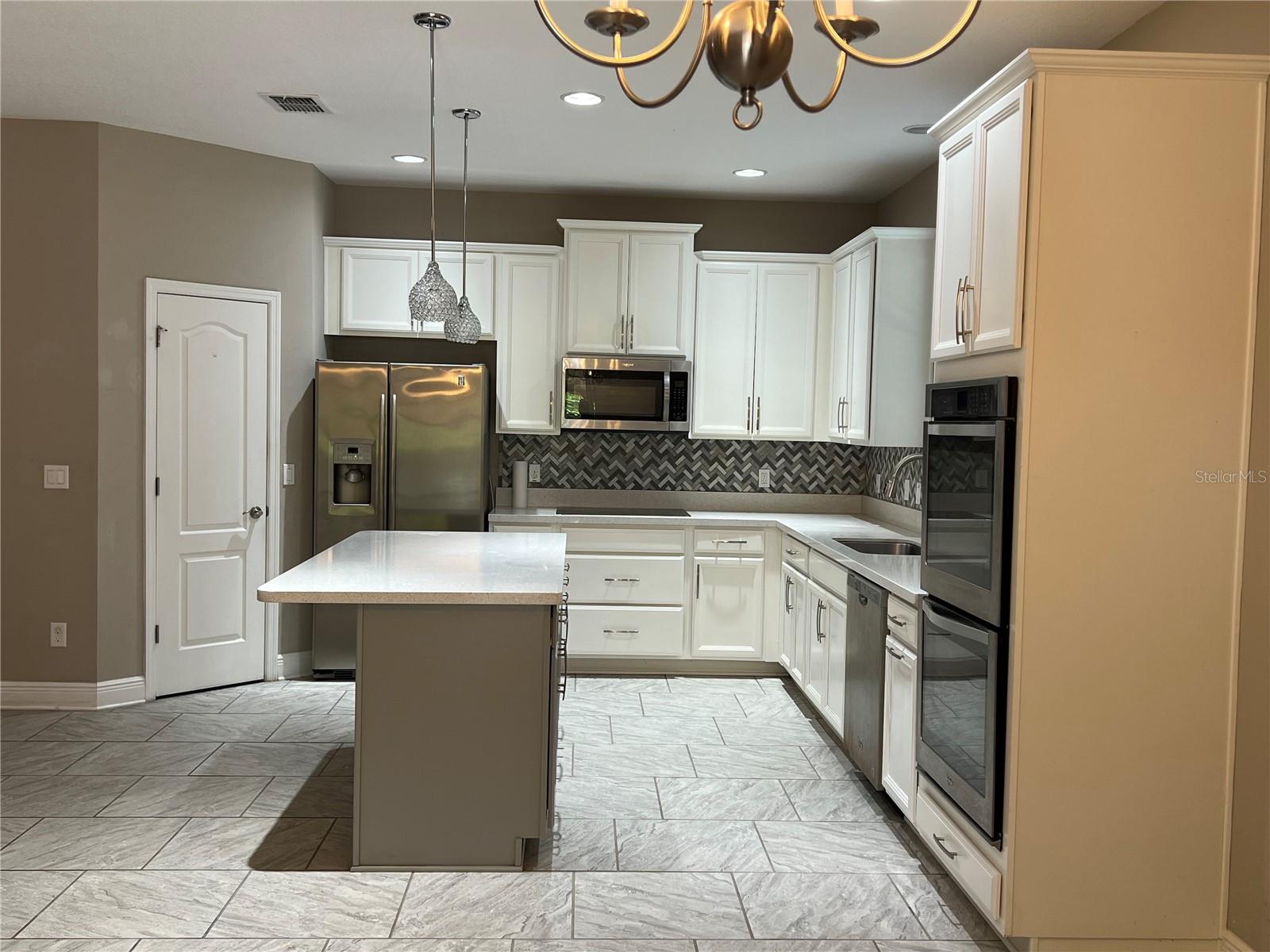 Bem-vindo a esta requintada casa de 5 quartos e 3 banheiros, bem equipada no coração de Winter Garden, na bela comunidade de Orchard Hills. Ao subir, você notará a calçada de tijolos, a varanda frontal com grades e piso de cerâmica. No momento em que você entra, você será recebido por uma ampla planta aberta que conecta perfeitamente as áreas de estar, jantar e cozinha. A cozinha dispõe de ilha, todos os eletrodomésticos em inox, fogão de bancada em vidro, forno de duas portas e despensa. Os proprietários não pouparam gastos na atualização desta casa: com revestimentos cerâmicos de qualidade em todas as áreas de estar e piso laminado de alta qualidade, com aspecto de mármore, em todos os quartos. Vidro duplo, painel duplo, janela resistente ao vento. Esta casa bem conservada possui quatro quartos e dois banheiros completos no primeiro andar, um dos quais é um quarto principal com um grande closet, box amplo, pias duplas e banheira de jardim. Os outros três quartos compartilham um banheiro bem equipado com pias duplas e box amplo. Lavanderia interna com lavadora e secadora de qualidade e armários de madeira. No segundo andar fica outro enorme quarto principal com banheiro completo, dois armários e mesa de computador embutida. Ao sair da área de estar, você entrará no pátio fechado com tela, que tem piso de cerâmica, persianas e dois grandes ventiladores de teto. Saia disso para o seu oásis privado, completamente cercado com cerca de PVC de qualidade para desfrutar da sua piscina aquecida de água salgada sem cloro e coberta por uma pérgula robusta e elegante. Acenda as luzes e a água cai para desfrutar de uma noite romântica. Todas as luzes do quintal e da piscina são controladas por Alexa. O quintal é coberto com grama artificial e possui um lindo jardim com árvores frutíferas (limões e abacateiros) e um mirante com tela, telhado de madeira e metal, piso de pavimentação e ligações elétricas. Há também um galpão de metal para armazenamento extra. A garagem para dois carros está equipada com prateleiras metálicas suspensas para arrumação extra e ligações eléctricas de 220 V para carregar os seus carros eléctricos. Painéis solares de última geração, garantindo eficiência energética e economias significativas nas contas de serviços públicos.
