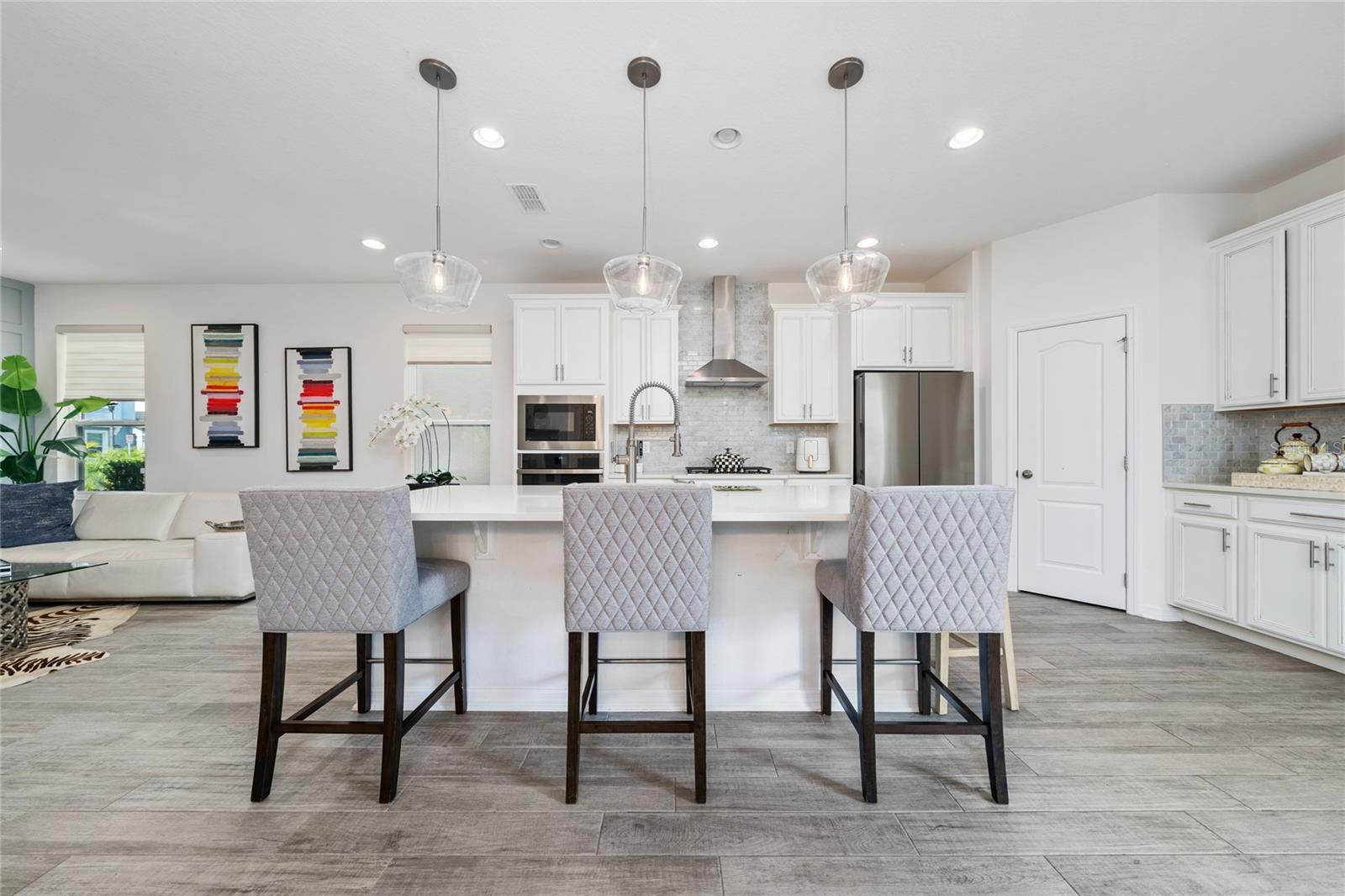 Bem-vindo a esta deslumbrante casa unifamiliar de dois anos de idade, idealmente localizada a uma curta distância de carro da Disney World! Esta propriedade lindamente projetada oferece 4 quartos espaçosos e 3,5 banheiros, proporcionando a combinação perfeita de luxo moderno e conforto para sua família. Ao entrar, você ficará imediatamente impressionado com os acabamentos de alta qualidade e eletrodomésticos luxuosos, incluindo uma cozinha de chef equipada com eletrodomésticos de aço inoxidável de última geração, bancadas de quartzo e armários personalizados. A área de estar de conceito aberto é perfeita para entretenimento, com grandes janelas que enchem a casa de luz natural e oferecem lindas vistas da vizinhança. A suíte master é um verdadeiro retiro, com banheiro privativo tipo spa completo com banheira de imersão, box amplo, pia dupla e closet generoso. Cada um dos quartos adicionais é espaçoso e oferece amplo closet, garantindo conforto e privacidade para todos. Cada canto desta casa reflete atenção aos detalhes. A localização é fundamental! Situado a poucos minutos da Disney World, você desfrutará da proximidade com entretenimento, compras e restaurantes de classe mundial, além de ter fácil acesso às melhores escolas, perfeitas para famílias. Esta casa oferece uma combinação incrível de comodidades modernas, luxo e localização, tornando-a o lugar perfeito para sua próxima mudança. Não perca a oportunidade de tornar esta joia sua! as luzes pendentes da cozinha e da sala de jantar e o lustre do segundo quarto não estão incluídos.