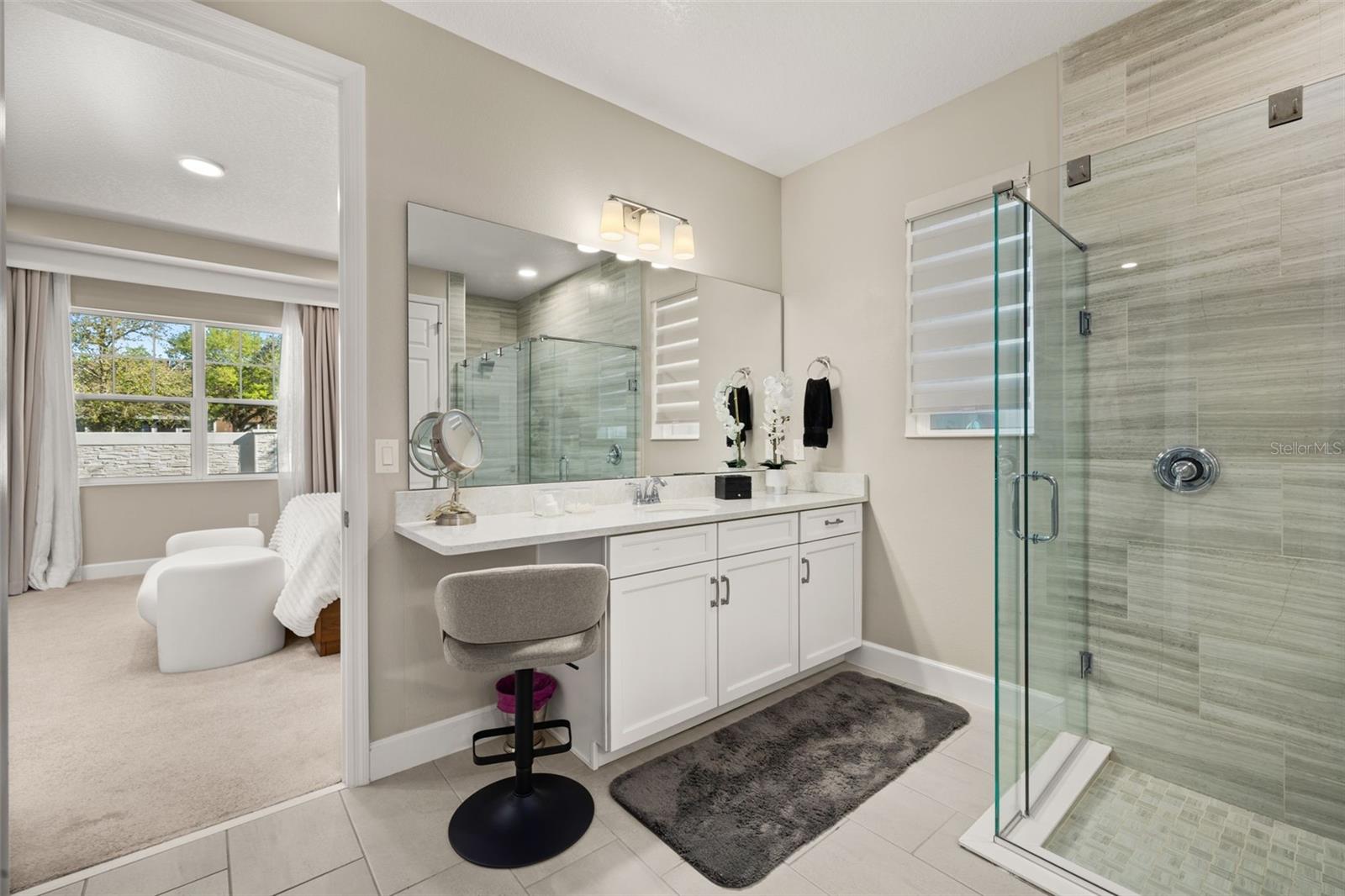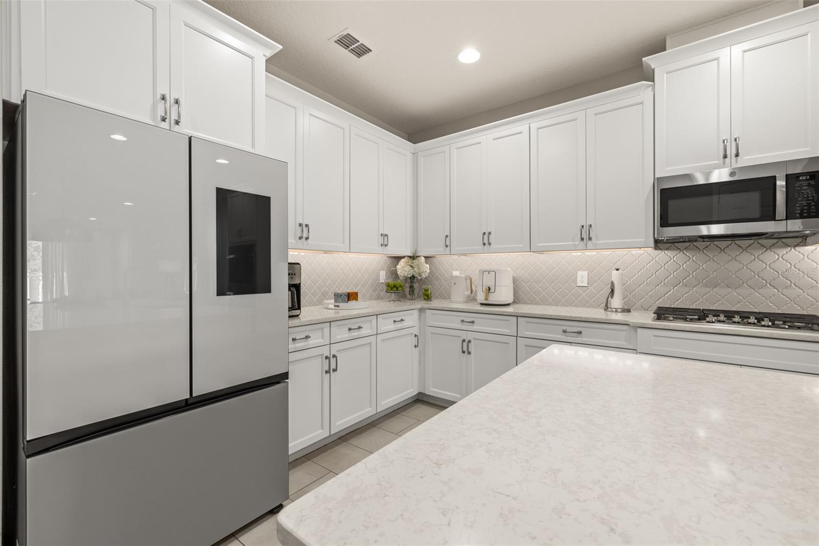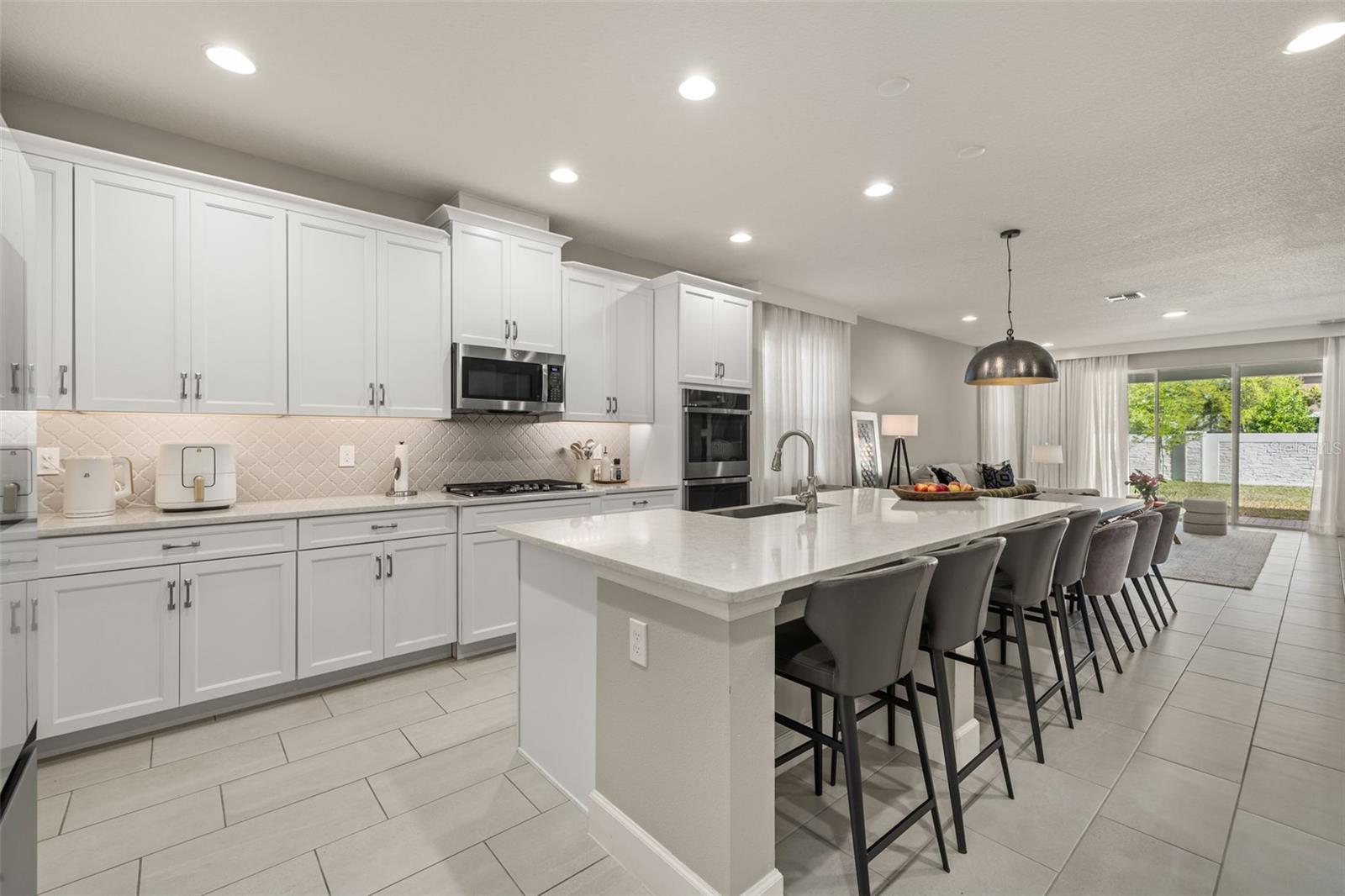 Bem -vindo à sua casa de sonho! Esta impressionante residência de 4 quartos e 3,5 banheiros combina a elegância moderna com a vida luxuosa em um condomínio fechado procurado. Projetado com acabamentos de ponta e comodidades de primeira linha, esta casa é realmente uma jóia. Primeiro andar: Apresentando pisos elegantes de azulejos em todas as áreas comuns, uma cozinha gourmet com bancadas de mármore branco, armários brancos combinando, um elegante backsplash de azulejos brancos, utensílios de aço inoxidável e um refrigerador de vinho. O design moderno da cozinha integra perfeitamente uma grande ilha e área de jantar, fornecendo assentos confortáveis para 10 pessoas, perfeitas para entretenimento. Uma sala de despensa exclusiva e espaçosa oferece armazenamento excepcional. A grande lavanderia inclui uma pia profunda para maior conveniência. A suíte master do primeiro andar possui um banheiro semelhante ao spa e dois espaçosos armários. A área de estar brilhante e arejada se abre para um vasto e lindamente paisagismo quintal. Segundo andar: O tapete de pelúcia aumenta o conforto, com dois quartos compartilhando um banheiro equipado com pias duplas e uma banheira. Uma segunda suíte master inclui um banheiro privativo com armários brancos, um chuveiro fechado de vidro e acabamentos elegantes. A expansiva área do loft é perfeita para uma sala de TV, escritório em casa ou espaço de entretenimento. Localização privilegiada! Convenientemente perto das escolas, parques e instalações de recreação de primeira linha. A poucos minutos dos shopping centers, restaurantes e grandes rodovias para facilitar o deslocamento. Agende uma exibição hoje e faça deste sonho a casa sua!