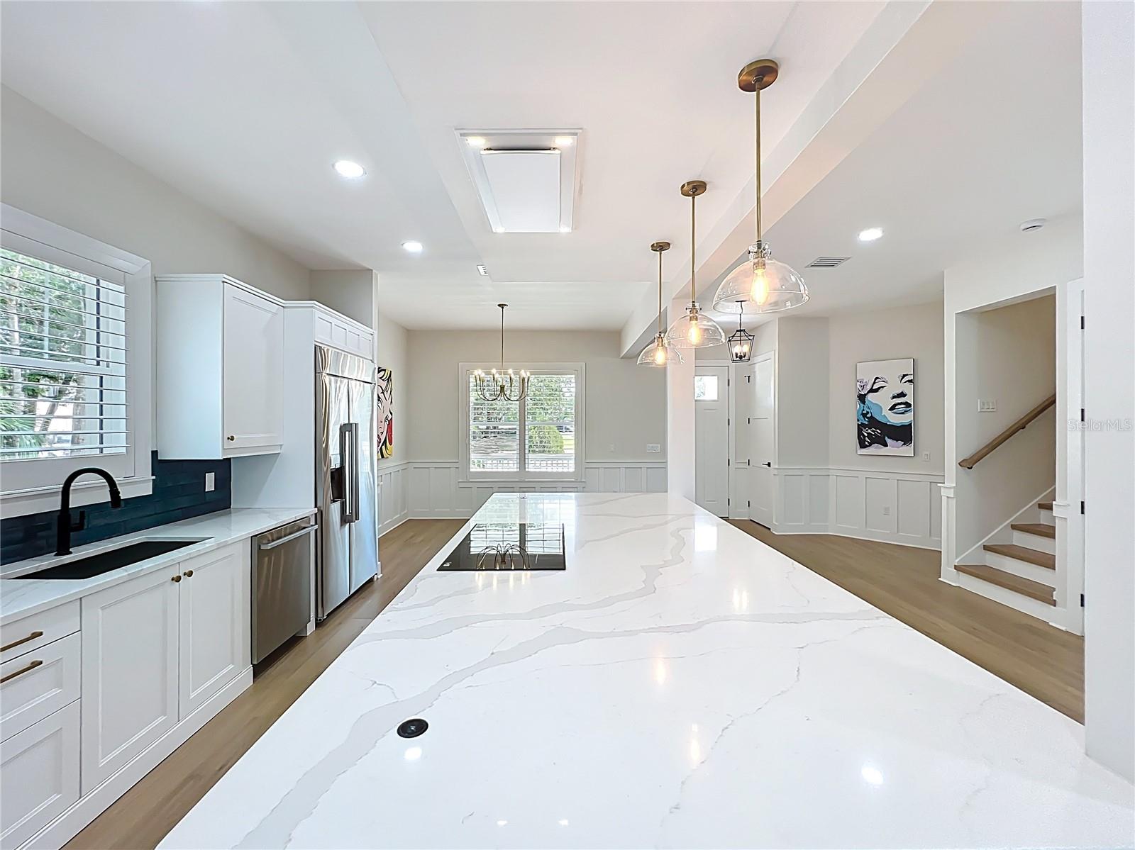 LOCALIZAÇÃO, LOCALIZAÇÃO, LOCALIZAÇÃO!!! NOVA casa no coração do HISTÓRICO Wnter Garden, muito procurado, com todo o seu charme de cidade pequena, restaurantes, lojas e a popular West Orange Trail, a poucos passos da sua PORTA DA FRENTE!! Casa original de 576 pés quadrados dos anos 1950, completamente renovada e ampliada para criar esta casa exclusiva de 2.800 pés quadrados, 5 camas, 4 banheiros, estilo artesão, com um depósito ou oficina adicional de 10 pés x 8 pés! Relaxe na varanda da frente e desfrute da atmosfera desta idílica cidade velha. Ao entrar no hall de entrada, a casa espaçosa e iluminada se abre diante de você. A área de estar principal consiste em uma cozinha deslumbrante com eletrodomésticos LG de última geração em aço inoxidável com refrigerador de vinho, forno e micro-ondas embutidos, geladeira de 42" e fogão de indução. Ilha grande com amplo armazenamento e assentos. Calcinha enorme com geladeira estilo retrô adicional. Sala familiar com lareira embutida com armazenamento extra e 2 conjuntos de portas francesas que levam a uma grande varanda coberta com vista para um lindo jardim totalmente cercado e paisagístico - perfeito para relaxar com sua bebida favorita! A suíte principal, com closets personalizados e lindo banheiro privativo, também tem portas francesas abrindo para um pátio separado! Da cozinha, os degraus levam a mais dois quartos, banheiro completo e despensa - esta área pode facilmente ser usada como suíte de sogros ou escritório com sala de teatro - as opções são infinitas! Portas de 8 pés, tetos de 10 pés (8 pés na parte original da casa), luxuoso piso de pranchas de vinil à prova d'água com azulejos nos banheiros, trilhos para cadeiras e painéis, saídas de ar AC modernas, iluminação atualizada, AC de 2 zonas, calhas com protetores de folhas, garagem de grandes dimensões com amplo estacionamento, linda cerca de estacas com paisagismo atualizado para excelente apelo do meio-fio. Venha ver porque o Winter Garden é o mercado mais badalado do sudoeste de Orlando. Distrito de carrinhos de golfe com lojas charmosas, restaurantes e parques familiares. Abrace a beleza e a conveniência que o rodeia. Faça um passeio matinal até o mercado local semanal de agricultores ou exercite-se na famosa West Orange Trail. Faça um passeio de carrinho de golfe e aprecie a vista do Lago Apopka com o cais de pesca à beira do lago ou coma algo ou relaxe com os amigos na Cervejaria Crooked Can. Dia da família no splash pad e depois fazer uma pausa para tomar um sorvete! A lista é INFINITA! Não perca a oportunidade de fazer desta a sua casa e viver o Winter Garden Lifestyle neste local tão apetecível e encantador!!
