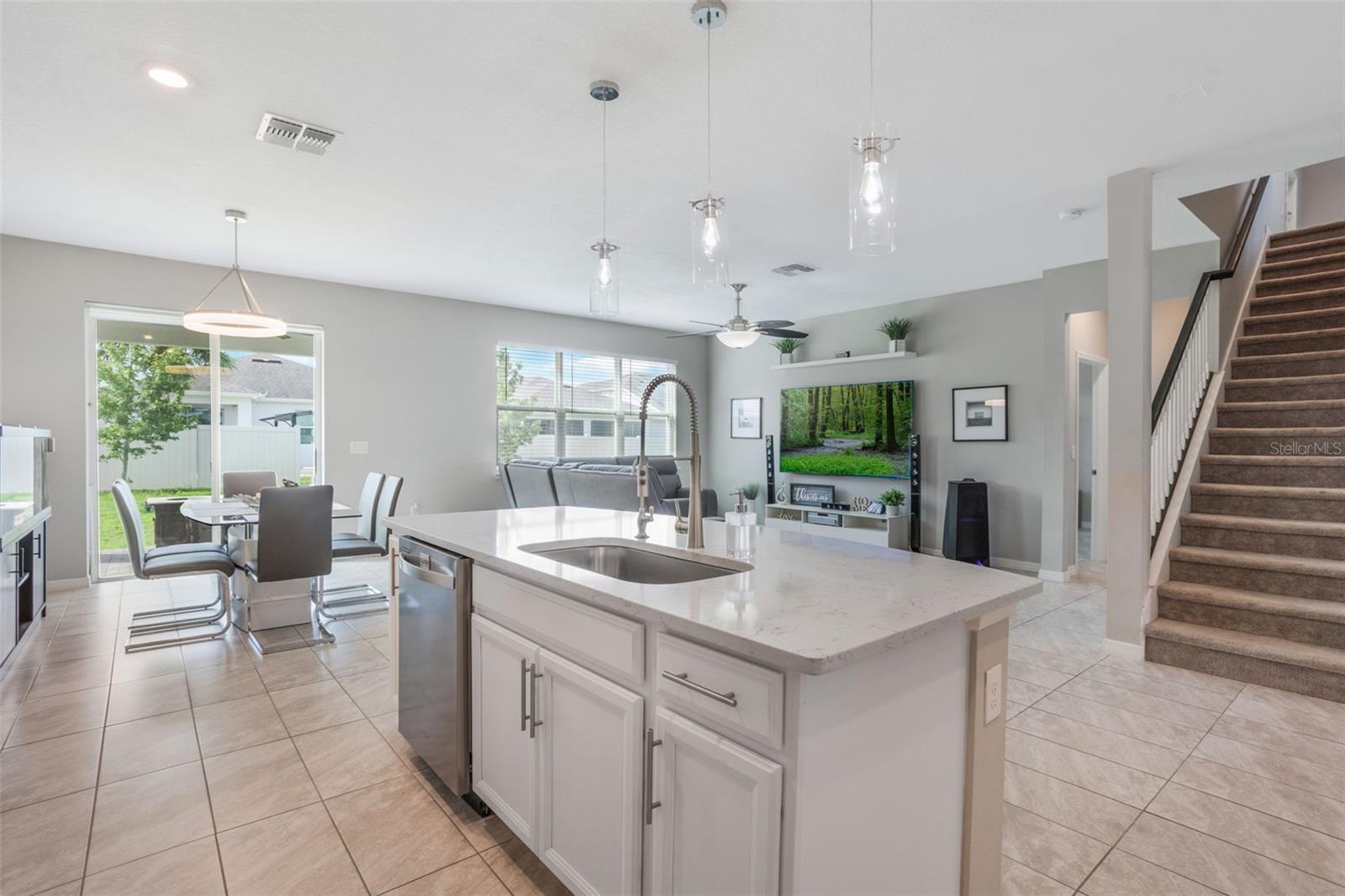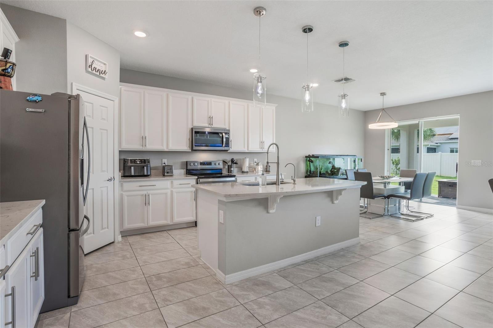 GARANTIA DE CASA INCLUÍDA + AVALIAÇÃO COBERTA SE O COMPRADOR USAR O CREDOR PREFERIDO DO VENDEDOR! Bem-vindo à casa dos seus sonhos no muito procurado Lakeview Preserve, um condomínio fechado situado perto das margens do Lago Johns, em Winter Garden. Esta residência lindamente decorada oferece uma vida espaçosa e flexível com 5 quartos e 3 banheiros completos, incluindo uma conveniente suíte de hóspedes ou escritório no primeiro andar. Entre para descobrir o piso de cerâmica moderno em todo o nível principal, um design de conceito aberto brilhante e uma cozinha inspirada no chef com armários shaker brancos de 42", bancadas de quartzo, uma grande ilha central com assentos, iluminação pendente elegante e uma despensa. As áreas de estar e de jantar fluem perfeitamente, tornando-o o espaço perfeito para receber e relaxar. No andar de cima, você encontrará uma grande sala de bônus/jogos ideal para entretenimento ou diversão em família. A suíte do proprietário no primeiro andar oferece um retiro tranquilo com muita luz natural. A casa também inclui um pacote completo de eletrodomésticos, persianas personalizadas e um sistema de filtragem de água para toda a casa. Aproveite as possibilidades ao ar livre com um amplo espaço no quintal pronto para seu toque pessoal - seja uma piscina, jardim ou área de recreação. Lakeview Preserve oferece comodidades em estilo resort, incluindo clube, academia, piscina com entrada zero, splash pad, playground, áreas de piquenique e lançamento de caiaque com acesso direto ao Lago Johns. Aproveite a facilidade das rampas para barcos públicos nas proximidades, das principais estradas como a SR-429 e da proximidade de Publix, Winter Garden Village, Downtown Winter Garden e Clermont. Viva o estilo de vida que você sempre sonhou - agende sua exibição hoje e venha experimentar o charme de viver no Winter Garden!