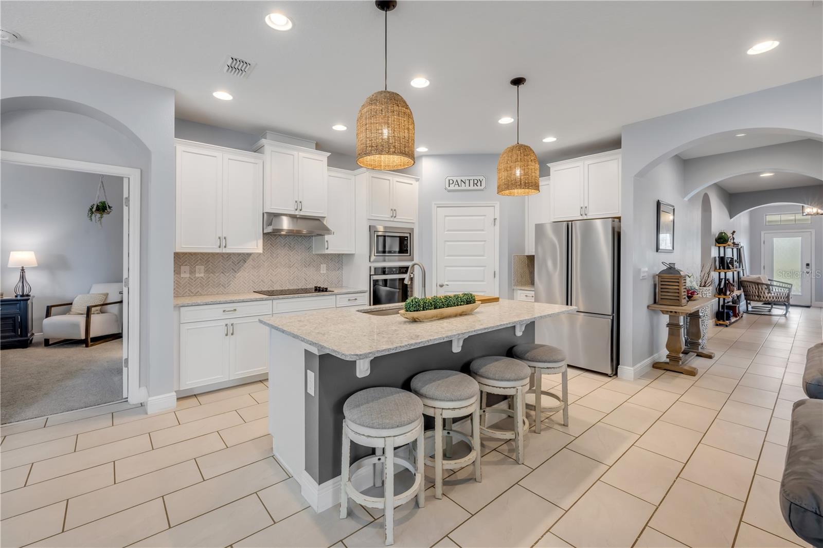O Bellmore em Waterleigh! Esta elegante residência térrea com quatro quartos e dois banheiros oferece um total de 2.984 pés quadrados de vida refinada em um terreno de esquina de primeira linha com privacidade arborizada e acesso ao lago. Combinando design atemporal com atualizações modernas, esta casa apresenta acabamentos luxuosos por dentro e por fora. A cozinha gourmet é uma peça central, com eletrodomésticos de aço inoxidável, uma despensa e uma ilha grande com abundante espaço para preparação e assentos. Abre-se perfeitamente para a espaçosa sala familiar, criando um ambiente para reuniões. Os toques de designer incluem tetos embutidos de madeira no hall de entrada e na suíte principal, uma dramática parede de tijolos na sala de estar, iluminação aprimorada e um lustre impressionante no hall de entrada. A suíte principal oferece um sistema de organização de armários personalizado, enquanto os ventiladores de teto são cuidadosamente colocados em quase todos os quartos. A vida ao ar livre rivaliza com um resort privado com piscina de água salgada aquecida e protegida e cascatas, cercada por uma paisagem tropical exuberante. A varanda coberta possui uma tela de projeção suspensa de 3 metros para noites de cinema ao ar livre, enquanto os pavimentos de tijolos melhoram a entrada de automóveis, as passarelas e o pátio. Um sistema solar de 13,67 quilowatts com medição líquida garante eficiência energética. Do quintal, desfrute das vistas noturnas dos espetaculares fogos de artifício da Disney – um cenário inesquecível e exclusivo da vida na Flórida Central. As adições de luxo opcionais para compra adicional incluem um carrinho de golfe elétrico de quatro lugares com carregador, racks de armazenamento de garagem de nível profissional e uma academia doméstica completa com pesos livres. Waterleigh é o principal condomínio planejado de Winter Garden, oferecendo dois amplos clubhouses com piscinas em estilo resort, academias de ginástica de última geração, quadras de tênis, minigolfe, trilhas para caminhada, parques para cães, jardins comunitários e lagos pitorescos com cais de pesca. Idealmente perto da Disney, das principais rodovias, lojas e restaurantes, Waterleigh combina conveniência com comodidades incomparáveis. Classificada como uma das principais comunidades dos Estados Unidos, Winter Garden é celebrada por seu centro vibrante, comodidades de estilo de vida e qualidade de vida excepcional - tornando esta casa uma rara oportunidade de adquirir em uma das áreas desejáveis do país. Este é imperdível. Somente com hora marcada.