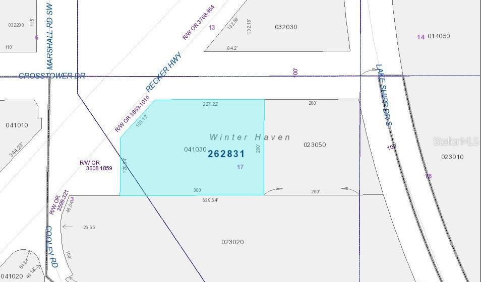 Melhoria de preços. 1,31 acre comercial C-3, lote vago em Winter Haven. Lote é aprox. 108 pés x 227 pés x 200 pés x 300 pés x 120 pés. Preço de venda. Precisará preencher, pois a propriedade é de aproximadamente 5 pés a 6 pés abaixo do grau no lado Recker Hwy e na Grade na Side Street e possui aproximadamente 0,20 acres de áreas baixas/úmidas. Água da cidade, esgoto e energia estão todos próximos. As vendas recentes de terras vagas comerciais nas proximidades têm uma média de mais de US $ 560 mil por acre. Temos o preço de US $ 167.175 por acre. Ótima localização para muitos negócios em potencial ou comprar e manter para investimento. Fronteira de 10 pés na Recker Hwy com fachada de 227 pés na rua lateral. A propriedade também fica perto do lago Shipp Dr. South dentro de aprox. 240 pés. A contagem de tráfego com Recker para 2022 era de 7.800 diariamente, o Lake Shipp DR 12.700 diariamente também para 2022. A propriedade é de 330 pés do City Park Sertoma, que é um complexo esportivo ao ar livre ao lado do Lake Shipp Park, a menos de 1300 pés de distância. Lake Shipp faz parte da cadeia de lagos em Winter Haven e tem 276 acres de água de água doce com uma rampa de barcos públicos. Além do tráfego e dos eventos recreativos, a área também possui muitas casas unifamiliares dentro de .11mi e casas multifamiliares dentro de .8mi. A propriedade também está perto do cruzamento com a HWY 540, com até 25.500 contagens diárias de tráfego de 2022. A estação Amtrak Winter Haven é de aprox. 1,6 mi de distância. O hotel mais próximo é de aprox. A 2,3mi de distância, o Hospital Especial de Especialidade mais próximo está a aproximadamente 2,3mi de distância, o Hospital Clínica mais próximo está a aproximadamente 2,8 mi de distância, o escritório mais próximo do Dr. está a aproximadamente 2,5 mm de distância. Nenhum armazenamento ou parada de caminhão ou vendas/reparo de equipamentos pesados, além de outros. Permitted Uses Include But Not Limited To Hotel/Motel, Special Needs Facility, Child Care Facility, Adult Day Care Center, Assisted Living Facility, Foster Care Facility, Group Home Facility, Hospice Residential Unit, Multi-Unit Residential Building, Business Office, Funeral Home/Mortuary, Medical/Health-Care/Dental Office, Personal Services, Professional Office, Antique Shops, Bake Shop, Convenience Store, Convenience Store With Gas, Gas Station, Laundromat—Self Service, Medical Marijuana Dispensing Facility, Minor Repair Shop, Pet Services With No Outdoor Activities, Recreation Indoor Commercial, Restaurant—Conventional Sit-down, Delicatessens, Restaurant—Short-Order (min. seating for 20), Restaurant—Drive-in, Drive-Thru Or Walk-Up and Short-Order (with seating for less than 20), Retail Sales, Retail Shops, Shopping Center (less than 20,000 s.f), Boat and Water Craft Sales, Service & Light Repair, Mobile Food Vending, Nursery With Outdoor Displays/Storage, Pet Services: Indoor/Outdoor, Recreation Outdoor Commercial, Recreational Vehicle Sales & Accessory Servicing, Rental Of Motor Scooters, Motorcycles, Automobiles Or Any Other Self-Propelled Conveyance, Retail Sales & Service Outdoor Activities, Vehicle Dealership Except RVs, Vehicle Sales Used, Radio & Television Studios & Offices, Package Stores, Research & Development Facilities, Church/Religious Meeting Place, Hospital, Public school (K - 12), Recreação Indoada ou Outdoor Public, Escola Vocacional/Técnica, Universidade/Colégio Pequeno ou Grande Escala. Informações consideradas confiáveis, mas para serem verificadas pelo comprador.