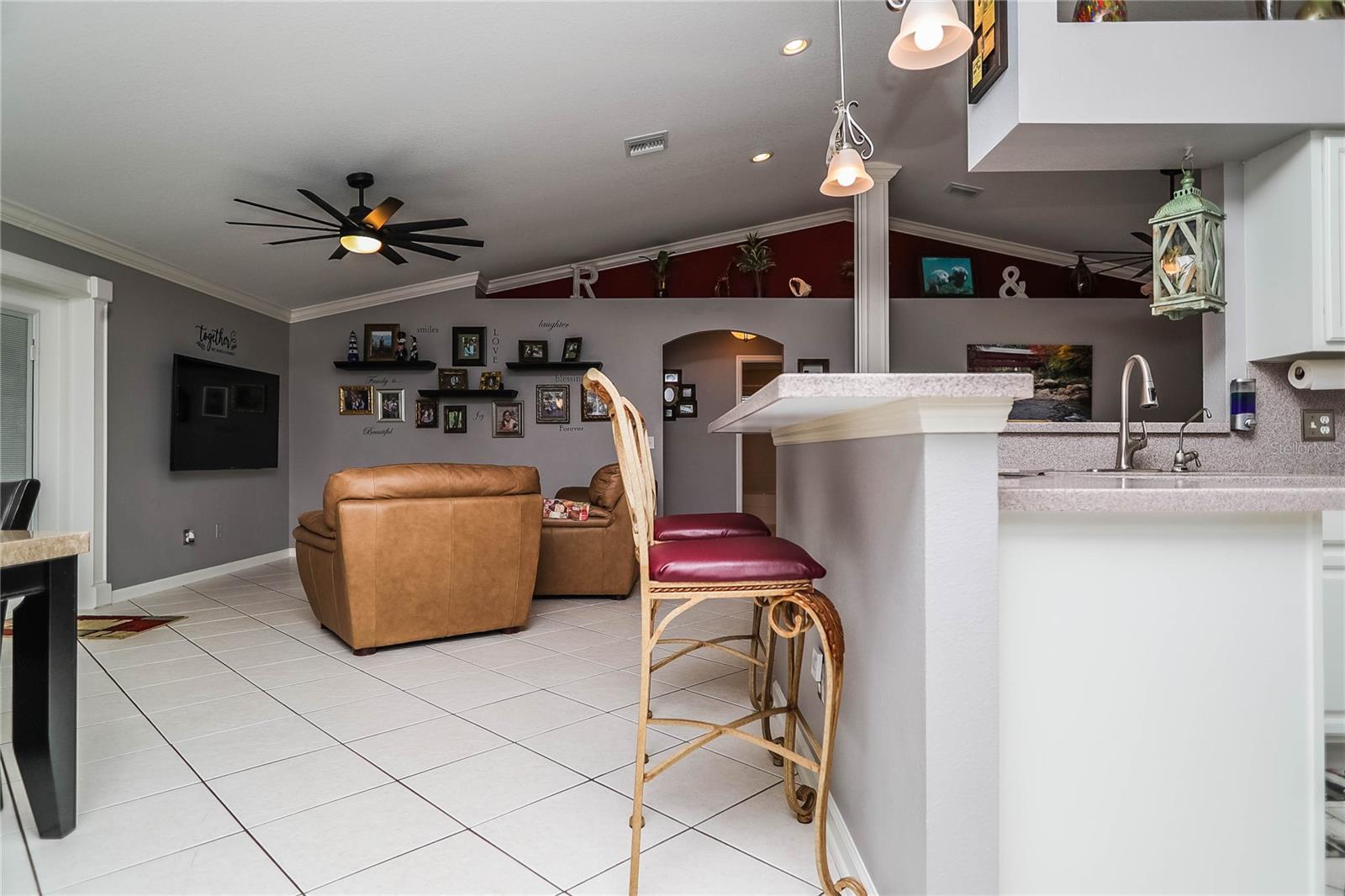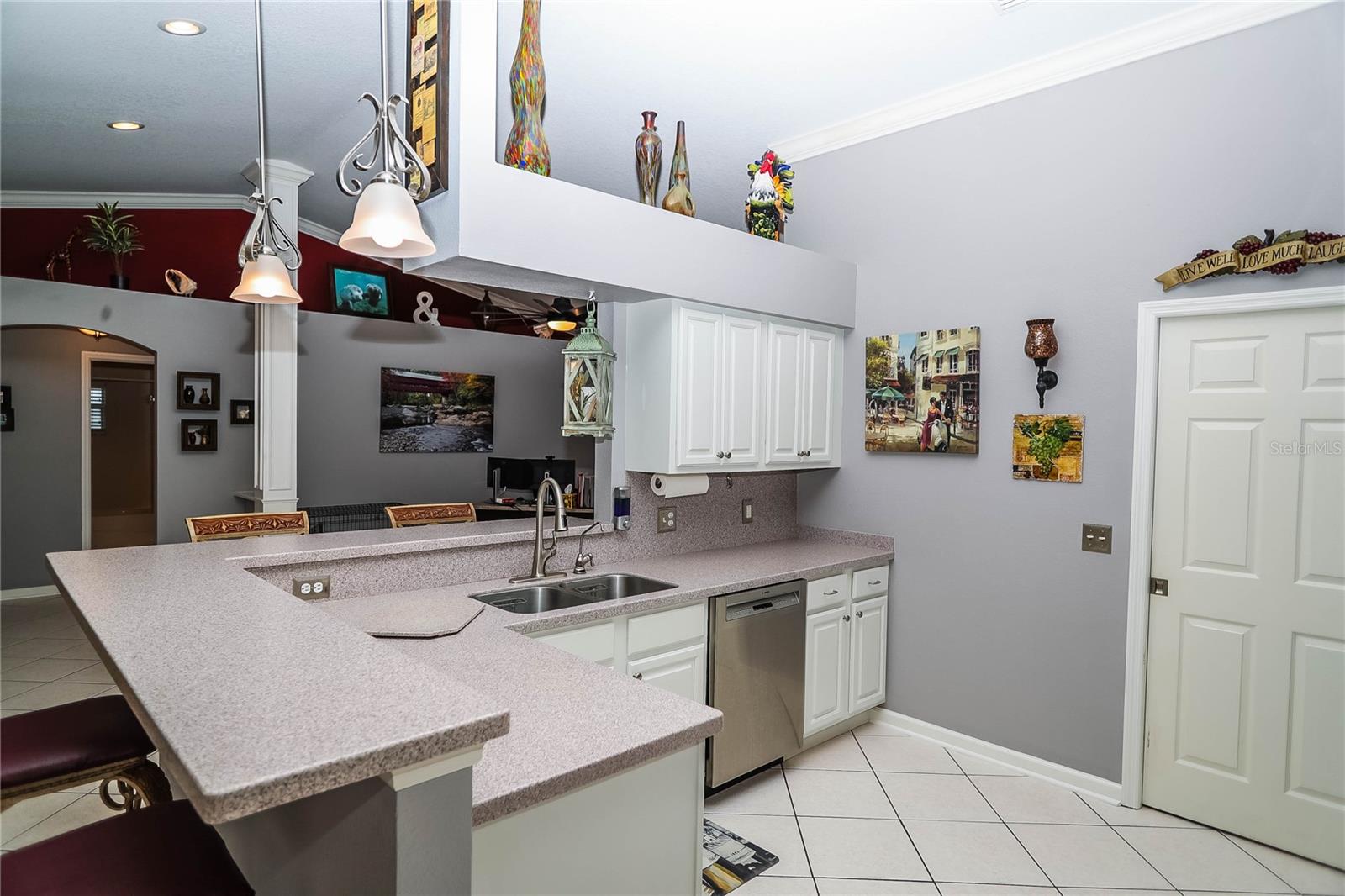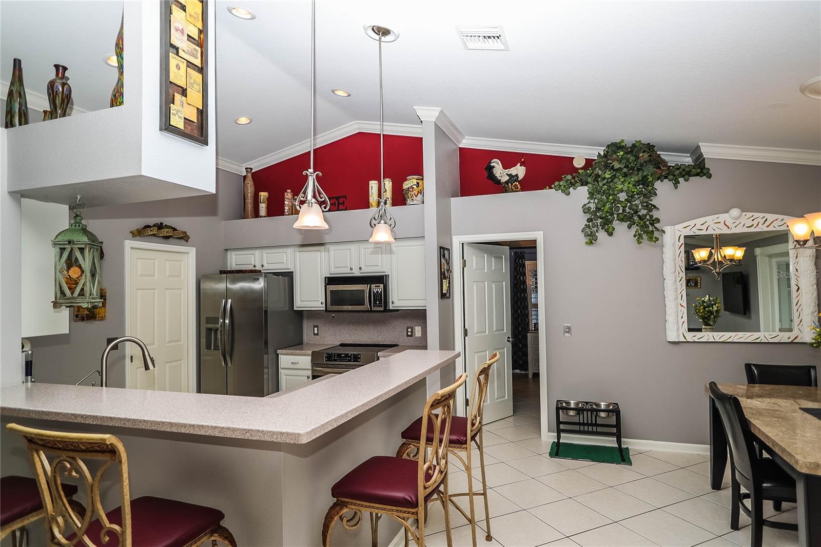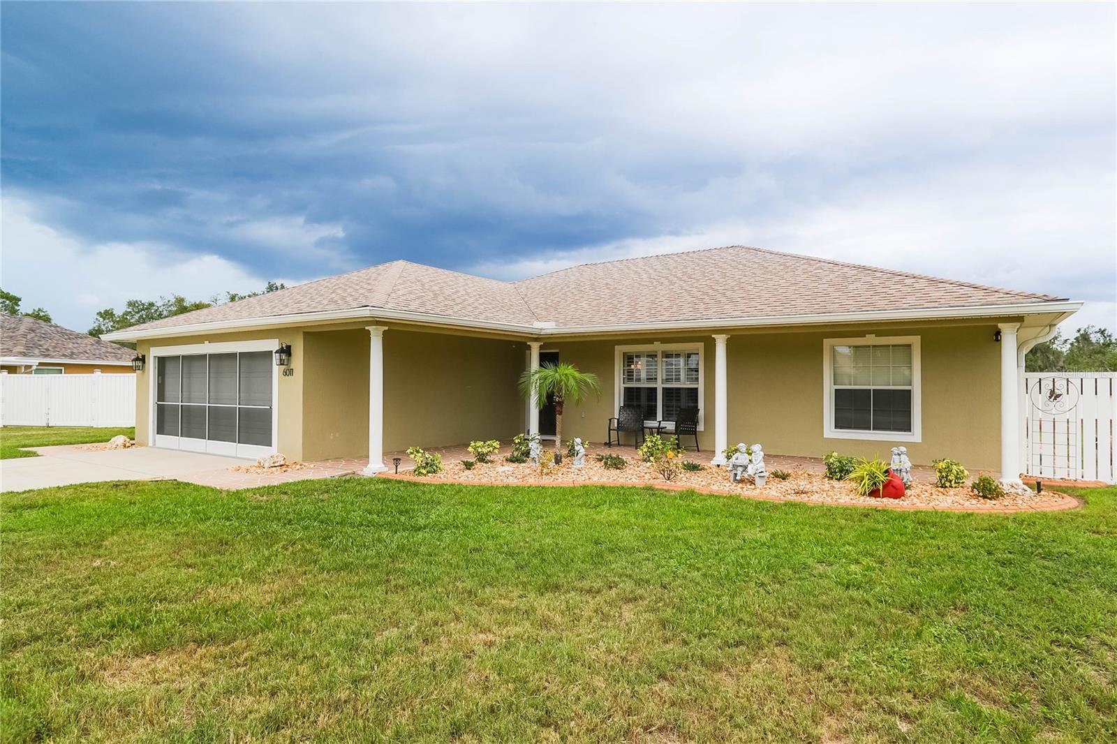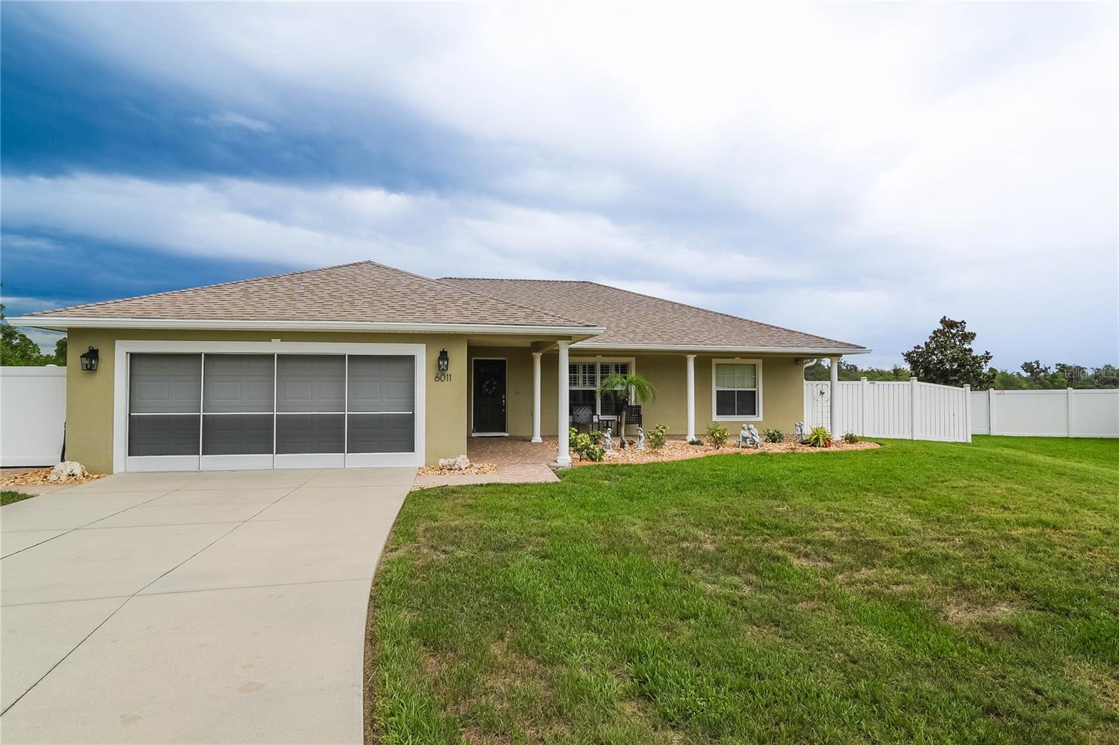 Mais de 1/2 hectare de lote totalmente cercado com a melhor casa de cachorro de todos os tempos !! Proprietário original e orgulho de propriedade! Moldagem da coroa em todos os quartos! Persianas de plantações também! Bem construído e bem conservado em Country Walk, esta casa de 3 quartos e 2 banheiros está pronta para novos proprietários! Limpo, arrumado e mostra ótimo! À medida que você se aproxima, você notará a passarela de concreto carimbada/revestida e a varanda da frente com colunas e espaço para várias cadeiras de balanço! O quintal da frente é bem paisagístico e fácil de manter. A restrição decorativa adiciona um belo toque acabado ao paisagismo. Lá dentro, você não encontrará carpete e azulejo em cerâmica em toda a casa! Ao entrar, a casa se abre para uma grande sala grande no centro. Tetos abobadados, prateleiras de plantador e moldagem por coroa. As portas francesas com persianas embutidas ganham acesso ao enorme piso coberto e epóxi, exibido 15x30 (450SF) Lanai com toldos de sombra para uso do dia todo! O quintal é enorme, totalmente cercado (os postes de cerca foram reforçados) e tem um grande pátio e a incrível casa de cachorro! Todos os contadores são superficiais sólidos em toda a casa! A cozinha está aberta com eletrodomésticos atualizados e balcão de altura do bar com espaço para vários barstools. A suíte primária também tem acesso ao Lanai com portas francesas e um grande closet. O banheiro principal foi atualizado com vaidades duplas, portas de chuveiro de vidro novas, o chuveiro também é superdimensionado! Há também um armário de armazenamento e um armário de linho no banheiro principal! A garagem possui piso epóxi, portas deslizantes exibidas para facilitar o acesso, além de manter a garagem fresca no verão. A conexão da casa do gerador está instalada, bem como um toldo para cobrir um gerador do lado de fora! Telhado e HVAC 2017. Aquecedor de água 5 anos. Esta casa foi mantida muito bem e está pronta para você! Venha ver hoje!
