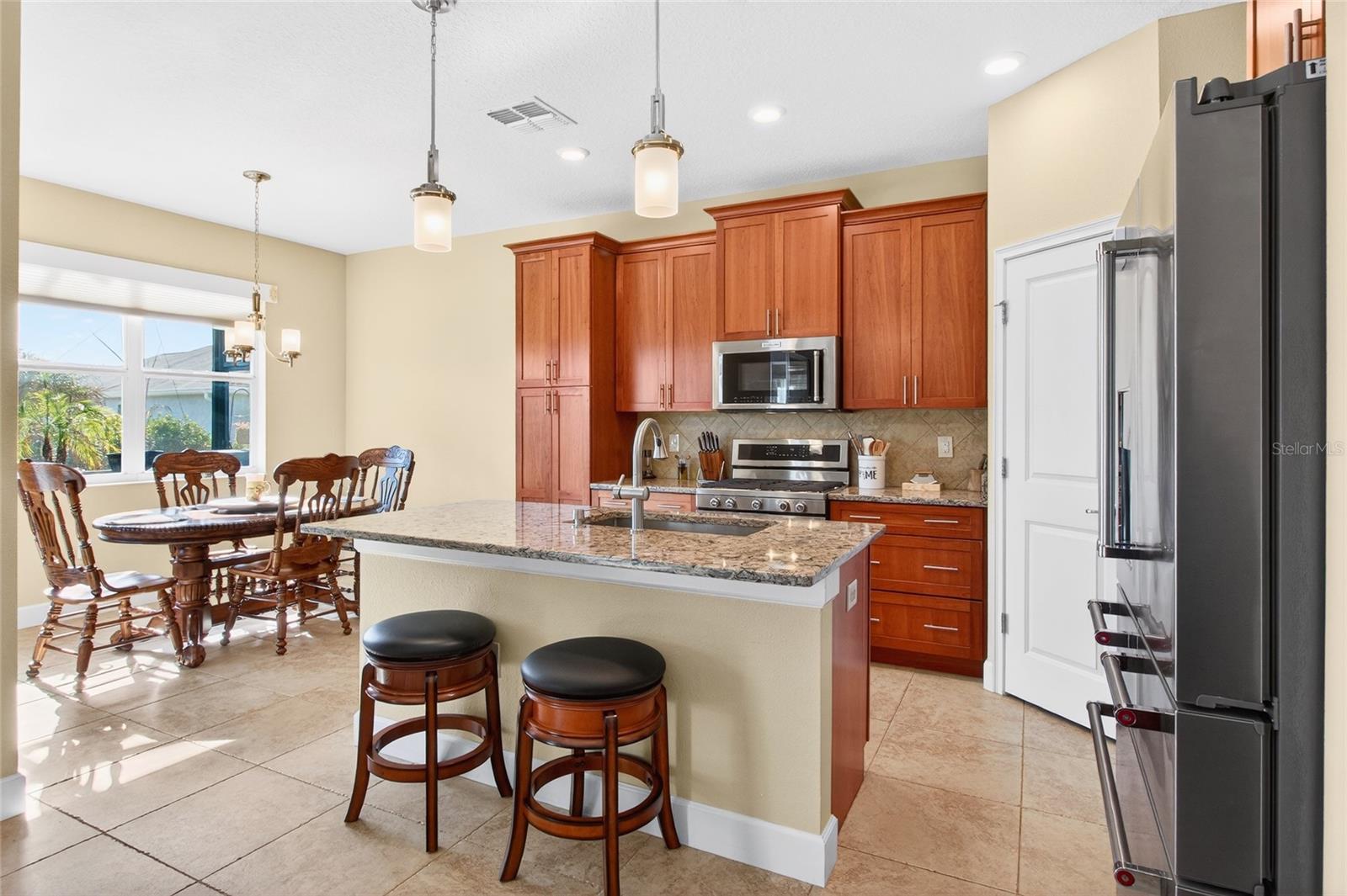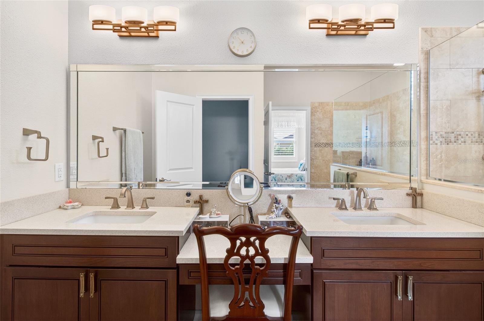 Ao entrar nesta bela casa, é recebido por um arrumos/escritório à direita com portas duplas, que pode facilmente ser utilizado como terceiro quarto, se desejar. Continuando pela casa, você encontrará uma espaçosa sala de jantar formal separada da área de estar principal. Ao sair da sala de jantar, a casa se abre para um espaço luminoso de conceito aberto com sala de estar, cozinha e uma aconchegante área de café/café da manhã, perfeita para a vida cotidiana e entretenimento. A cozinha gourmet possui armários Kraft Maid atualizados, bancadas de quartzo Cambria, eletrodomésticos KitchenAid mais recentes e fogão de convecção a gás, todos com vista para a espaçosa sala de estar com grandes janelas e portas de vidro deslizantes que trazem muita luz natural. A casa oferece três portas de vidro deslizantes que levam a uma grande varanda com tela, perfeita para relaxar e desfrutar do estilo de vida da Flórida. A varanda também possui uma área estendida com grama artificial. O espaçoso quarto principal inclui um sistema de closet californiano e um banheiro privativo com pias duplas, penteadeira de altura confortável, toalete separado e box amplo de azulejos. Em toda a casa você encontrará sancas, piso de cerâmica importado italiano, piso de madeira projetada, venezianas e cortinas de controle remoto Hunter Douglas. As características adicionais incluem uma lavanderia com lavadora e secadora, janelas de vidro duplo de baixa emissividade, um aquecedor de água híbrido AO Smith, sistema de filtragem de água sem sal Pelican, calhas e uma fachada externa de pedra com calçada de tijolos e passagem frontal estendida. A garagem para dois carros possui porta de garagem isolada, controle remoto de porta de garagem, racks de armazenamento superiores e uma área de bancada com pegboard e espaço de trabalho adicional. Localizado no desejável condomínio fechado Traditions 55+, os moradores desfrutam de comodidades em estilo resort, incluindo clubhouse, piscina aquecida e banheira de hidromassagem, salão de baile, sala de artesanato, salas de reuniões, biblioteca, sala de informática, academia, quadras de tênis e pickleball, parque para cães e muito mais. As taxas mensais do HOA incluem serviço de gramado, TV a cabo, internet e pintura externa da casa.
