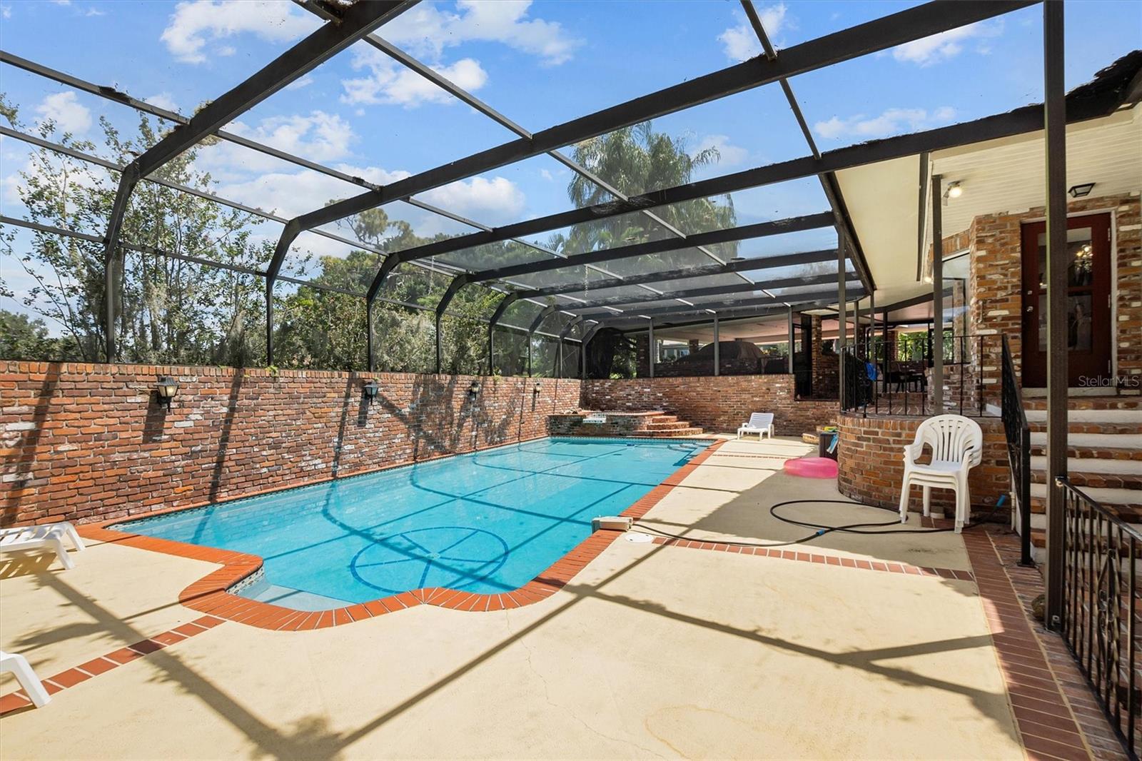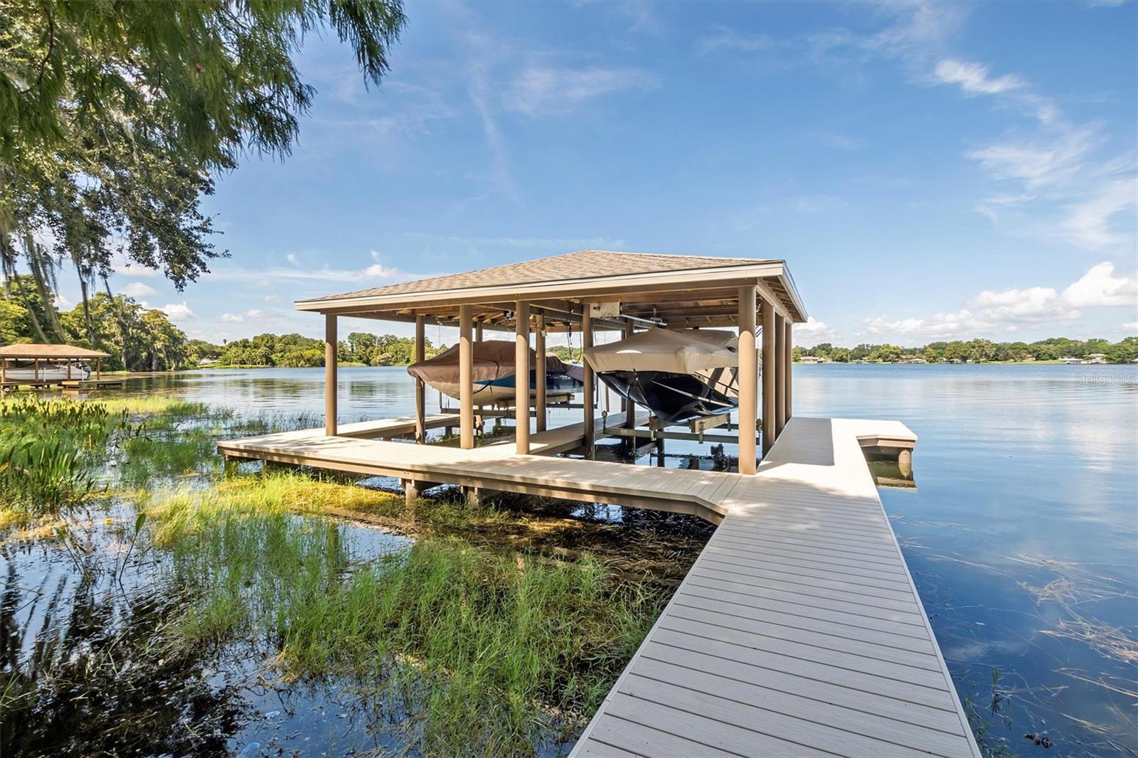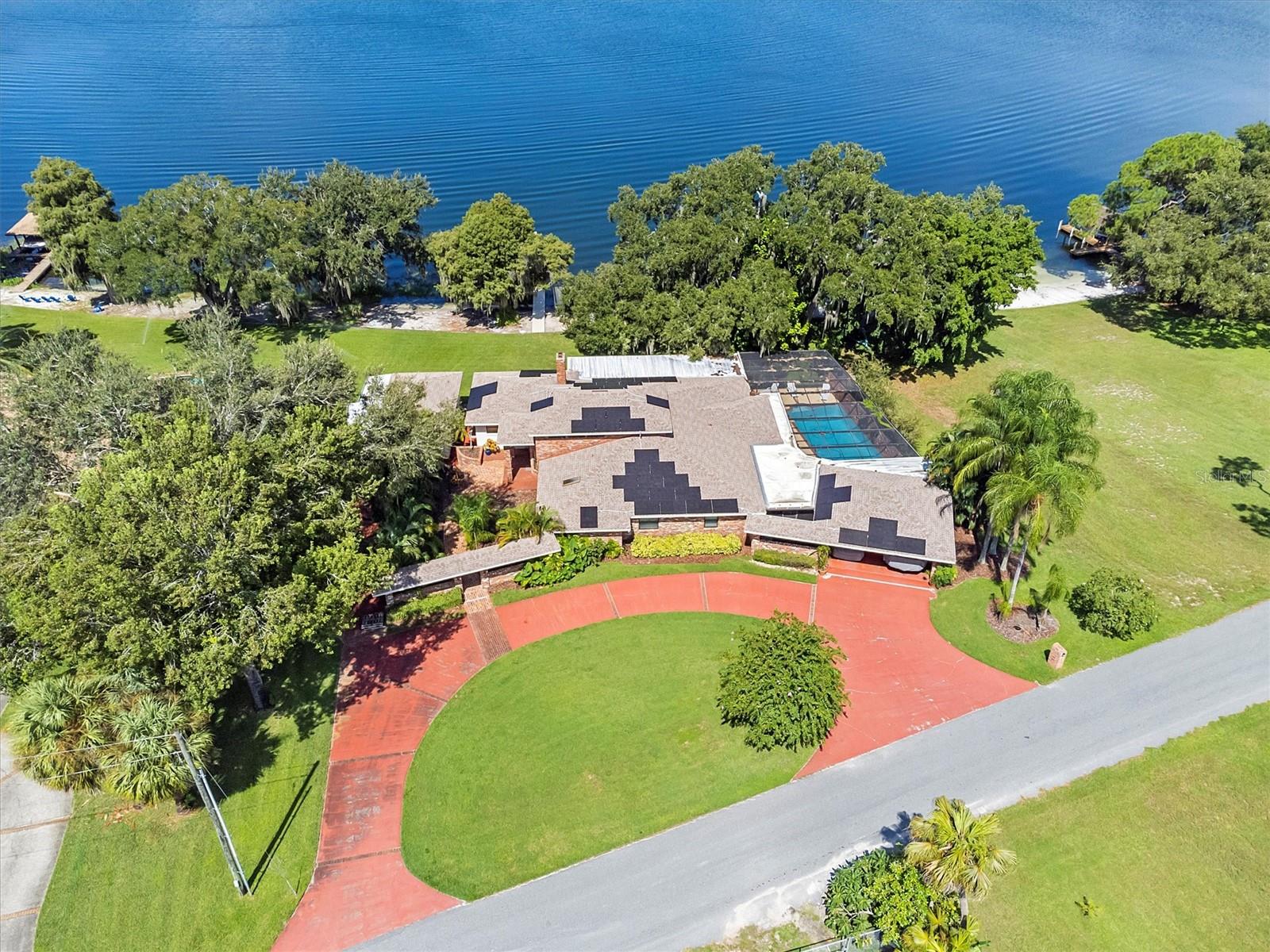 ***O vendedor concorda em pagar os painéis solares no fechamento.*** Entre em um mundo de luxo à beira do lago com esta majestosa residência de tijolos vermelhos, onde as atualizações modernas encontram a elegância atemporal. Entre pelas passarelas tropicais pavimentadas com tijolos e pelo pátio, realçado pelas charmosas luminárias da cocheira, levando você a uma espaçosa casa com 5 camas e 4 banheiros. Recentemente aprimorada com um novo sistema de AC instalado há apenas 6 meses, esta luxuosa propriedade também possui uma piscina cintilante e um cais de plástico recém-construído para acesso contínuo à água sem ter que se preocupar com qualquer deterioração da madeira. No interior, você encontrará uma sala de estar e jantar atualizada com pintura fresca e acabamentos modernos, bem como uma grande cozinha de chef que se abre para mais espaço de convivência, todos com vistas espetaculares para o lago. Existe uma casa de hóspedes anexa com entrada própria que pode ser utilizada para família ou amigos ou como fonte de rendimento adicional, se desejar. A casa é o epítome do conforto e comodidade, pronta para você se mudar, observar o pôr do sol sobre a água e desfrutar do estilo de vida da cadeia de lagos.