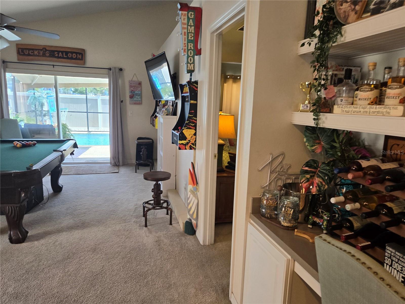 Uma deliciosa piscina para casa neste bairro tranquilo, estável e popular! Que jóia rara! A Family Room é uma sala de jogos - e os jogos e a mesa de sinuca serão incluídos em uma oferta de lista completa! 3/2 com cozinha aberta para FR e flui para a porta da nova piscina que tem bastante deck, mesas de guarda -chuva e tela retrátil em um espaço de pátio de concreto de 38x51 - os proprietários atuais até desfrutaram de noites de cinema ao ar livre. A planta baixa aberta quando você entra na porta da frente o leva para a sala de jantar formal e a sala de estar. A cozinha e o quarto da família são mais um passo na casa. Este é o lugar perfeito para reunir toda a família ou apenas ser o artista! Você tem uma garagem de 2 carros anexada com abridor de portas aéreas. Novo teto deste ano, AC 5 anos, e a piscina também foi colocada. Piscina tem aquecedor e luzes! A tela de sombra retrátil fornece tranquilidade no clima louco da Flórida. Esta casa possui paredes de concreto sólido, não um bloco de cimento. Muita paz de espírito aqui! A cozinha inclui muito espaço no armário e uma barra de café da manhã, e o piso plano aberto para a sala da família faz com que o local pareça tão espaçoso!