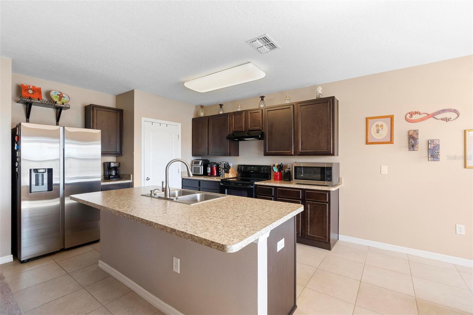 Aninhado em um lote à beira-mar, esta casa encantadora oferece uma vista serena de lago, onde você frequentemente avista tartarugas, pássaros nativos da Flórida e outros animais selvagens. Descontraia no final do dia enquanto desfruta do pôr do sol de tirar o fôlego do seu lanai exibido. No interior, após a entrada exibida, o interior pintado personalizado possui um layout aberto que combina perfeitamente a espaçosa sala de estar, sala de jantar e cozinha-ideal para entretenimento. A cozinha brilha com armários de café expresso elegantes, uma geladeira quase nova e uma máquina de lavar louça (ambos com apenas seis meses), uma despensa de canto e uma grande ilha com uma saliência perfeita para preparar refeições ou servir os hóspedes. Projetado para privacidade, a casa possui uma planta baixa com dois quartos de hóspedes de um lado, que compartilham um banheiro com uma vaidade de pia dupla, enquanto a suíte primária está posicionada na extremidade oposta. O expansivo quarto primário oferece uma vista deslumbrante da lagoa e um banheiro privativo, com um armário de água separado e um impressionante closet que abrange toda a extensão da sala. Os recursos adicionais desta casa excepcional incluem vários armários de linho para armazenamento, uma lavadora e secadora de quatro anos, um telhado com classificação de furacões de três anos, um abridor de porta de garagem de dois anos, um exterior recentemente pintado e painéis solares totalmente pagos no fechamento. A comunidade oferece um playground, uma piscina em estilo resort para relaxar e uma piscina de duas faixas com uma seção rasa para crianças pequenas. Convenientemente localizado com fácil acesso a inúmeros restaurantes, compras e atrações como Legoland, Disney World e Universal Studios. Venha experimentar toda essa casa tem a oferecer - uma oportunidade que você não vai querer perder!