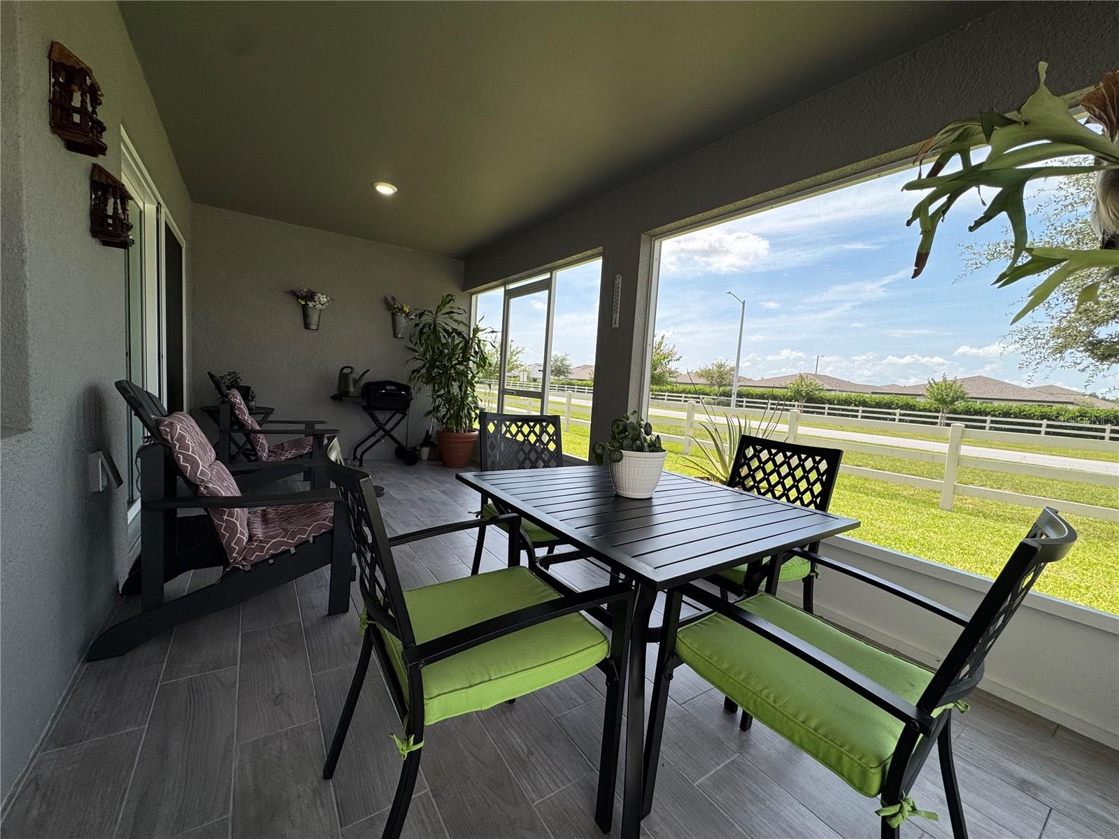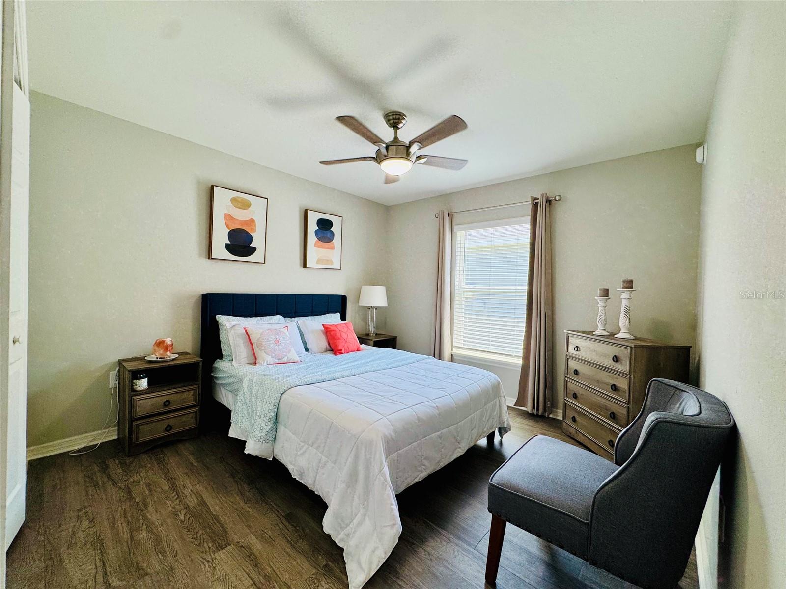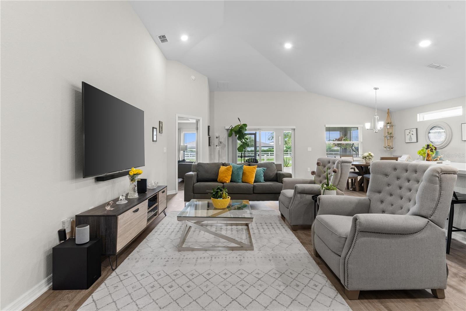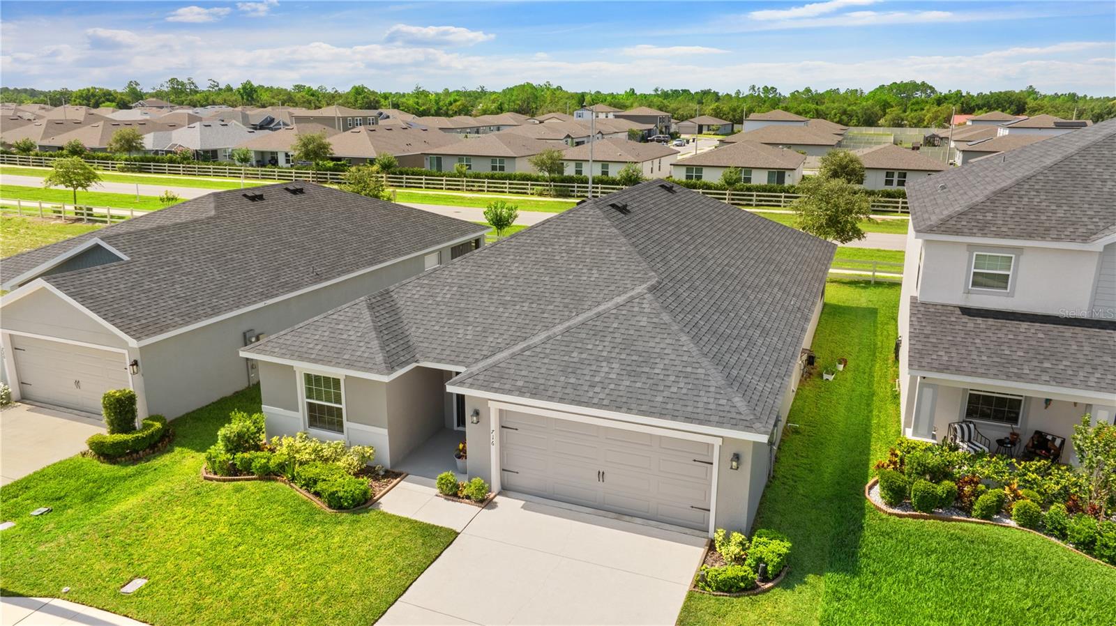 Motivo elegante e impressionante em Serendipity de 3 quartos e casa de 2 banheiros, oferecendo a mistura perfeita de luxo e funcionalidade para o seu conforto. Construído em 2021, esta residência meticulosamente mantida é repleta de atualizações premium. Entre para encontrar pisos de tábuas de vinil de luxo fluindo pelas principais áreas de estar e quartos, complementados por bancadas de quartzo na cozinha, banheiros e até a lavanderia. A cozinha aberta com uma grande ilha oferece toneladas de espaço de balcão, utensílios de aço inoxidável com eficiência energética, armários elegantes e um layout espaçoso perfeito para entretenimento. Enjoy the comfort of ceiling fans in all bedrooms, window blinds throughout, and a thoughtfully designed split floor plan offering privacy and space.The primary suite features a dual-sink vanity, walk-in closet, and a spa-like spacious ensuite.Additional features include, dedicated indoor laundry room with washer & dryer, screened-in lanai with tile flooring, 2-car garage with Storage shelves irrigation system for easy lawn maintenance, professional Câmeras de paisagem e segurança ao ar livre para tranquilidade. Não perca esta jóia.