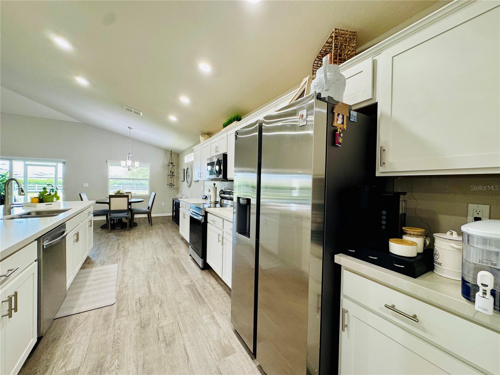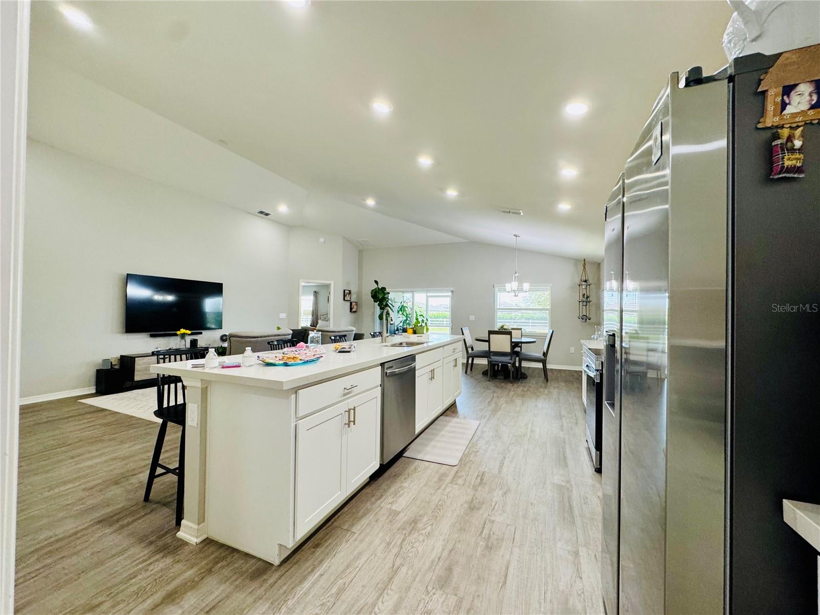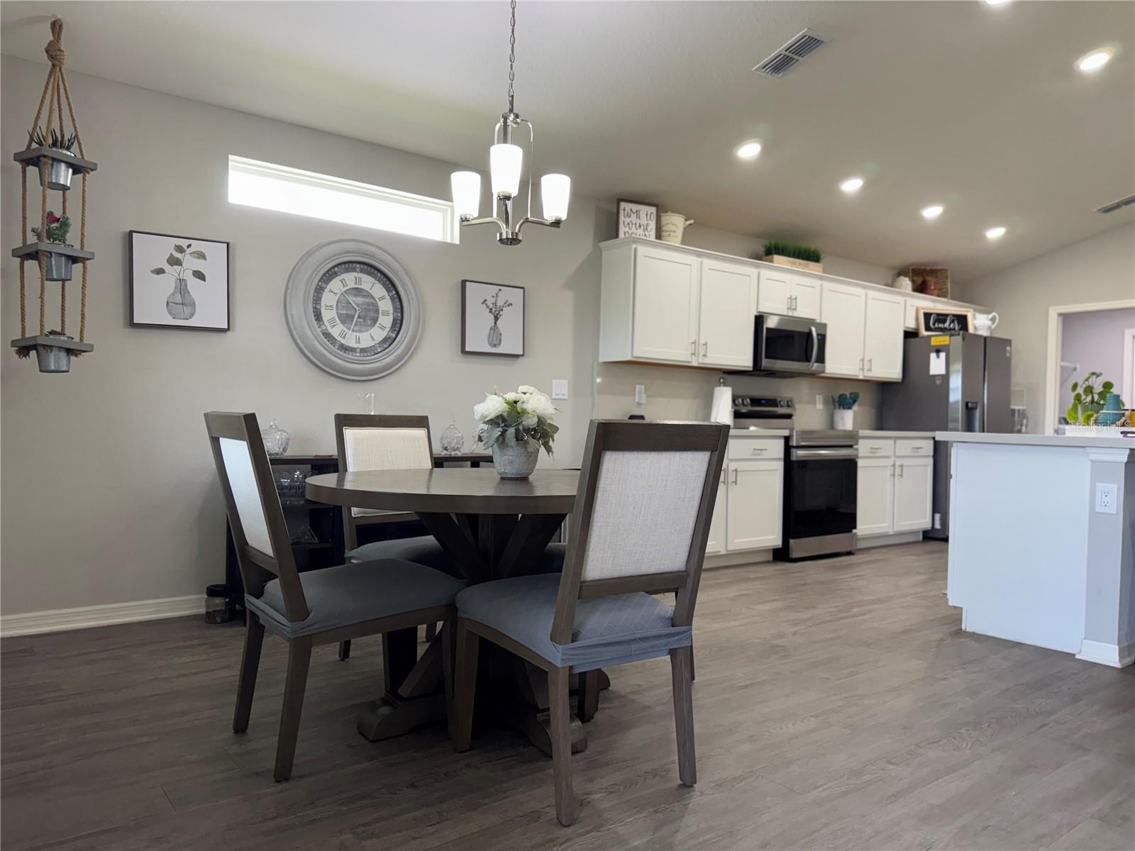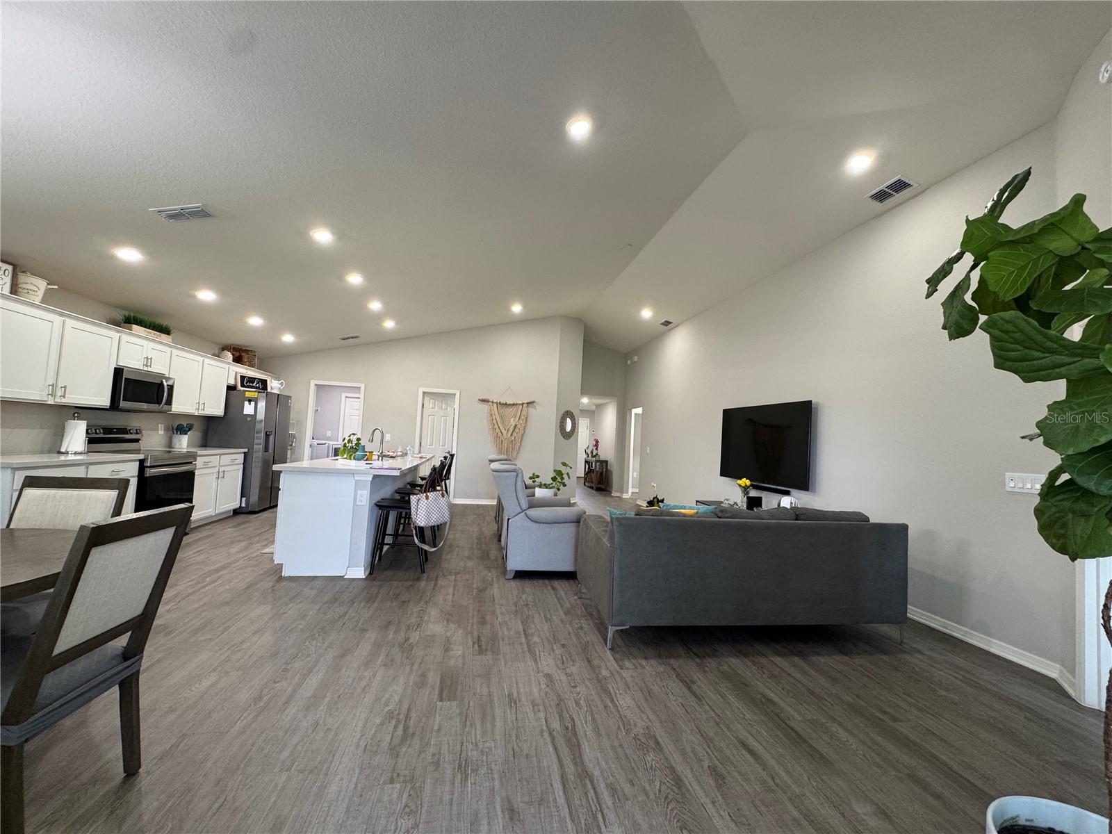 Motivo elegante e impressionante em Serendipity de 3 quartos e casa de 2 banheiros, oferecendo a mistura perfeita de luxo e funcionalidade para o seu conforto. Construído em 2021, esta residência meticulosamente mantida é repleta de atualizações premium. Entre para encontrar pisos de tábuas de vinil de luxo fluindo pelas principais áreas de estar e quartos, complementados por bancadas de quartzo na cozinha, banheiros e até a lavanderia. A cozinha aberta com uma grande ilha oferece toneladas de espaço de balcão, utensílios de aço inoxidável com eficiência energética, armários elegantes e um layout espaçoso perfeito para entretenimento. Enjoy the comfort of ceiling fans in all bedrooms, window blinds throughout, and a thoughtfully designed split floor plan offering privacy and space.The primary suite features a dual-sink vanity, walk-in closet, and a spa-like spacious ensuite.Additional features include, dedicated indoor laundry room with washer & dryer, screened-in lanai with tile flooring, 2-car garage with Storage shelves irrigation system for easy lawn maintenance, professional Câmeras de paisagem e segurança ao ar livre para tranquilidade. Não perca esta jóia.