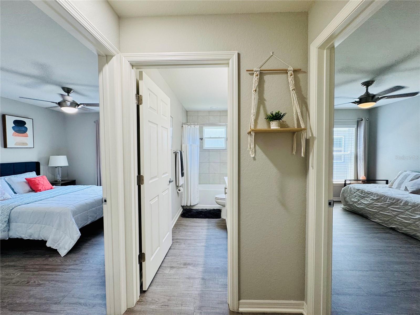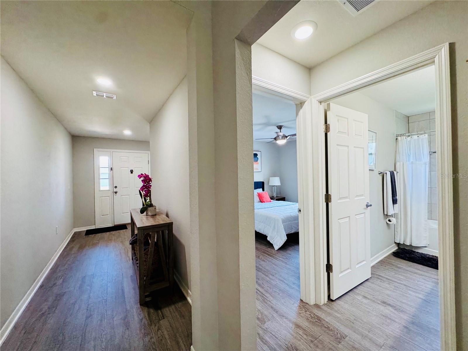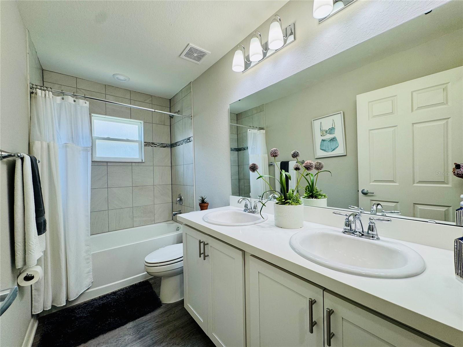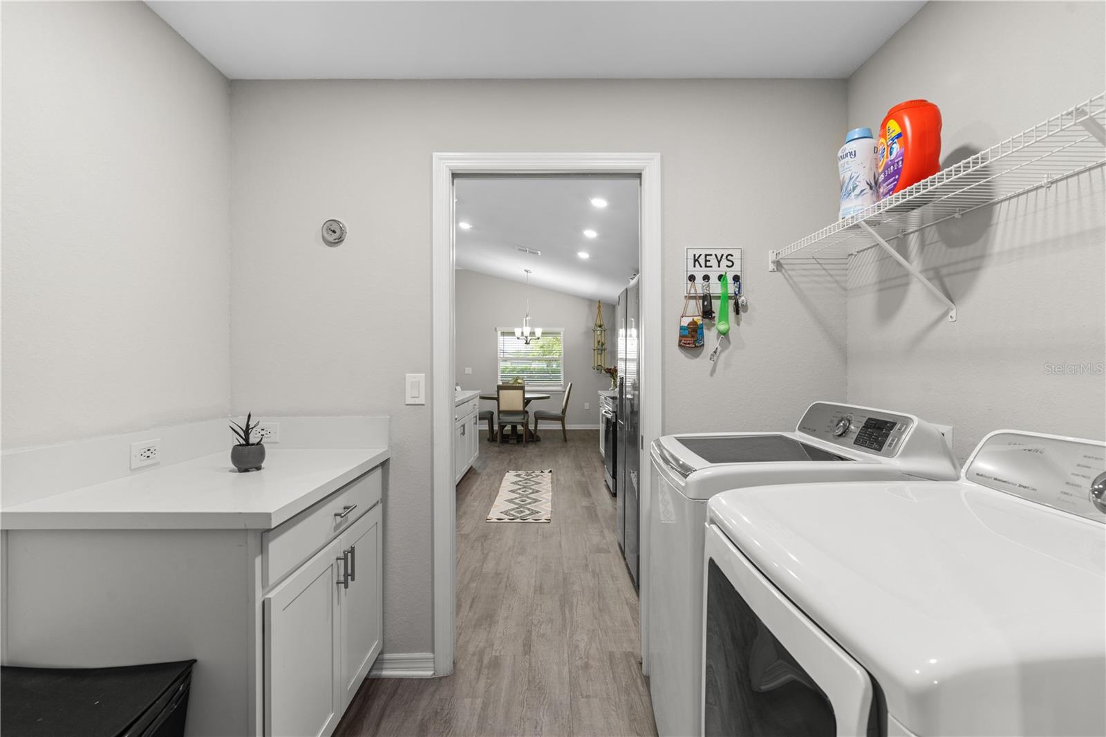 Motivo elegante e impressionante em Serendipity de 3 quartos e casa de 2 banheiros, oferecendo a mistura perfeita de luxo e funcionalidade para o seu conforto. Construído em 2021, esta residência meticulosamente mantida é repleta de atualizações premium. Entre para encontrar pisos de tábuas de vinil de luxo fluindo pelas principais áreas de estar e quartos, complementados por bancadas de quartzo na cozinha, banheiros e até a lavanderia. A cozinha aberta com uma grande ilha oferece toneladas de espaço de balcão, utensílios de aço inoxidável com eficiência energética, armários elegantes e um layout espaçoso perfeito para entretenimento. Enjoy the comfort of ceiling fans in all bedrooms, window blinds throughout, and a thoughtfully designed split floor plan offering privacy and space.The primary suite features a dual-sink vanity, walk-in closet, and a spa-like spacious ensuite.Additional features include, dedicated indoor laundry room with washer & dryer, screened-in lanai with tile flooring, 2-car garage with Storage shelves irrigation system for easy lawn maintenance, professional Câmeras de paisagem e segurança ao ar livre para tranquilidade. Não perca esta jóia.