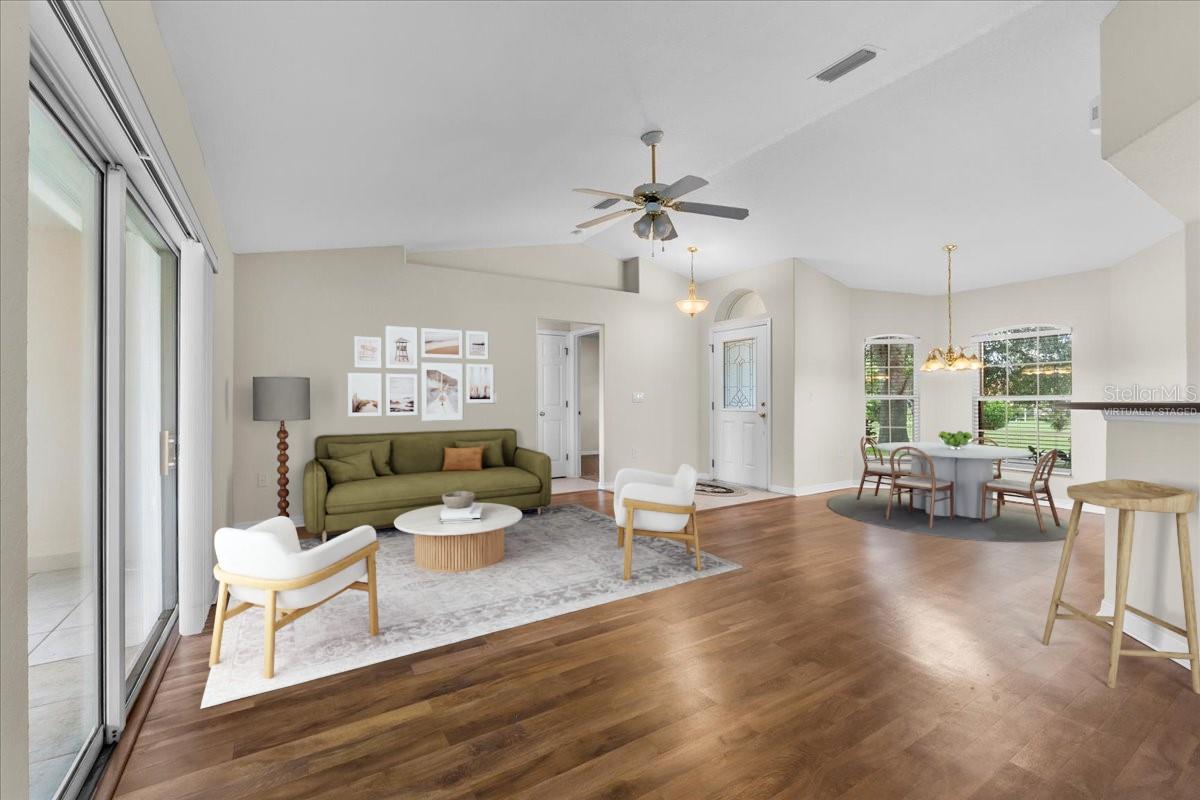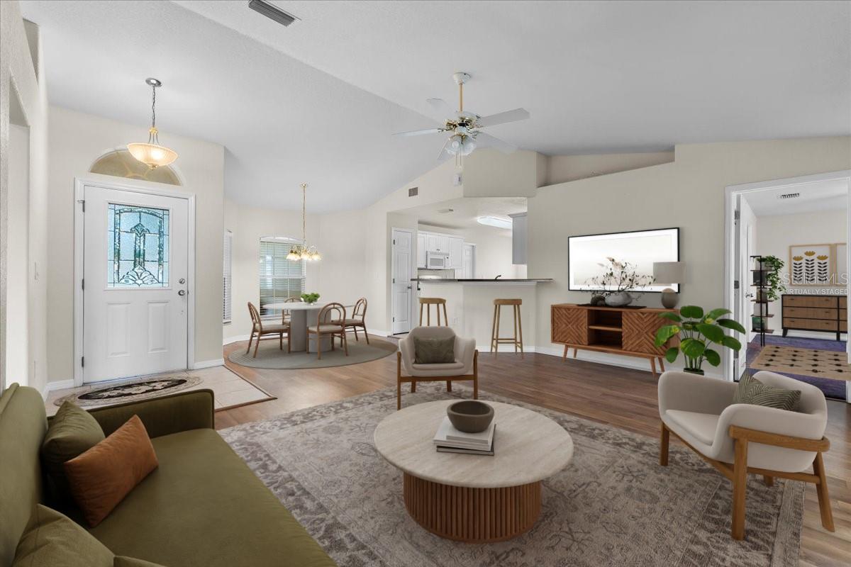 Uma ou mais fotos foram virtualmente encenadas. Bem-vindo ao 160 Morning Glory Cir, uma casa de 3 quartos e 2 banheiros lindamente conservada que oferece um layout espaçoso e funcional com excelente vida interna e externa. Situado dentro do condomínio fechado e vigiado de Winterset, uma desejável subdivisão à beira do lago no Lago Winterset, os residentes têm acesso a um clube à beira do lago, piscina, spa, rampa para barcos para a Cadeia de Lagos, shuffleboard e quadras de tênis. A planta aberta apresenta um design de quartos divididos, pé-direito elevado e uma grande sala que flui perfeitamente para a área de jantar e para a sala Florida. A cozinha está bem equipada com um pacote completo de eletrodomésticos, armário despensa, balcão para café da manhã e uma charmosa sala de jantar, além de um armário interno de lavanderia completo com lavadora e secadora. A suíte principal é de tamanho generoso, com um grande closet e um banheiro privativo com pias duplas e box amplo. Os quartos de hóspedes são igualmente espaçosos, e o terceiro quarto se destaca por sua parede personalizada com detalhes em shiplap. Convenientemente localizada perto do banheiro secundário com banheira, a ala de hóspedes também inclui dois armários de roupa de cama para maior armazenamento. A sala Flórida oferece uso flexível como escritório, escritório, espaço de artesanato ou sala de jogos. Saia para desfrutar do grande quintal com um carvalho maduro, um sistema de irrigação, uma cerca invisível para animais de estimação e um pátio pavimentado no quintal com fogueira - perfeito para entretenimento sob as estrelas. A casa também possui telhado de telha e garagem para 2 carros. Convenientemente localizado perto da Legoland Florida, Publix, Walmart, restaurantes e do novo AdventHealth ER, com fácil acesso a Tampa, Orlando, Disney World e às praias deslumbrantes da Flórida. Abrace o estilo de vida da Flórida nesta comunidade procurada, onde conforto, conveniência e segurança se unem.