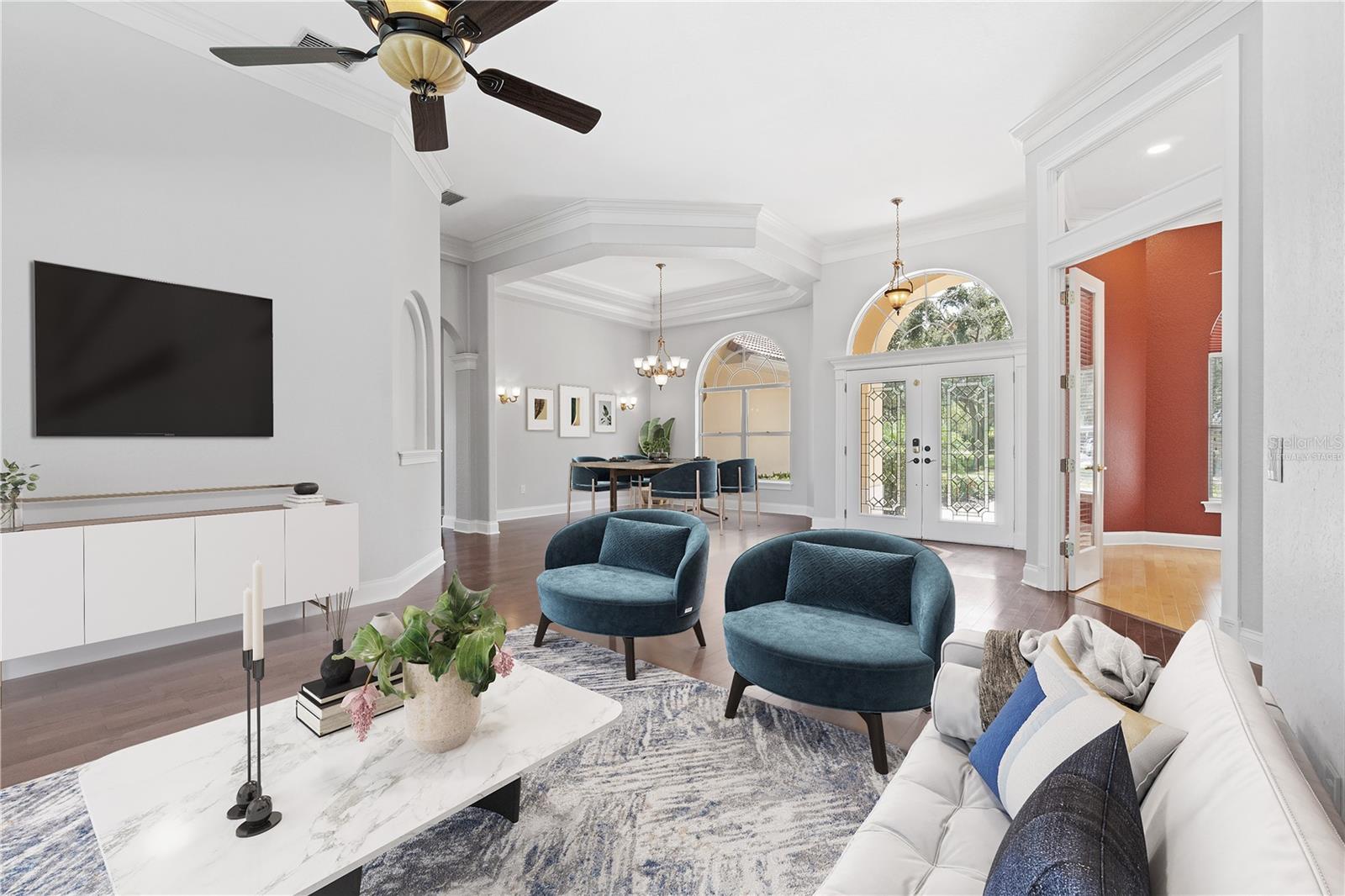 Uma ou mais fotos foram virtualmente encenadas. Descubra a vida luxuosa em Wyndham at Lake Winterset, um dos condomínios fechados e vigiados mais prestigiados de Winter Haven à beira do lago. Bem-vindo ao 105 Wyndham Drive, uma elegante residência à beira-mar em um amplo terreno de 0,80 acres com vistas tranquilas para o lago, paisagismo maduro e apelo arquitetônico atemporal. Imponentes portões de ferro forjado, uma entrada pavimentada com tijolos e terrenos bem cuidados dão o tom do estilo de vida executivo pelo qual este enclave é conhecido. No interior, o layout de 4 quartos e 3 banheiros lindamente conservado oferece espaços refinados cheios de luz natural, tetos altos, sancas, piso de madeira atualizado e janelas amplas emoldurando vistas serenas do mar. Um escritório executivo flexível pode facilmente funcionar como um quarto quarto. A cozinha inspirada no chef apresenta armários personalizados, vitrines de vidro, bancadas de granito, eletrodomésticos de aço inoxidável e um recanto de mesa embutido. A sala familiar adjacente inclui uma lareira aconchegante e armazenamento de vinho personalizado, enquanto as salas de estar e de jantar formais acrescentam sofisticação às reuniões. A suíte primária privativa é um verdadeiro retiro com espaço para área de estar, closets duplos e banheira tipo spa com banheira de hidromassagem, box amplo, pias duplas e arandela elegante. Os quartos adicionais são de tamanho generoso e bem separados para maior privacidade. Saia para desfrutar da vida à beira-mar da Flórida em estilo resort. Uma varanda coberta com conexões de áudio/TV se abre para um amplo pátio pavimentado, piscina aquecida e spa em estilo lagoa, fogueira ao ar livre e vistas tranquilas do lago e da fonte - ideal para noites divertidas ou tranquilas em casa. A enorme garagem para dois carros inclui piso de epóxi e amplo armazenamento embutido. As atualizações recentes incluem novo piso de madeira em todos os quartos e no escritório, novos azulejos em ambos os banheiros, pátios ampliados, irrigação melhorada, paisagismo renovado e nova pintura interna/externa. Os residentes de Wyndham desfrutam de quadras de tênis e pickleball, basquete, playground e segurança tripulada - tudo em um ambiente à beira do lago bem cuidado, perto da Cadeia de Lagos Winter Haven, lojas, restaurantes, cuidados médicos e principais rodovias. A Disney World fica a menos de uma hora de distância, com acesso conveniente aos aeroportos de Tampa e Orlando. Uma rara oportunidade de possuir uma das melhores casas executivas à beira-mar de Wyndham, oferecendo luxo, privacidade e um cenário natural deslumbrante.
