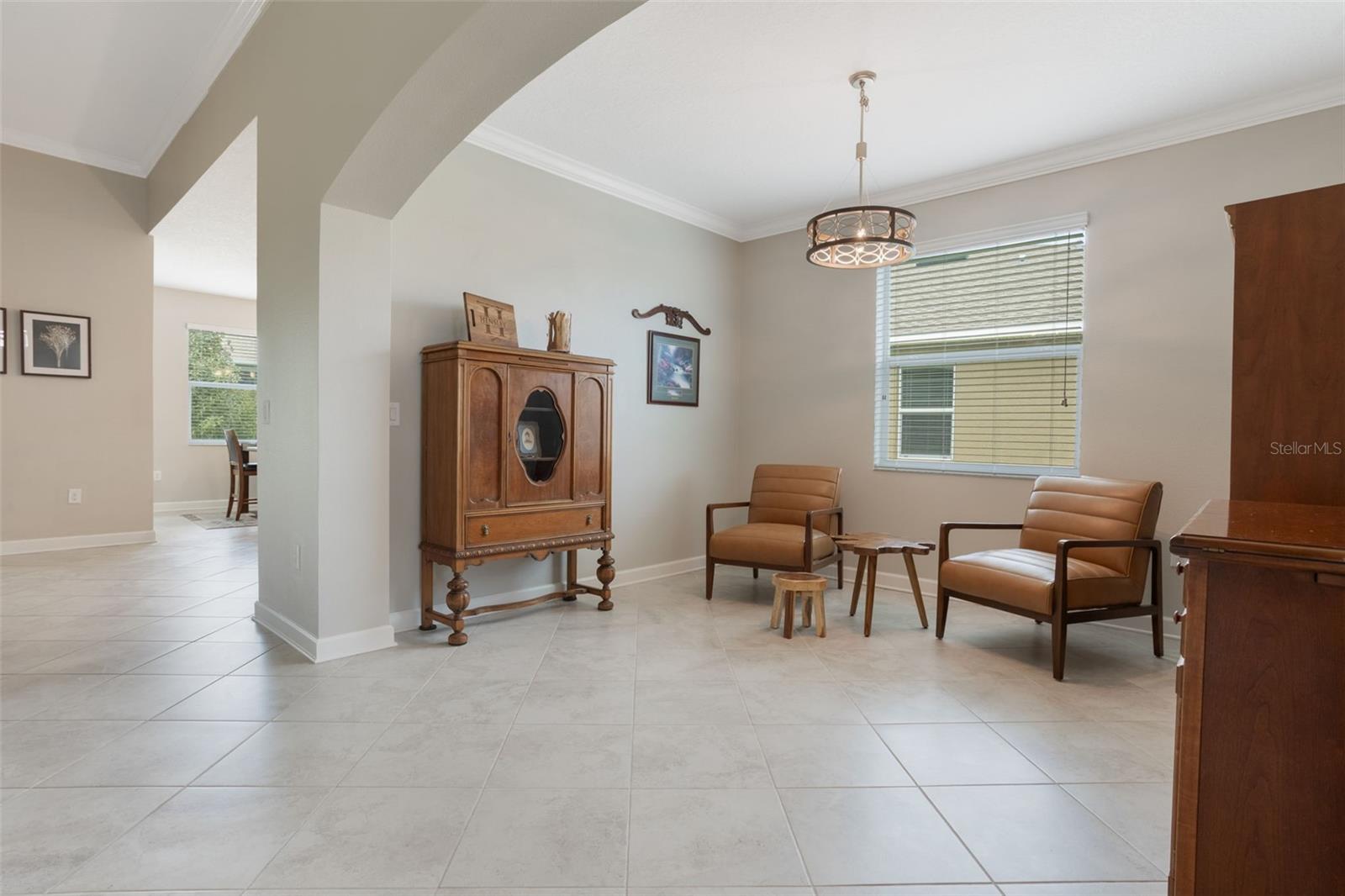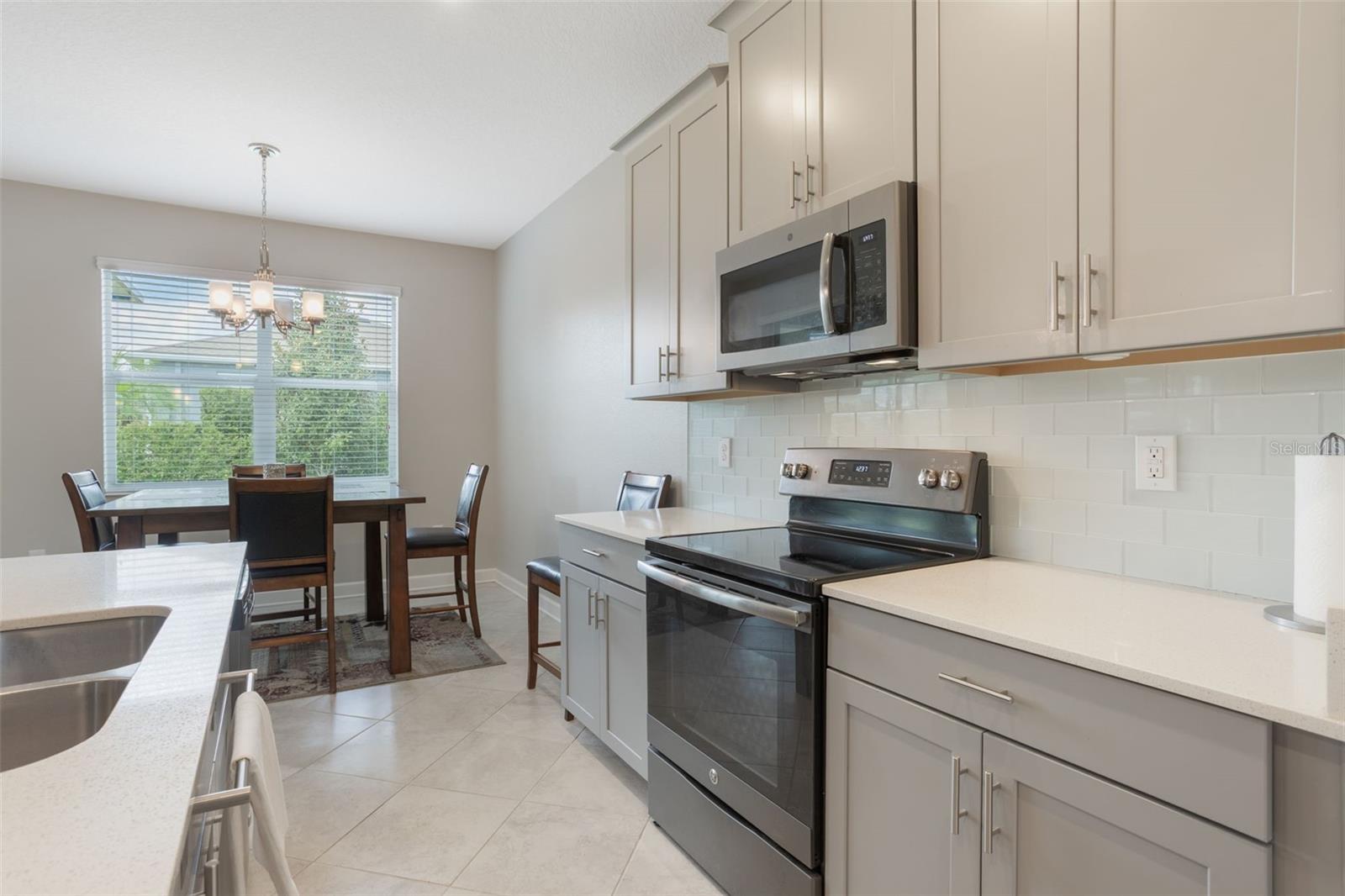 Bem-vindo ao Premier 55+ Community de tradições fechadas sem manutenção, onde esta casa de 2 quartos e dois banheiros, com um Den, oferece conforto e sofisticação. Construído como uma residência ecológica, esta casa combina a eficiência moderna com o estilo atemporal. Entre na espaçosa grande sala, destacada por uma parede de papel de pedra empilhada, moldagem por coroa e piso de azulejos de cerâmica, criando um ambiente elegante e convidativo. Portas de vidro deslizantes de grandes dimensões abertas para a extensão prolongada, misturando perfeitamente a vida interna e externa. A cozinha gourmet é o sonho de um chef, com armários atemporais no estilo shaker com moldagem por coroa e hardware de níquel escovado, complementado por um backsplash de ladrilhos de vidro. Uma ilha central com bancadas de quartzo e iluminação pendente cria um ponto focal impressionante, enquanto uma despensa, estação de café e pacote de aparelhos de aço inoxidável adiciona função e conveniência. Um recanto de café da manhã encantador oferece um espaço aconchegante para refeições casuais, e o layout de conceito aberto garante entretenimento sem esforço à medida que a sala de jantar formal flui para a área de estar principal. A suíte principal do quarto oferece um retiro privado com tetos de bandeja, piso de azulejos, portas deslizantes e um espaçoso closet. O banheiro privativo é designado luxuosamente com uma vaidade de altura de conforto, com armários centrais, pias duplas, bancadas de quartzo, um armário de água e um chuveiro de azulejos acessíveis a deficientes com detalhes em listagens decorativas. O Den/Office exala calor com um teto de acento de madeira recuperado, enquanto moldagem por coroa e entradas arqueadas em toda a casa adicionam elegância arquitetônica. Para diversão ao ar livre, o Lanai de tamanho generoso com piso de pavimentação fornece um espaço sereno para relaxar e descontrair. Additional features include: Laundry room with cabinetry, Keyless entry smart lock and thermostat, Double-pane low-E windows, AO Smith hybrid water heater, Screened front entrance, Video doorbell, Exterior carriage lighting, Exterior Stone façade and architectural shingles, Radiant heat barrier and GreenGuard Max house wrap, Alarm system, Gutters and decorative stone curbing, Paved walkway and driveway, In-wall pest system, Two Racks de armazenamento de garagem aérea, abridor de portas de garagem e uma garagem para dois carros com nicho de carrinho de golfe. A pitoresca comunidade de tradições oferece uma abundância de atividades planejadas e comodidades no estilo resort, incluindo um clube à beira do lago, rampa de doca e barcos, piscina e spa aquecidos, salão de baile, bilhar, biblioteca, computadores e artesanato, parque de cães, cortes de tênis, basquete, bocha, shuffleboard, um centro de fitness, studio aeróbicos e mais. As taxas mensais do HOA cobrem o serviço de gramado, a cabo, a internet e a pintura de casas externas. Convenientemente localizado perto de compras, restaurantes, instalações médicas, Legoland e rotas principais, esta casa fornece o equilíbrio perfeito de conforto, conveniência e vida comunitária.