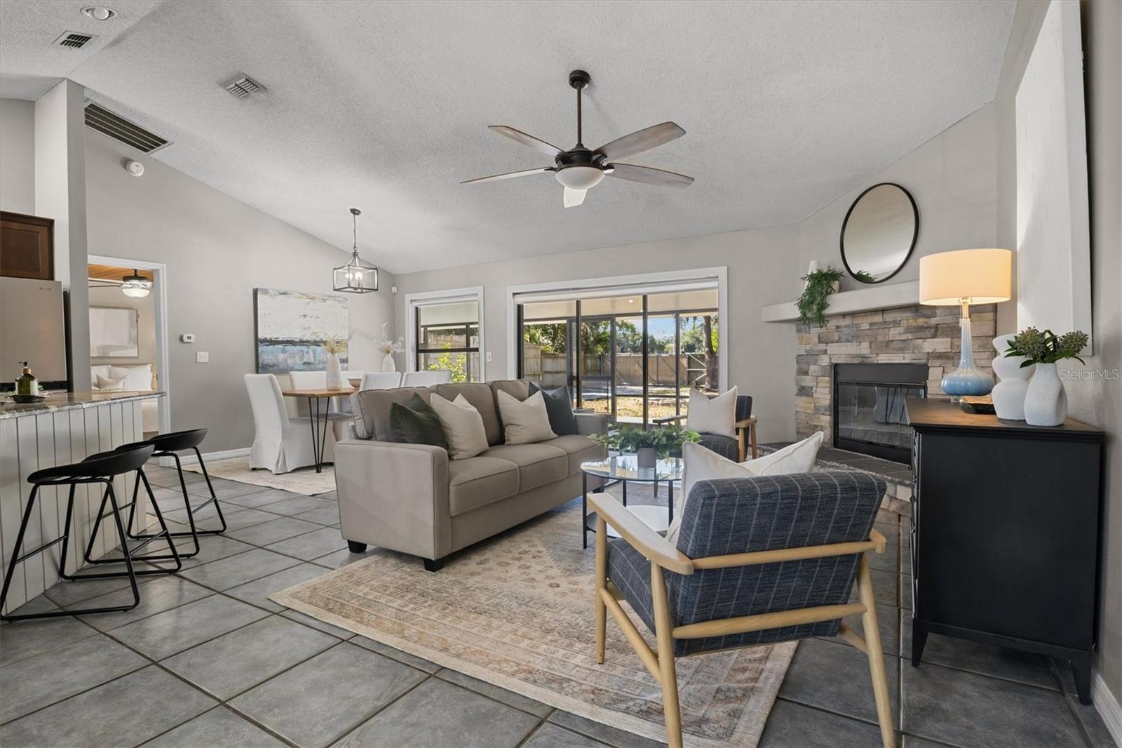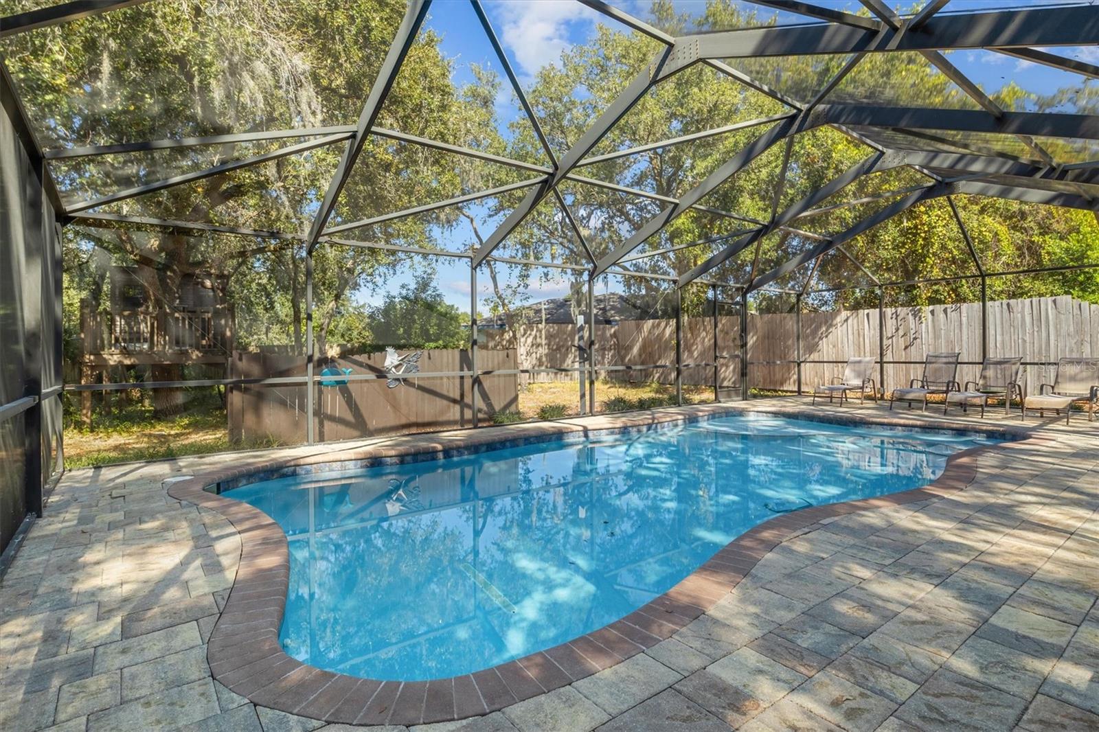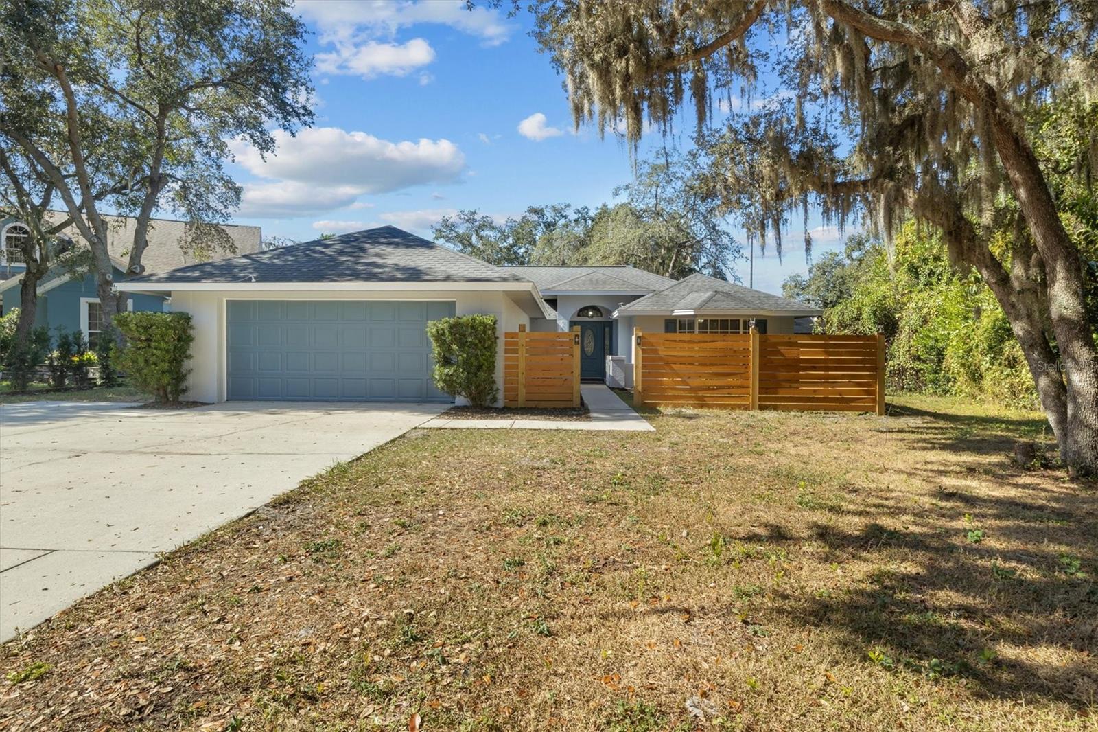 Linda casa com PISCINA personalizada de 3 quartos e 2 banheiros, escondida em um beco sem saída tranquilo, SEM HOA e a privacidade extra de SEM vizinhos TRASEIROS! Esta casa foi atualizada com novas cercas frontais, repintura interna e banheiros atualizados com luxuoso piso de pranchas de vinil, novas penteadeiras e portas repintadas. O atual proprietário também removeu alguns carvalhos e renovou parte do paisagismo. Entre em uma planta aberta e convidativa com tetos de catedral, piso de cerâmica por toda parte, lareira a lenha e portas de vidro deslizantes que levam à ampla varanda com tela de 38 x 10, perfeita para relaxar ou se divertir. A cozinha oferece bancadas de granito, eletrodomésticos de aço inoxidável, balcão para café da manhã e uma despensa conveniente. A suíte principal inclui acesso direto à varanda e um espaçoso banheiro privativo com banheira de jardim, chuveiro separado e pia dupla. O layout do quarto dividido oferece privacidade adicional com dois quartos de hóspedes e um segundo banheiro completo no lado oposto. Nos fundos, aproveite seu quintal cercado privado com piscina de água salgada, chuveiro ao ar livre, fogueira e galpão de armazenamento, além de amplo espaço para um barco ou trailer. O portão em balanço oferece fácil acesso pela parte traseira da propriedade. Imagine relaxar na área da piscina aproveitando o lindo clima da Flórida ou reunir-se ao redor da fogueira à noite! Esta casa combina verdadeiramente conforto, funcionalidade e privacidade, uma propriedade imperdível que cumpre todos os requisitos!