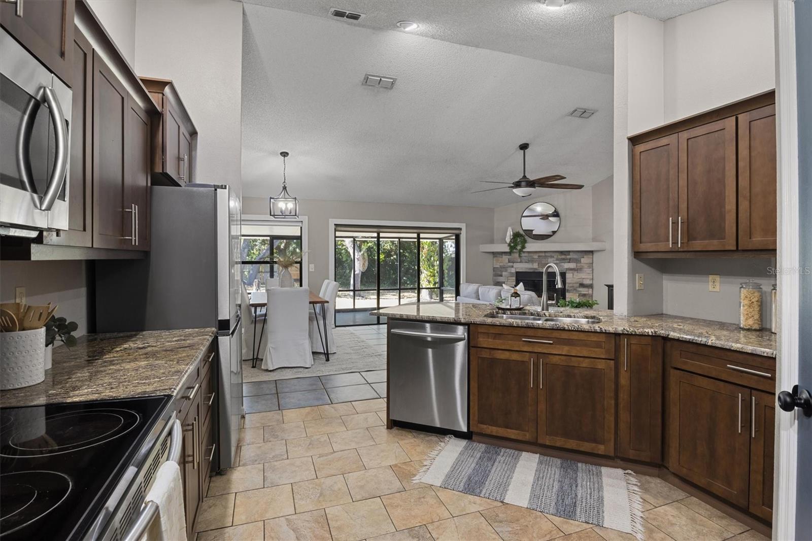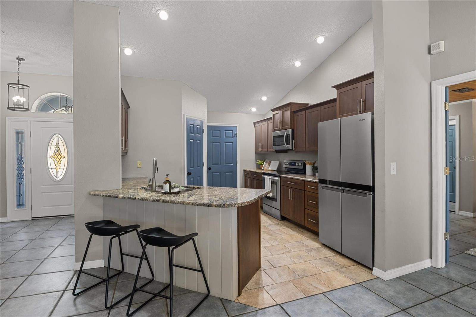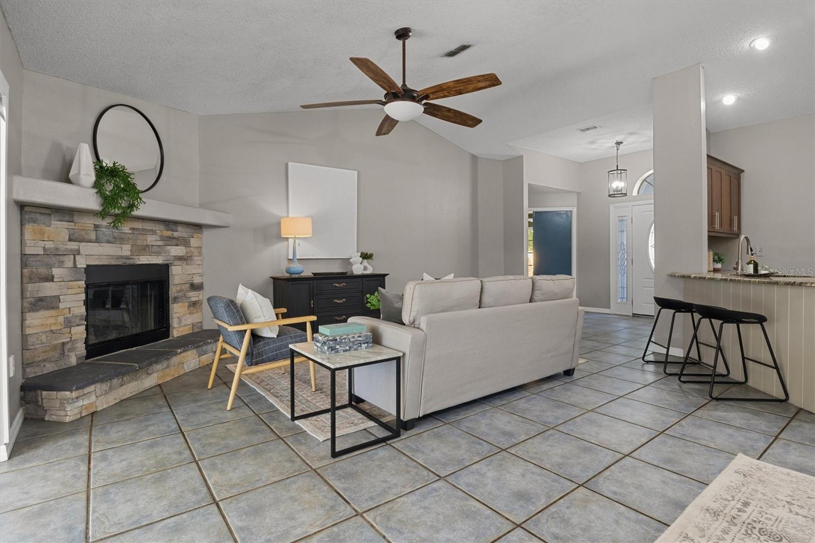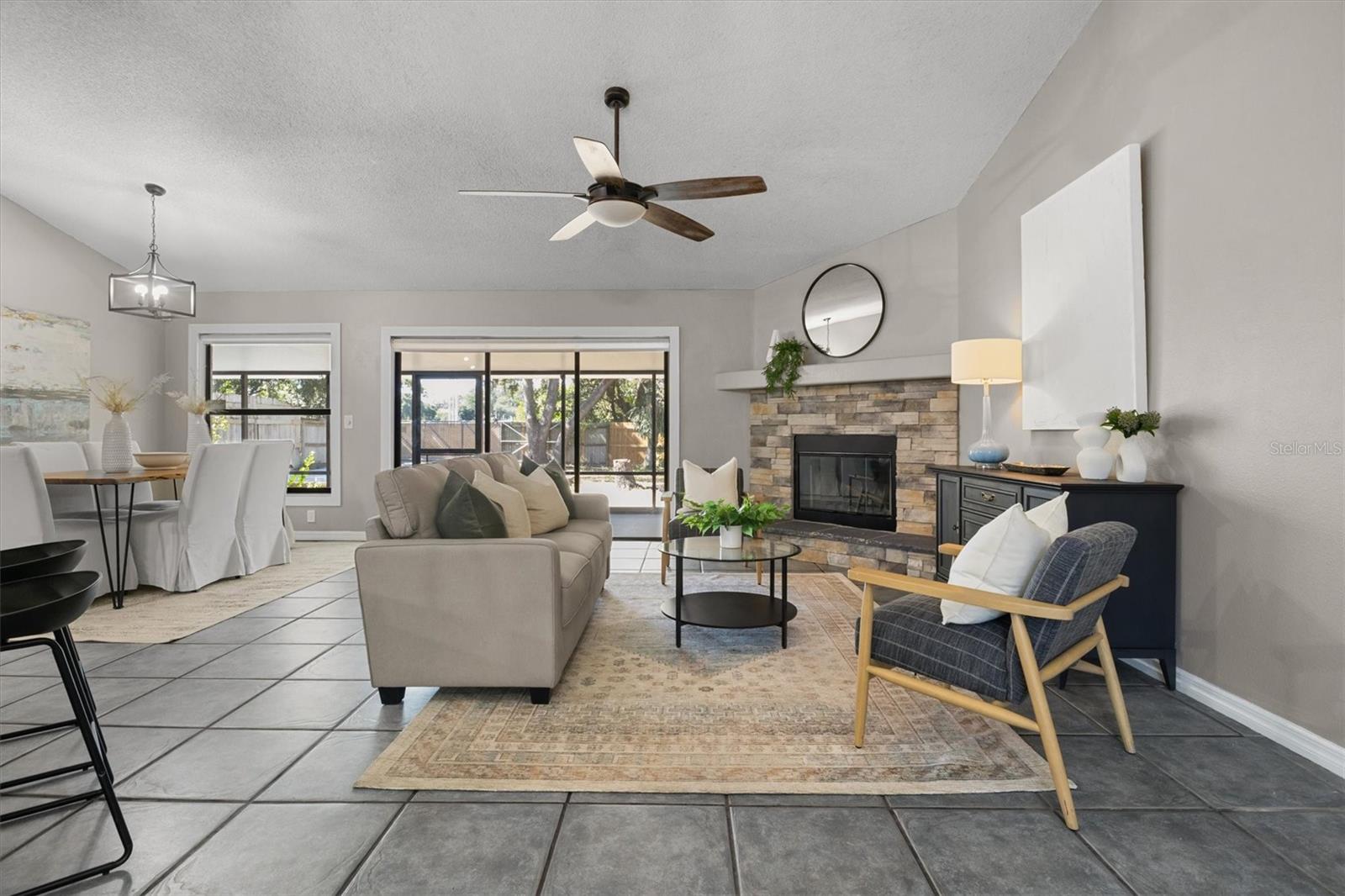 Linda casa com PISCINA personalizada de 3 quartos e 2 banheiros, escondida em um beco sem saída tranquilo, SEM HOA e a privacidade extra de SEM vizinhos TRASEIROS! Esta casa foi atualizada com novas cercas frontais, repintura interna e banheiros atualizados com luxuoso piso de pranchas de vinil, novas penteadeiras e portas repintadas. O atual proprietário também removeu alguns carvalhos e renovou parte do paisagismo. Entre em uma planta aberta e convidativa com tetos de catedral, piso de cerâmica por toda parte, lareira a lenha e portas de vidro deslizantes que levam à ampla varanda com tela de 38 x 10, perfeita para relaxar ou se divertir. A cozinha oferece bancadas de granito, eletrodomésticos de aço inoxidável, balcão para café da manhã e uma despensa conveniente. A suíte principal inclui acesso direto à varanda e um espaçoso banheiro privativo com banheira de jardim, chuveiro separado e pia dupla. O layout do quarto dividido oferece privacidade adicional com dois quartos de hóspedes e um segundo banheiro completo no lado oposto. Nos fundos, aproveite seu quintal cercado privado com piscina de água salgada, chuveiro ao ar livre, fogueira e galpão de armazenamento, além de amplo espaço para um barco ou trailer. O portão em balanço oferece fácil acesso pela parte traseira da propriedade. Imagine relaxar na área da piscina aproveitando o lindo clima da Flórida ou reunir-se ao redor da fogueira à noite! Esta casa combina verdadeiramente conforto, funcionalidade e privacidade, uma propriedade imperdível que cumpre todos os requisitos!