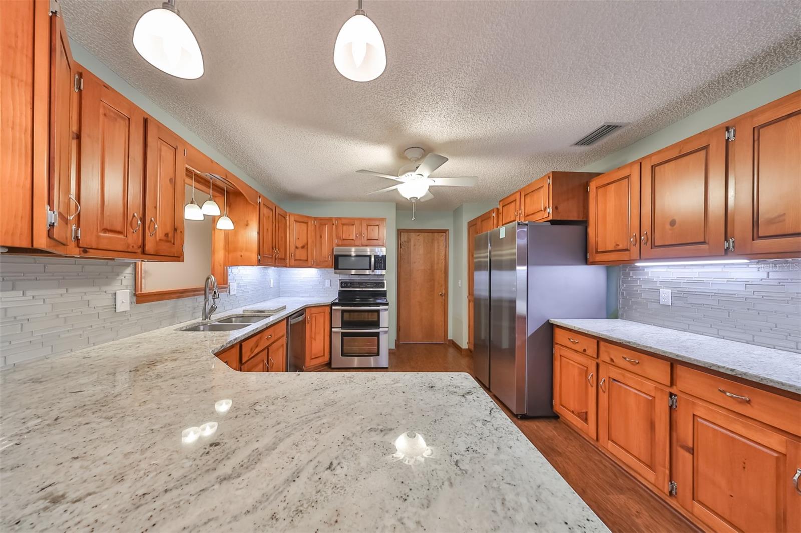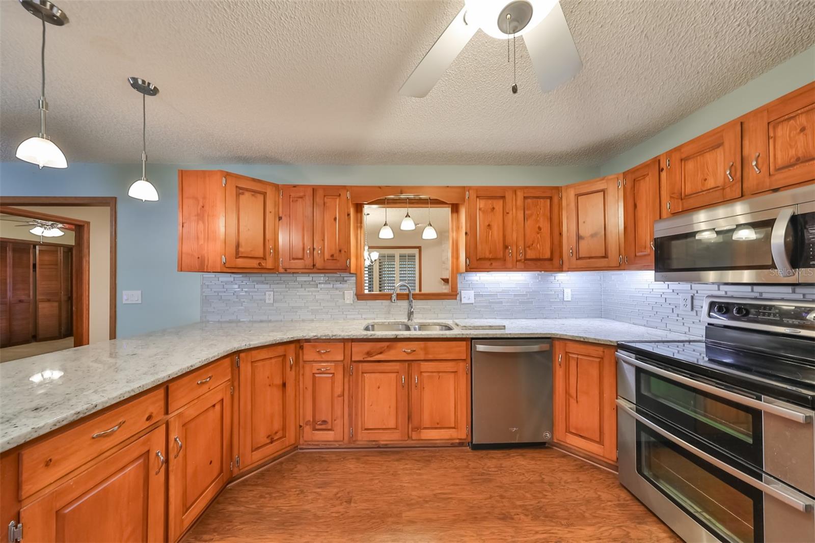 Lindo acesso ao lago! 4 quartos 2 casa de banho com spa de natação está localizada na desejável comunidade de Summerhaven Shores, oferecendo acesso a Lake Daisy e Lake Ned. O lote cercado de PVC grande e grande, com um jardim exuberante, o cenário de cenário o recebe com esta casa excepcional. Ao entrar, você é recebido por um espaçoso hall de entrada com um armário de casaco que se abre para uma grande sala de família com piso laminado quente como laminado que flui durante a maior parte da casa. Os recursos de cozinha de bar bem equipados: balcões de granito, backsplash de gorjear, pias de aço inoxidável duplo, pacote completo de aparelhos inoxidáveis, armários de madeira personalizados com Susan preguiçosos, sob iluminação de montagem e uma passagem pela janela para a linda sala de jantar ou família com lareira de pedra e iluminação de designers. Logo fora da cozinha há uma área de escritório versátil que poderia ser facilmente convertida em uma enorme despensa de armário. Desfrute da Florida Living Swimsing no spa na Lania, 19x24. Suíte dos proprietários se gabam: banheira de imersão de jato, vaidade grande, azulejo e uma banheira no armário de água. Esta casa incrível é o sonho de um amante de barco com uma garagem de grandes dimensões e lote perfeito para armazenamento de barcos! As atualizações adicionais incluem: 2021 Calhas, 2021 Caixa elétrica/protetor de surto, bomba de irrigação de caçadores 2023, poço privado para irrigação por gramado, substituição parcial de janelas e portas 2023, 2023 ac e um empréstimo assumido de VA!