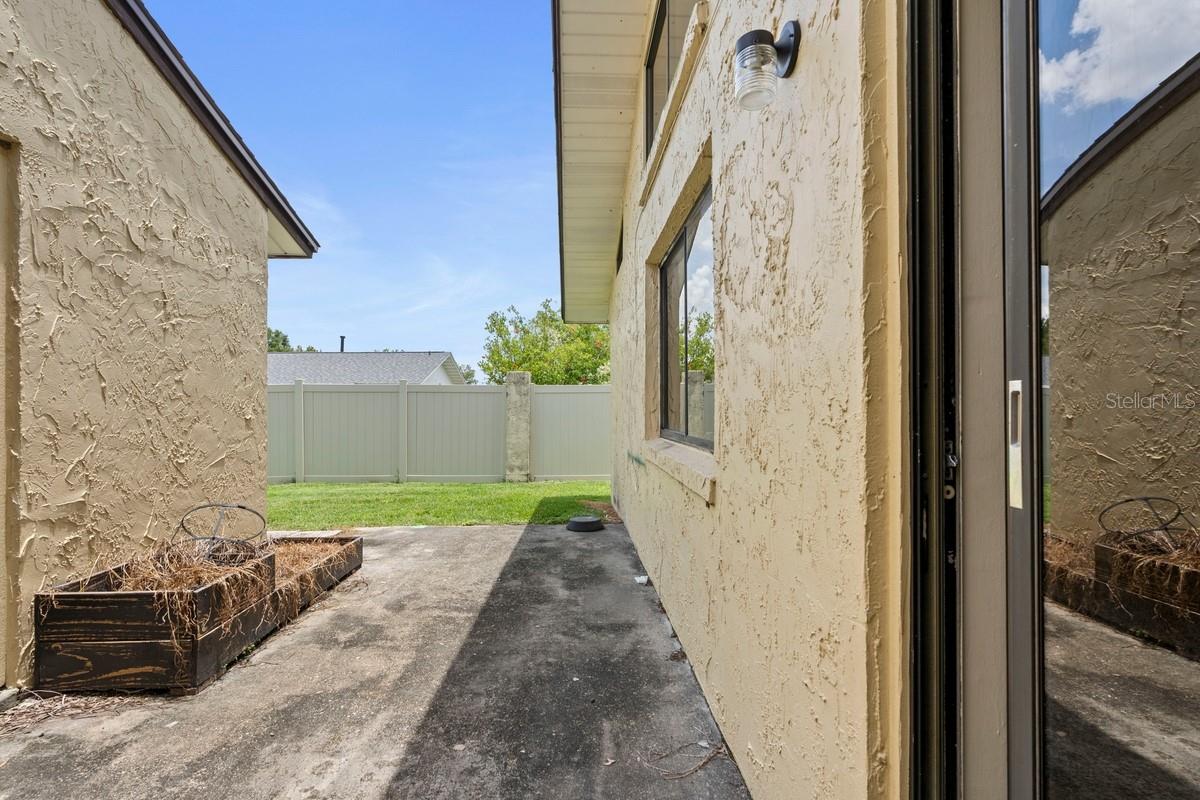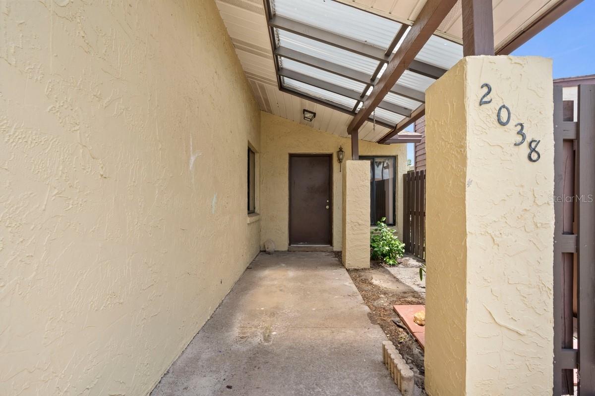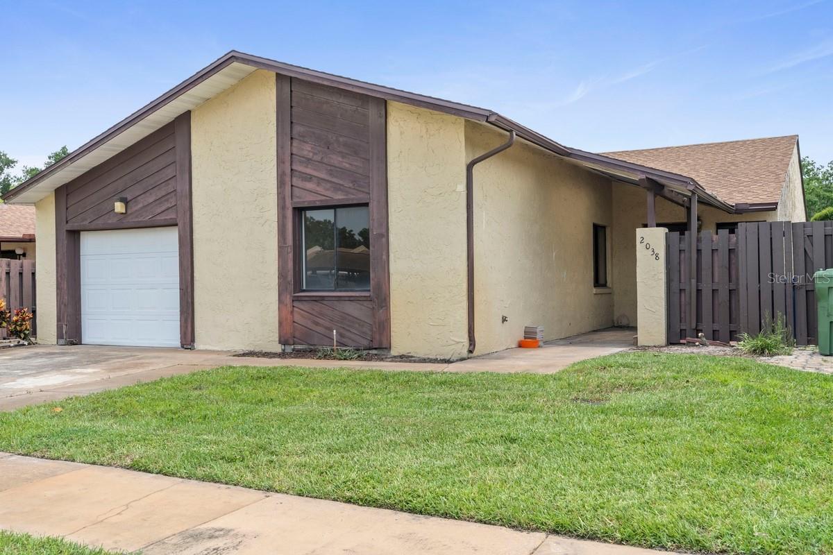 Caixa de correio privada, barril/cisterna(s) de chuva, calçada