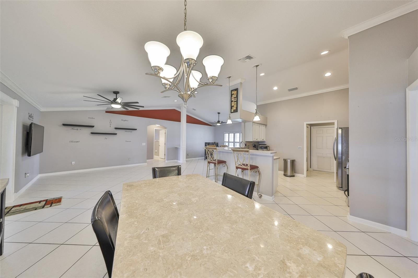 O orgulho de propriedade brilha nesta casa de 3 quartos e 2 banheiros, bem construída e meticulosamente mantida, na cobiçada comunidade Country Walk. Apresentando sancas em todos os cômodos, venezianas e balcões de superfície sólida por toda parte, esta casa é tão elegante quanto funcional. Ao chegar, você será recebido por uma passarela de concreto lindamente estampada/revestida e uma acolhedora varanda frontal com colunas, perfeita para uma fileira de cadeiras de balanço. O jardim frontal paisagístico com meio-fio decorativo é atraente, mas de baixa manutenção. Entre e não encontre nenhum carpete - a cerâmica flui perfeitamente por toda a casa. Uma espaçosa sala grande com tetos abobadados, prateleiras e sancas serve como o coração da casa. Portas francesas com persianas embutidas levam a uma ampla varanda com tela de 15x30 (450 pés quadrados) com piso revestido de epóxi e toldos, oferecendo uma vida confortável ao ar livre durante todo o dia. A cozinha aberta oferece eletrodomésticos atualizados e um balcão na altura do bar com assentos para vários bancos de bar. A suíte principal inclui porta francesa de acesso à varanda, um espaçoso closet e um banheiro privativo atualizado com pias duplas, chuveiro grande com portas de vidro novas, além de um armário de armazenamento e um armário de roupa de cama. O enorme quintal é totalmente vedado (com postes reforçados), contando com um amplo pátio e um quintal incrível que seus amigos peludos vão adorar! Os destaques adicionais incluem: * Piso de garagem revestido com epóxi com portas deslizantes blindadas para fluxo de ar e conforto * Casinha de cachorro adorável e bem cuidada no quintal com pintura e piso de epóxi para combinar com a casa. *Sistema de filtragem de ar extra incluído no sistema HVAC e com manutenção realizada em 08/10/2025 como parte do plano de manutenção semestral. * Sistema de filtragem de água para toda a casa Esta casa está limpa, pronta para morar e construída para impressionar - por dentro e por fora. Não perca a oportunidade de possuir esta propriedade excepcional com muito espaço exterior e um dos melhores quintais do mercado, sem vizinhos nas traseiras. Agende sua exibição hoje mesmo!