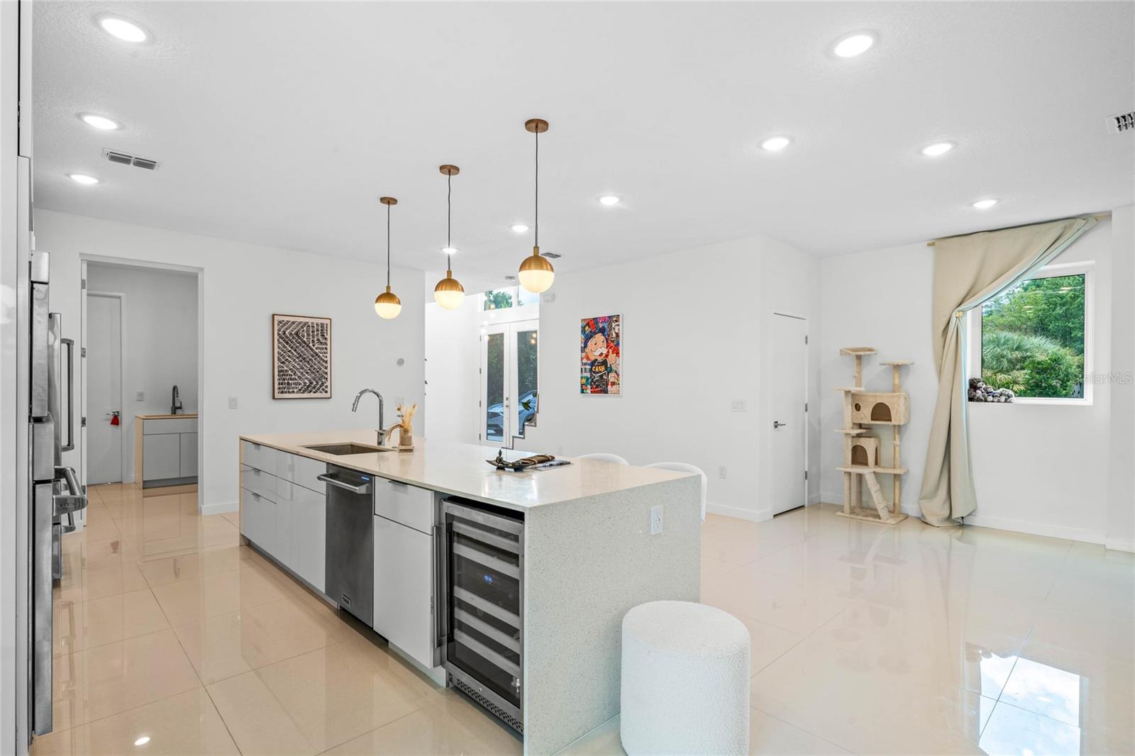 Bem-vindo a uma joia arquitetônica no coração de Winter Park – uma obra-prima recém-construída que simboliza o luxo moderno e o design de última geração. Perfeitamente situada a apenas 1,6 km da sofisticada Park Avenue e a apenas 4 km do vibrante centro de Orlando, esta casa oferece a combinação ideal de tranquilidade e conveniência da cidade, livre dos problemas do tráfego da I-4. A partir do momento de sua chegada, você ficará cativado pelas linhas simples e pelo exterior minimalista emoldurado por uma paisagem exuberante e um gramado imaculado. Entre em uma ampla planta aberta onde o design elegante encontra acabamentos luxuosos. As áreas de estar, jantar e cozinha combinam perfeitamente, criando uma atmosfera luminosa e convidativa, reforçada pela luz natural que entra através de grandes janelas. A cozinha gourmet é o sonho de um chef, com eletrodomésticos de aço inoxidável de alta qualidade, armários personalizados, uma grande ilha com uma impressionante bancada e assentos de quartzo com borda de cachoeira, iluminação pendente elegante e um backsplash elegante que adiciona um toque de sofisticação ao contemporâneo projeto. Esta casa oferece quatro quartos lindamente decorados e quatro banheiros luxuosos. A versátil suíte de hóspedes no primeiro andar oferece conveniência e privacidade, enquanto o segundo andar possui três suítes adicionais, incluindo uma espaçosa suíte principal. O banheiro principal é um retiro pessoal, completo com pia dupla, banheira de imersão separada e box amplo, oferecendo uma experiência de spa. Aproveite ao máximo o estilo de vida da Flórida no quintal privativo cercado, ideal para entretenimento ou relaxamento, e aproveite a varanda coberta com cozinha de verão. Os destaques adicionais incluem uma espaçosa garagem para dois carros, amplo armazenamento, incluindo um grande closet na suíte principal - equipada com um luxuoso sistema de closet e iluminação LED de designer por toda parte. Com escolas de primeira linha nas proximidades e localização em um dos bairros mais desejáveis da Flórida Central, esta casa é perfeita para famílias ou qualquer pessoa que procure uma experiência de vida moderna e luxuosa. Não perca esta rara oportunidade de possuir uma residência única em Winter Park!