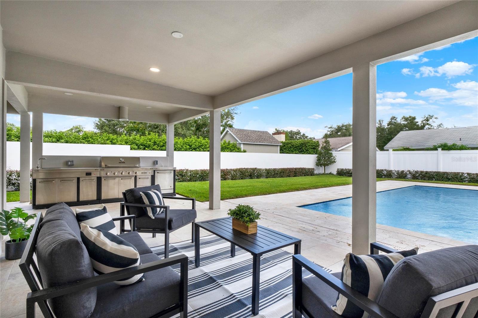 Apresentado na American Dream Network! Descubra luxo incomparável e vida moderna, uma casa personalizada completamente renovada situada no coração de Winter Park. Esta requintada residência de 4 quartos e 4 banheiros fica em um lote generoso de 10.769 pés quadrados, oferecendo a combinação perfeita de conforto, estilo e acabamentos de alta qualidade. Ao entrar pela acolhedora varanda frontal, você é recebido por pisos de porcelanato e um design espaçoso e de conceito aberto. As áreas de estar e de jantar repletas de luz oferecem vistas deslumbrantes da piscina em estilo resort e da varanda ampla, criando o ambiente ideal para entretenimento ou relaxamento. A cozinha do chef é o coração da casa, ostentando uma ilha enorme com bancadas de quartzo, armários personalizados e eletrodomésticos Bosch, tornando-a um sonho culinário tornado realidade. Além dos espaços principais, esta casa oferece um escritório dedicado e uma sala de jogos de dimensões generosas com mesa de sinuca, perfeita para famílias ou hospedagens. A luxuosa suíte principal, com acesso direto à piscina e ao quintal, dispõe de um banheiro privativo tipo spa, completo com pia flutuante, luxuosos acessórios Delta e um chuveiro grande. Saia e encontre-se em um oásis privado ao ar livre, projetado para diversão durante todo o ano. A cozinha externa totalmente equipada dispõe de churrasqueira a gás de 36', bar molhado, frigobar e assentos na área de jantar ao ar livre, todos com vista para a piscina de 14'x28'. Com iluminação inteligente, sistema de som externo pré-cabeado e luzes de jardim, este quintal está pronto para entretenimento noturno ou tardes tranquilas à beira da piscina. Esta casa está repleta de atualizações modernas, incluindo luzes LED com dimmers, um termostato inteligente Nest, uma unidade de ar condicionado de 5 toneladas, um aquecedor de água inteligente e porcelanato de 24”x48” por toda parte. Sua tranquilidade é garantida com um sistema de segurança residencial inteligente com três teclados de alarme e câmeras externas pré-instaladas. Localizada a poucos minutos do vibrante Downtown Baldwin Park, do Rollins College e de uma variedade de opções de compras e restaurantes, esta casa está perfeitamente situada para conveniência e luxo. Esteja você procurando se estabelecer em um bairro sereno ou em busca de uma oportunidade de investimento de alto padrão, esta casa reconhecida nacionalmente oferece tudo isso. Não perca a chance de possuir um pedaço do sonho americano – agende seu tour privado hoje mesmo.