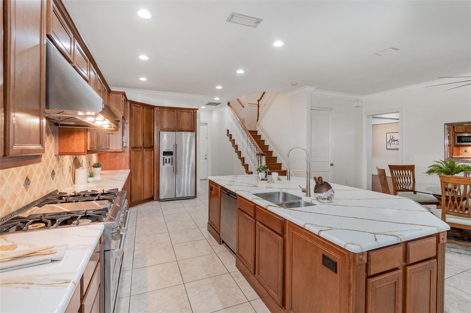 Esta casa verifica todas as caixas !!! Situado em uma rua unidirecional tranquila em Winter Park e recentemente renovada, esta cama de 4 camas, 3 em casa completa de 2 meio banho construída com estilo e elegância. Desde os tetos de 10 'até os pisos de cereja brasileira, uma cozinha gourmet, piscina exibida e sala de bônus generosa acima da garagem de grandes dimensões com toneladas de armazenamento, esta casa tem tudo. A impressionante cozinha gourmet oferece muito espaço para entretenimento em quase qualquer escala, com seus armários de madeira natural, ilha central, alcance de seis queimadores de combustível duplo de 48 ”(2024), geladeira de vinho e geladeira embutida. A cozinha compartilha espaço com uma área de jantar e uma sala de estar com lareira. Outras atualizações importantes incluem um novo telhado (novembro de 2023), nova bomba de piscina (2024), piso de garagem refrescada (2025), garagem de dois carros recém-pintada (2025), conjuntos de trava Schlage e botões de porta em todo o interior e exterior (2025) e paisagem atualizada (2025). Esta é realmente uma bela casa com detalhes luxuosos, incluindo portas francesas que levam do quarto principal do quarto e da sala da família para a piscina, piso sofisticado, molduras elegantes da coroa e Millwork, um banheiro de 1/2 e o teto da bandeja e armários da Califórnia na suíte do proprietário.