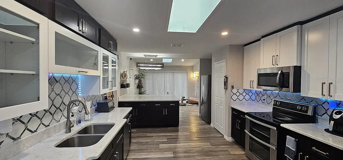 Bem-vindo à subdivisão de Lake Waunatta Cove, em Orange County. Este atraente, lindamente decorado, 5 quartos muito espaçosos, 3 casas de banho completas, uma sala familiar e uma cave muito rara. Esta casa espaçosa é aberta e arejada, com tetos abobadados, claraboias, ventiladores de teto iluminados mais recentes em todos os quartos, sala de estar e sala de família, lareira a lenha na sala de estar e um fantástico layout de planta dividida. A grande cozinha tem armários shaker mais novos de 42 polegadas com lindas bancadas de quartzo e um lindo backsplash espelhado. Há muito espaço no armário para todos os seus utensílios de cozinha e uma grande ilha de cozinha, com arrumação por baixo. Os eletrodomésticos incluem um fogão com forno duplo, exaustor de micro-ondas, geladeira e lava-louças. Enorme vinil cercado em um quintal de mais de um quarto de acre (0,36), ótimo para entreter todos os seus amigos e familiares. Portas laterais com cerca de vinil com portão duplo no lado direito da casa para estacionamento extra para automóveis ou para guardar seu barco. Ótima localização e a uma curta distância a pé de supermercados, vários bancos, lojas, instalações médicas e restaurantes. Convenientemente localizado perto de transportes públicos, UCF, Full Sail University e Rollins College. Fácil acesso às autoestradas 417, 408 e I4.
