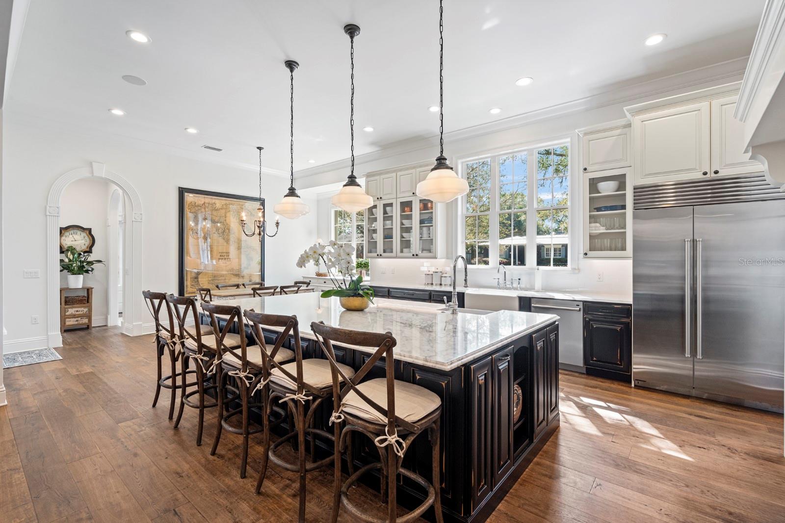 Situado ao longo de uma pitoresca rua de tijolos, o 2040 Randall Circle é uma residência lindamente trabalhada que combina arquitetura atemporal com acabamentos elevados de design e uma planta baixa funcional. Emoldurada por um paisagismo bem cuidado e conectada a uma garagem individual para dois carros por uma passarela coberta, a casa oferece apelo clássico em um cenário idílico a poucos minutos das lojas e restaurantes vibrantes da Park Avenue. No interior, ricos pisos de madeira percorrem todos os espaços, complementados pela iluminação Restoration Hardware que traz uma sensação refinada e coesa a todos os quartos. O acolhedor hall de entrada se abre para uma graciosa sala de estar formal com lareira a gás e embutidos personalizados, um espaço elegante e confortável para entretenimento ou relaxamento. Um pouco além, a sala de jantar formal é bem proporcionada para receber facilmente reuniões de feriados e jantares. O coração da casa é a ampla cozinha do chef, cuidadosamente projetada para a vida cotidiana e para o entretenimento sem esforço. Uma ilha enorme ancora o espaço, coberta com balcões de mármore Carrara e oferecendo assentos generosos. Um forno Wolf duplo com fogão de seis bocas, fogão francês, armários personalizados, despensa e despensa completa com adega refrigerada sob o balcão proporcionam beleza e funcionalidade. Uma espaçosa sala de café da manhã repleta de luz natural tem vista para o quintal e flui perfeitamente para a sala familiar. Aqui, uma lareira a gás, embutidos personalizados e três conjuntos de portas francesas criam um ponto focal acolhedor e convidativo ao ar livre. A suíte principal do primeiro andar serve como um retiro privado, com grandes janelas com vista tranquila para a piscina e acesso direto à varanda coberta. Os closets duplos oferecem amplo armazenamento, e o banheiro principal tipo spa tem acabamento em mármore Carrara, oferecendo uma grande banheira de imersão e um amplo box de vidro com chuveiros duplos. Dois banhos de pó, um cuidadosamente projetado como banho de piscina, junto com uma das duas lavanderias completam o nível principal. No andar de cima, quatro quartos adicionais e um escritório dedicado oferecem espaço generoso para familiares e convidados. Dois dos quartos possuem banheiros privativos, enquanto os dois restantes compartilham um banheiro Jack & Jill bem equipado. Um desses quartos é organizado como uma sala bônus, oferecendo flexibilidade para servir como um quinto quarto, sala de mídia ou espaço de reunião adicional, se desejado. O layout cuidadoso do segundo andar se adapta facilmente a uma variedade de necessidades de estilo de vida, seja para acomodar hóspedes, famílias em crescimento ou vida multigeracional. Uma lavanderia secundária no andar de cima adiciona uma camada adicional de conveniência diária. A vida ao ar livre é igualmente impressionante. A espaçosa varanda coberta com cozinha de verão tem vista para a água salgada, piscina aquecida e spa, criando uma extensão do espaço interior. O piso de tijolos continua da varanda até o pátio aberto, oferecendo diversas áreas para relaxar, jantar e se divertir sob o céu da Flórida. Idealmente em um local desejável e zoneado para o procurado Audubon Park K-8, o 2040 Randall Circle oferece estilo atemporal, design atencioso e vida interna e externa perfeita em um dos bairros charmosos da região.