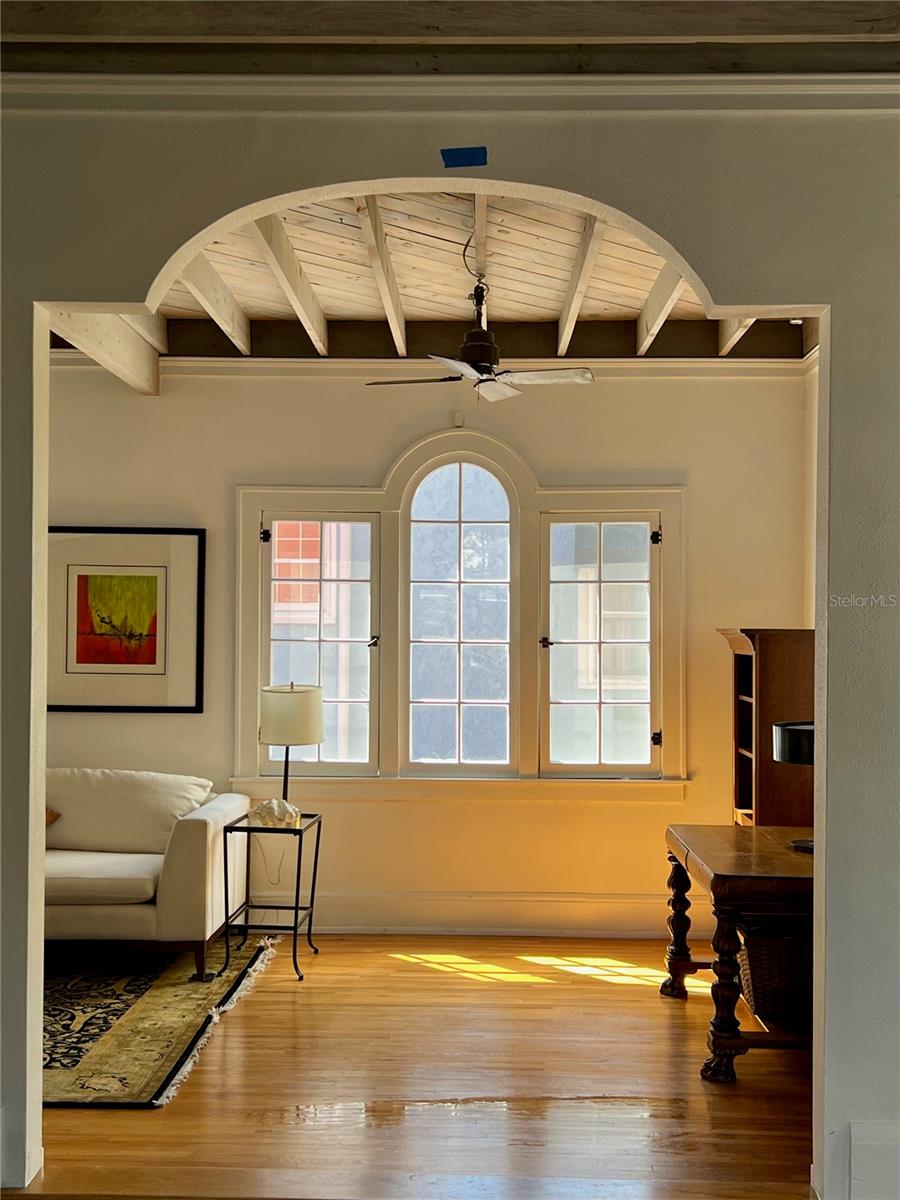 A elegante casa Mission Revival de 1922, localizada no popular College Quarter, é um local histórico registrado em Winter Park, Flórida. O estilo de vida é vizinho/relaxado/aceita animais de estimação/melhorado pela proximidade do Lago Virginia/calçadas à beira do lago/campus da Rollins College/centro de Winter Park/Central Park/museus/lojas/restaurantes/eventos culturais, a maior distância a pé. Os residentes do College Quarter desfrutam do uso exclusivo do Park/Dock no Lago Virginia para praticar caiaque/paddleboard/motor através de Chain of Lakes ou encontrar-se para fogos de artifício nas férias/eventos celestiais únicos na vida ou anuais. College Quarter é um dos bairros mais antigos/com maior diversidade arquitetônica. Esta casa de 1922 representa o vernáculo Florida Mission Revival através de uma mistura atemporal de paredes externas de estuque/fachada assimétrica/arcos proeminentes acima das portas/janelas grandes/telhado plano/telhas vermelhas/um parapeito distinto e pátio murado com portão de ferro forjado projetado pelo mestre ferreiro local. Fiel ao estilo Mission Revival, a casa se conecta à natureza e à paisagem circundante do College Quarter através de detalhes arquitetônicos acima que incorporam a poética do estilo Mission Revival. O construtor usou uma localização sensível, colocou a casa na elevação mais alta da rua e ela permanece responsiva às brisas predominantes do lago/caminhos do sol e da lua nascente 104 anos depois. A luz do lago/sol/luar ocupam o centro do palco em todos os quartos. Seja pela janela ou pela porta, cada parte da casa tem relação com o entorno. O estilo Mission Revival realiza o que os proprietários muitas vezes buscam: a capacidade de uma casa surpreender. A leveza/leveza, a bela atmosfera/ambiente que a arquitetura Mission Revival cria são notáveis dessa forma. O layout do Mission Revival é fundamental para esse efeito. O layout modificado da Grande Sala da casa combina funções de vários quartos tradicionais - família/cozinha/salas de estar/jantar em um espaço amplo ideal para famílias/receber convidados/desfrutar de luz natural/vistas. O layout aberto em casa é propício para passar bons momentos juntos/socializar/entreter. A proximidade de espaços de cozinha/jantar/estar e ao ar livre permite fácil interação/conversa e cria uma sensação de união. A Grande Sala domina as áreas de estar/jantar do primeiro andar. Um arco interno emoldura o foyer, outro leva à sala de estar. À esquerda da lareira na Grande Sala estão as portas francesas para a varanda fechada/pátio murado/piscina de imersão. O teto tem vigas expostas de 10 pés, 2 grandes janelas em arco, uma na parede leste e outra na parede oeste, voltadas uma para a outra em 4 espaços internos. A mudança de luz vista através das vidraças sopradas à mão na Grande Sala ilumina o primeiro andar e o ambiente externo. Quando a lua nasce sobre os ciprestes do lago, ela aparece na janela leste da Grande Sala, viaja pelo céu, espia pelas janelas do 2º andar antes de se mover cada vez mais alto no céu. A ilha central da cozinha é um açougue brilhante e divide a área de preparação de alimentos da despensa/lavanderia/banheiro de hóspedes/áreas de estar/jantar. Balcão de cozinha azulejo importado/armários de carvalho/pequena copa para café da manhã. As portas francesas abrem para um pátio de tijolos/área de jardim/piscina de imersão. Cozinha/Despensa/Banheiro de hóspedes têm piso de pinho. Lavanderia com revestimento cerâmico novo, armários/prateleiras embutidos de madeira, lavadora/secadora nova, pia de aço inoxidável. Grande Sala com piso em carvalho original. Escadaria/piso do segundo andar coração original de pinho. Quarto 1 Casa de banho privativa/Roupeiro/Varanda. Quarto 2 lindas vistas/2 armários/gavetas embutidas/. Quarto 3 com melhores vistas para o mar durante o dia. Propriedade unifamiliar há 45 anos. Telhado e 2 varandas com 5 anos. Grandes reformas de 2021 até o presente
