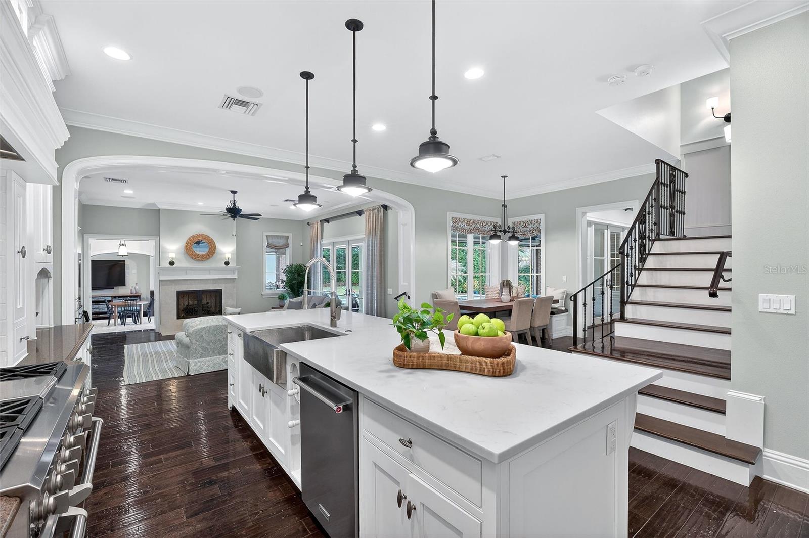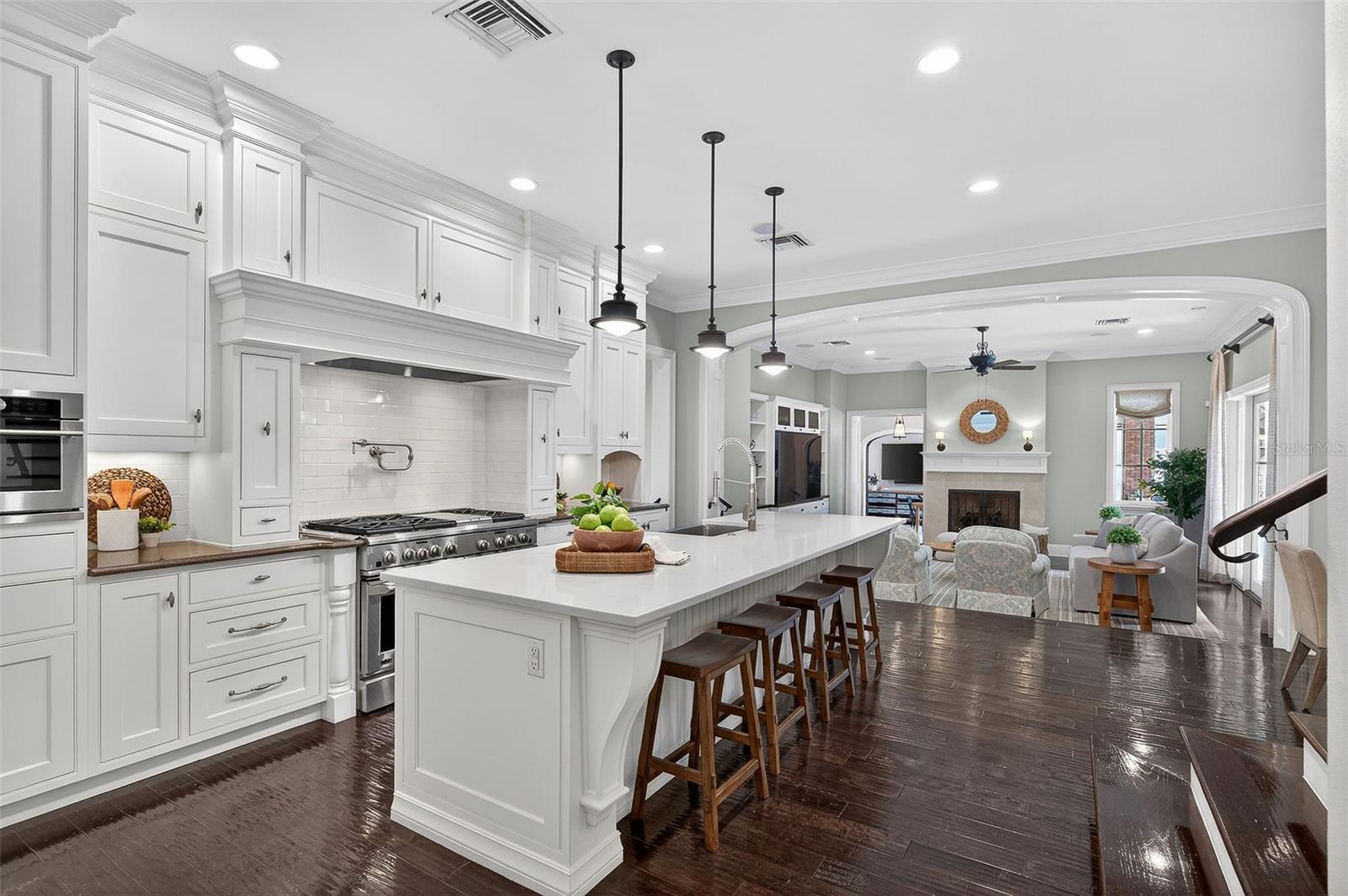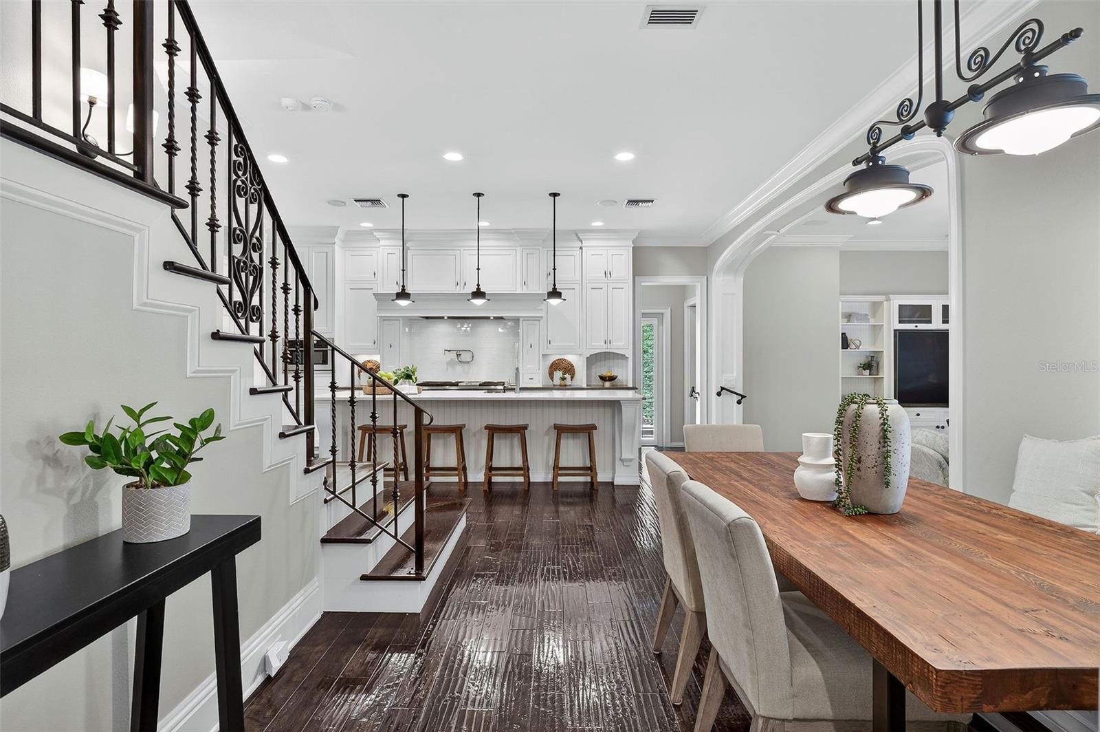 O charme e a elegância arquitetônica do Grand Southern definem esta residência imponente em um dos bairros mais desejáveis de Winter Park, situado ao longo de uma rua tranquila de tijolos, a poucos passos do Lago Chelton. Posicionada em quase meio acre, a casa se estende por mais de 5.200 pés quadrados, oferecendo 5 quartos, 4,5 banheiros, um escritório designado, uma grande e versátil sala de mídia/jogos, uma garagem para 3 carros e uma ampla varanda com cozinha de verão e estilo resort piscina - tudo reunido em um layout inteligente e bem planejado, ideal para a vida cotidiana sem esforço e entretenimento excepcional. Entre em um interior lindamente selecionado, onde ricos detalhes arquitetônicos e design habitável se unem. O extenso trabalho em marcenaria personalizado - visto em molduras detalhadas, acabamentos e embutidos - adiciona profundidade e personalidade por toda parte. A entrada se abre para graciosos espaços de estar e jantar, complementados por uma impressionante adega com mais de 550 garrafas com temperatura controlada. No coração da casa, uma cozinha lindamente decorada, com armários de madeira branca, fogão a gás de seis bocas, uma ilha de quartzo enorme e uma deliciosa copa que se conecta perfeitamente à sala de família com embutidos personalizados e lareira - criando um espaço de reunião natural. Escondida, a suíte principal do primeiro andar oferece uma espaçosa área de estar, um armário lindamente personalizado com área de vestir e um banheiro luxuoso com piso de mármore, um grande box amplo duplo, pias duplas, uma banheira vitoriana e armários de linho embutidos - projetados como um santuário calmo e privado. O primeiro nível também possui um quarto de hóspedes privativo com banheiro privativo, criando um ambiente ideal para amigos e familiares. Uma lavanderia de tamanho generoso oferece armários abundantes e armazenamento excepcional, tornando as tarefas diárias fáceis. No andar de cima, três quartos espaçosos e dois banheiros completos oferecem acomodações confortáveis, com dois quartos abrindo através de portas francesas para a varanda dupla frontal - perfeita para desfrutar de vistas tranquilas das copas das árvores. A parte de trás da casa se desdobra em torno de uma bela piscina e spa, com portas francesas de vários quartos que se abrem para a varanda e criam uma conexão natural entre interior e exterior. Telas retráteis permitem desfrutar durante todo o ano da cozinha de verão bem equipada, tornando-a ideal tanto para noites descontraídas quanto para entretenimento fácil. Outros destaques notáveis: um gerador de gás natural para toda a casa, ampla calçada de tijolos e quadra de motor, portão automatizado, sistema de som integrado, câmeras de segurança e novo telhado 2024. Por último, esta propriedade profunda oferece as melhores escolas de Winter Park e fácil acesso ao Park Ave, Downtown Orlando, Audubon Park Garden District e Baldwin Park.