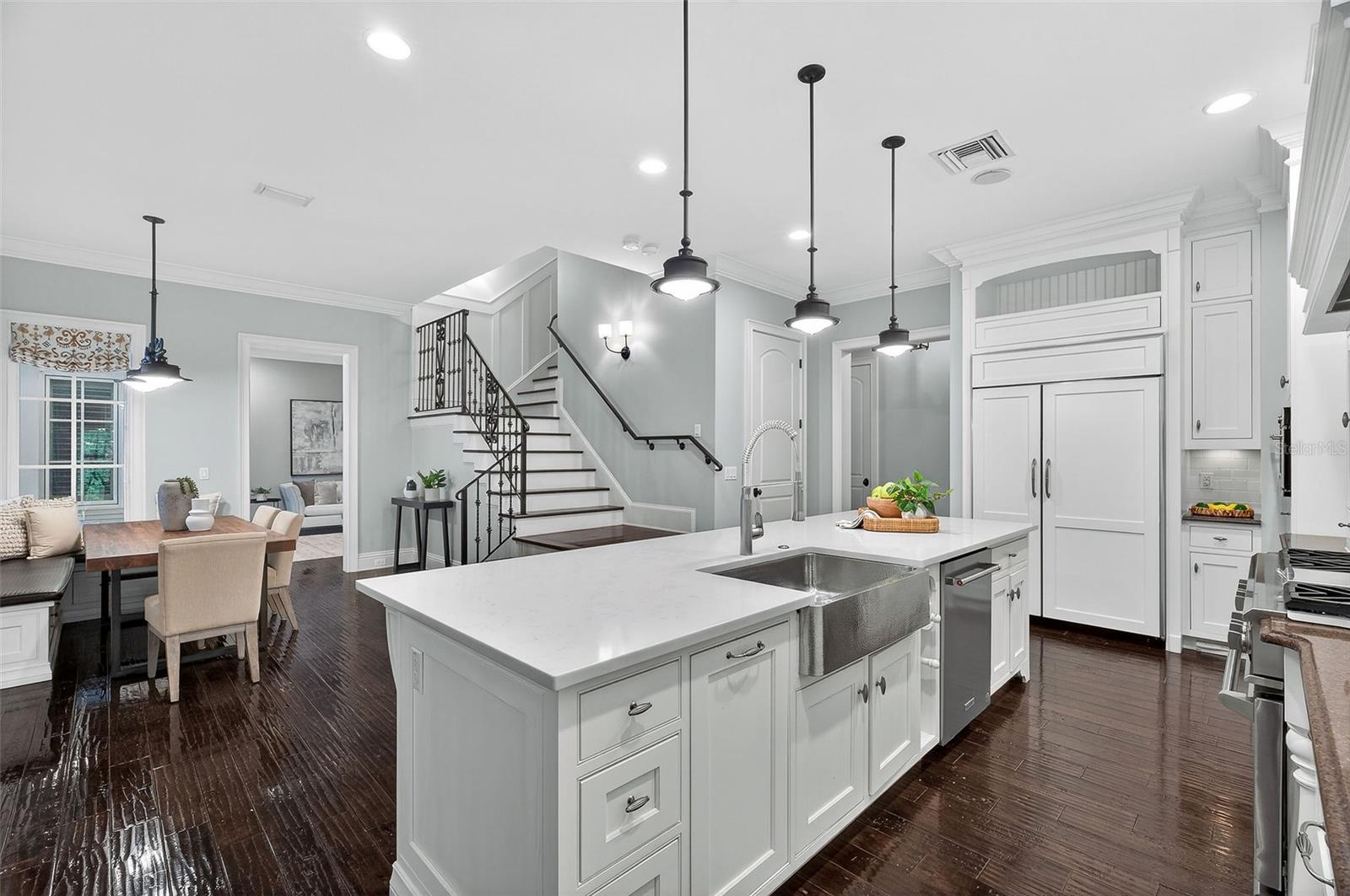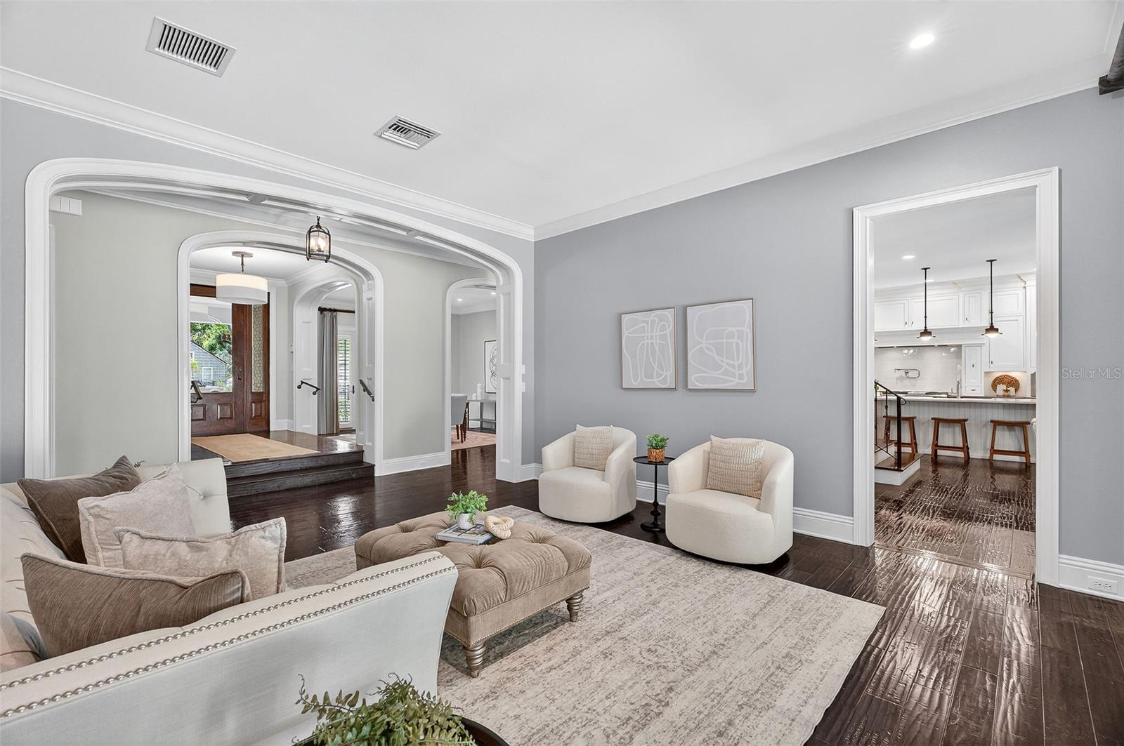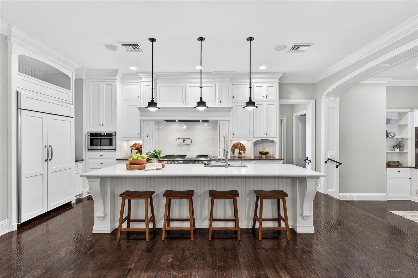 O charme e a elegância arquitetônica do Grand Southern definem esta residência imponente em um dos bairros mais desejáveis de Winter Park, situado ao longo de uma rua tranquila de tijolos, a poucos passos do Lago Chelton. Posicionada em quase meio acre, a casa se estende por mais de 5.200 pés quadrados, oferecendo 5 quartos, 4,5 banheiros, um escritório designado, uma grande e versátil sala de mídia/jogos, uma garagem para 3 carros e uma ampla varanda com cozinha de verão e estilo resort piscina - tudo reunido em um layout inteligente e bem planejado, ideal para a vida cotidiana sem esforço e entretenimento excepcional. Entre em um interior lindamente selecionado, onde ricos detalhes arquitetônicos e design habitável se unem. O extenso trabalho em marcenaria personalizado - visto em molduras detalhadas, acabamentos e embutidos - adiciona profundidade e personalidade por toda parte. A entrada se abre para graciosos espaços de estar e jantar, complementados por uma impressionante adega com mais de 550 garrafas com temperatura controlada. No coração da casa, uma cozinha lindamente decorada, com armários de madeira branca, fogão a gás de seis bocas, uma ilha de quartzo enorme e uma deliciosa copa que se conecta perfeitamente à sala de família com embutidos personalizados e lareira - criando um espaço de reunião natural. Escondida, a suíte principal do primeiro andar oferece uma espaçosa área de estar, um armário lindamente personalizado com área de vestir e um banheiro luxuoso com piso de mármore, um grande box amplo duplo, pias duplas, uma banheira vitoriana e armários de linho embutidos - projetados como um santuário calmo e privado. O primeiro nível também possui um quarto de hóspedes privativo com banheiro privativo, criando um ambiente ideal para amigos e familiares. Uma lavanderia de tamanho generoso oferece armários abundantes e armazenamento excepcional, tornando as tarefas diárias fáceis. No andar de cima, três quartos espaçosos e dois banheiros completos oferecem acomodações confortáveis, com dois quartos abrindo através de portas francesas para a varanda dupla frontal - perfeita para desfrutar de vistas tranquilas das copas das árvores. A parte de trás da casa se desdobra em torno de uma bela piscina e spa, com portas francesas de vários quartos que se abrem para a varanda e criam uma conexão natural entre interior e exterior. Telas retráteis permitem desfrutar durante todo o ano da cozinha de verão bem equipada, tornando-a ideal tanto para noites descontraídas quanto para entretenimento fácil. Outros destaques notáveis: um gerador de gás natural para toda a casa, ampla calçada de tijolos e quadra de motor, portão automatizado, sistema de som integrado, câmeras de segurança e novo telhado 2024. Por último, esta propriedade profunda oferece as melhores escolas de Winter Park e fácil acesso ao Park Ave, Downtown Orlando, Audubon Park Garden District e Baldwin Park.