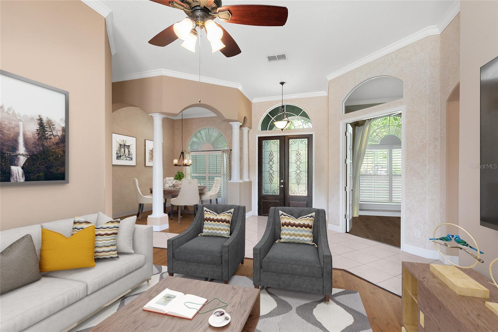 Uma ou mais fotos foram virtualmente encenadas. Esta deslumbrante propriedade personalizada GOLF FRONT no coração de Tuscawilla ocupa mais de meio acre e não possui requisitos obrigatórios de HOA! Com 6 quartos, 4 banheiros e duas garagens para 3 carros com armazenamento para barco ou trailer, há espaço para toda a sua família e uma frota de carros. Como um bônus adicional, a garagem individual para 3 carros (construída em 2020) oferece potencial para conversão em suíte de sogros, escritório privativo, academia doméstica, etc. o clube de campo, dois parques incríveis e uma trilha ecológica. Desfrute de vistas tranquilas do campo de golfe a partir da grande varanda com piscina com aquecimento solar e quintal bem cuidado, completo com cerca de alumínio segura para todos os tipos de brincadeiras! No interior, as áreas de estar e de jantar apresentam pisos de madeira raspada à mão, tetos altos com sancas e portas francesas que levam ao convidativo espaço ao ar livre. A planta baixa de estilo tradicional é reforçada por portas de 8', rodapés de 6'' e muitas janelas e travessas de vidro que inundam a casa com luz natural. Na cozinha aberta com abundante arrumação e na imensa sala familiar com lareira, a vista é deslumbrante, destacando-se a piscina com aquecimento solar, o imenso quintal e as vistas para o golfe. A arrumação e outras comodidades abundam não só na cozinha, mas também na espaçosa lavandaria com armários de qualidade. Descanse à vontade com os novos telhados (2020). Desfrute das vistas panorâmicas da piscina e do campo de golfe a partir da janela de vidro na copa e em toda a casa. O layout inclui uma suíte de hóspedes privativa no térreo, outra ala com dois quartos grandes compartilhando um banheiro Jack e Jill. No andar de cima, o quinto quarto com closet próprio e banheiro completo proporciona um retiro tranquilo. A suíte master é um refúgio luxuoso com área de estar, closet amplo e banheiro lindamente decorado. O escritório adjacente com armário também pode ser usado como berçário ou 6º quarto. A oportunidade está batendo: abra a porta da casa dos seus sonhos! Observação: o vendedor considerará uma compra de arrendamento.