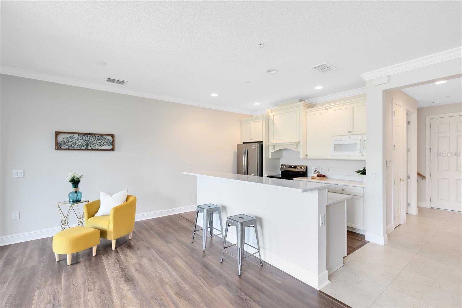 Uma ou mais fotos foram virtualmente encenadas. Muito! Sério, este é o preço mais baixo e a melhor vista de qualquer casa geminada de dois quartos com ELEVADOR no verde por quase uma década! Esta linda moradia com elevador privado está pronta para morar! Desfrute de vistas deslumbrantes do campo de golfe e do mar em quase todos os quartos. Construída inteiramente em bloco de cimento, adornada com telhado de telha de alta qualidade, janelas de vidro duplo e ambiente livre de manutenção! A espaçosa residência urbana apresenta uma planta aberta, QUARTOS GIGANTES COM EN-SUITE, tetos altos e janelas com vidros duplos. Com elevador fácil de operar, garagem para 1 1/2 carros (perfeito para um carro e um carrinho de golfe ou armazenamento) e alpendre com vista para água e fonte, esta é facilmente a melhor escolha para pássaros da neve, viajantes e residentes em tempo integral que estão cansados de manter a manutenção em dia. A enorme suíte principal com banheiro luxuoso inclui banheira de imersão e chuveiro separado, além de um espaçoso quarto de hóspedes com banheiro privativo. Esta joia está localizada em um condomínio fechado exclusivo ao lado, com caminho privado para o Tuscawilla Golf and Country Club, onde os membros desfrutam de refeições, tênis, piscina olímpica JR, academia e um cênico campo de golfe profissional cercado pela natureza. Esta casa oferece verdadeira tranquilidade, já que o HOA abrangente cuida de tudo - incluindo reparo e substituição de telhado, seguro de construção externa totalmente coberto, toda manutenção externa, paisagismo, controle de pragas, irrigação, acesso fechado, parque privativo para cães e muito mais. Devido ao seguro externo coberto pelo HOA, a apólice pessoal do proprietário é mínima (somente HO6), oferecendo ainda mais economia e simplicidade. Ao se mudar para cá, você poderá se concentrar em aproveitar a vida sem preocupações! Dentro de casa, você encontrará uma área de estar aberta e bem iluminada com piso de pranchas de vinil luxuoso e fácil de cuidar e uma cozinha moderna com bancadas de quartzo, armários de alta qualidade e eletrodomésticos novos. Entre na varanda dos fundos e aprecie a vista tranquila do lago e da fonte, com pássaros e vida selvagem contribuindo para o ambiente sereno. A garagem para 1 carro e meio tem espaço para um carro e um carrinho de golfe, além de uma garagem espaçosa para hóspedes. E quando é hora de viajar? Apenas tranque a porta e vá embora! Isto é mais do que uma casa – é um estilo de vida de conforto, segurança e facilidade.