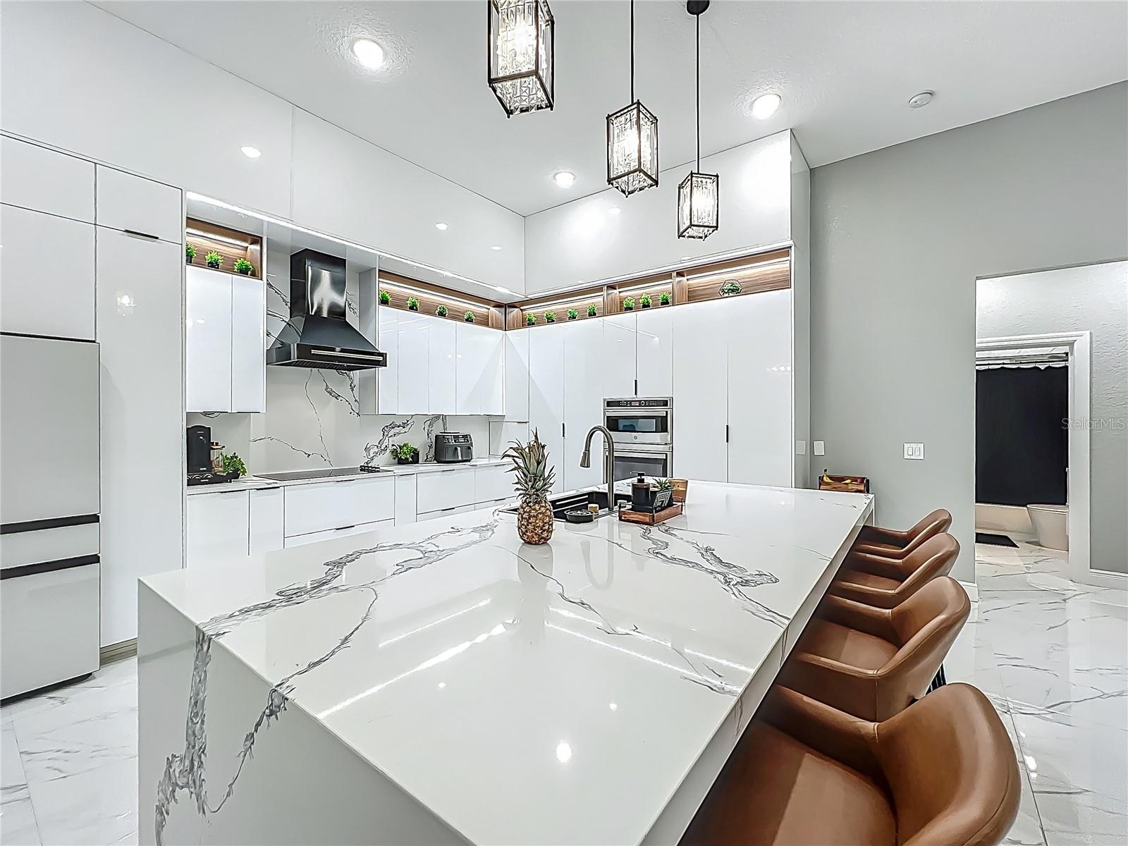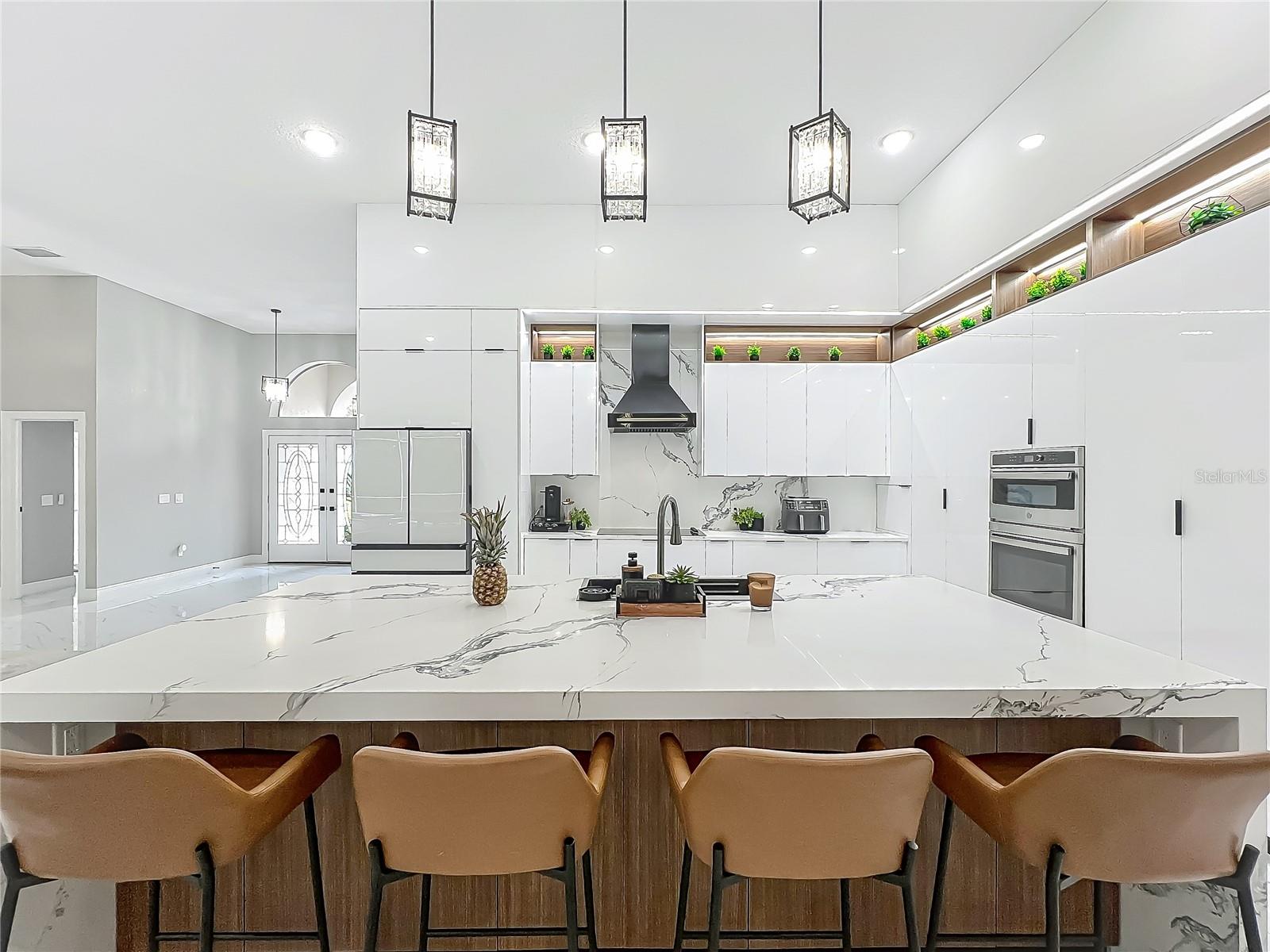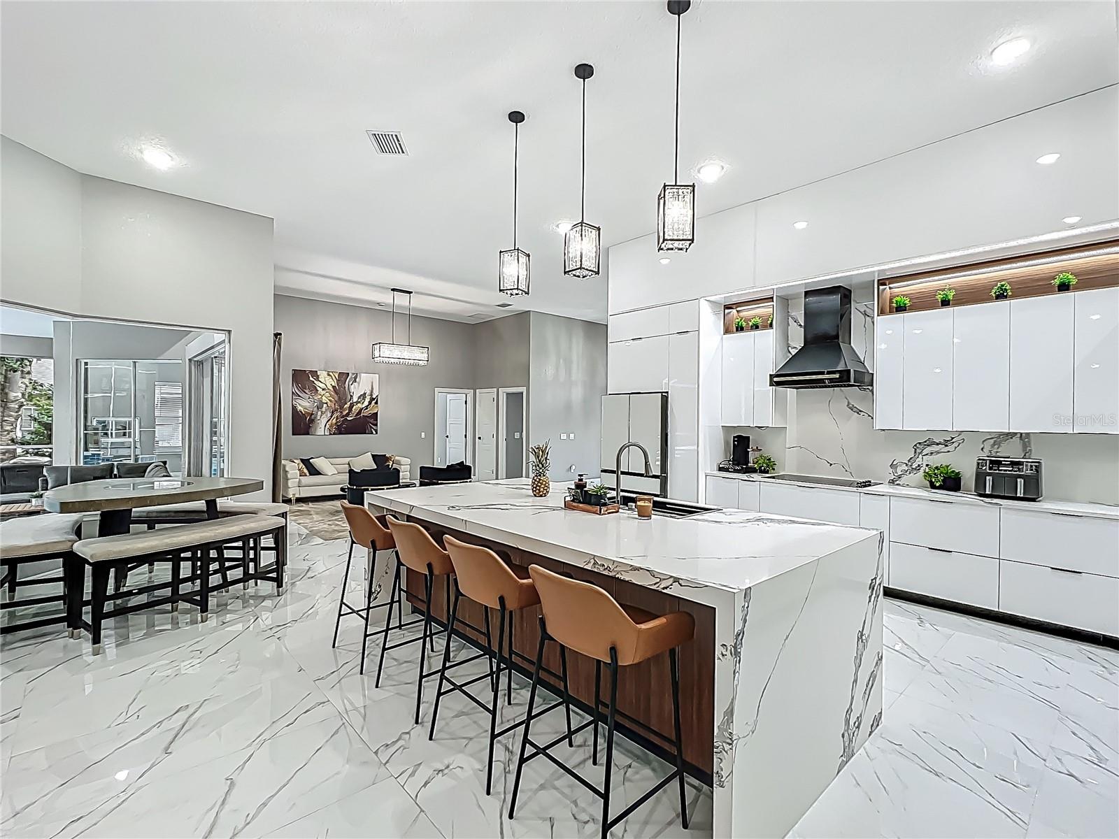 Redução de preços principal - oportunidade excepcional! Bem -vindo a uma obra -prima do design moderno e da vida refinada na prestigiada comunidade Glen Eagle de Tuscawilla. Construído em 2023, essa re-imaginação arquitetônica escondida em um beco sem saída tranquilo apresenta 5 quartos e 3,5 banheiros e simboliza luxo, sofisticação e homenagem atenciosa a cada passo, encapsulando o espaço da família moderna. Banhado em luz natural, a casa mostra uma interação brilhante entre design e iluminação. A ladrilho de porcelana deslumbrante com um acabamento semelhante a um mármore flui perfeitamente por toda a casa, complementando os equipamentos extravagantes, mas refinados, que acentuam a estética elevada da casa. O coração da casa é uma cozinha central parada, completa com armários brancos elegantes do chão ao teto, acentuados com nichos de madeira quentes e iluminação LED integrada. Uma grande ilha de granito branco oferece uma peça central convidativa, ideal para entretenimento, arte culinária e interconectividade familiar. O layout de conceito aberto é aprimorado por tetos crescentes e janelas amplas, criando espaços palaciais que exalam elegância e calor. Uma sala de jantar formal substancial é perfeita para jantares luxuosos, enquanto a elegante sala de estar formal oferece um espaço sereno para conversar. A sala de estar convidativa, ancorada por uma lareira elétrica elegante, flui sem esforço para a cozinha e a área de estar-tudo com vista para o deck da piscina no estilo resort. A suíte primária é um santuário privado-expansivo e sereno, com uma área de estar beijada pelo sol e acesso direto à piscina por meio de uma porta de vidro deslizante. O Bath, inspirado em spa, é uma declaração em luxo, com uma vaidade dupla flutuante com espelhos inteligentes LED, um chuveiro de grande porte, um banheiro de designer de peça única e um armário personalizado projetado para o proprietário exigente. Cada quarto secundário oferece proporções e conforto generosos, enquanto o layout da casa foi meticulosamente planejado para privacidade e fluxo. Saia de um oásis de piscina coberta com um deck pastido projetado para diversão durante todo o ano. Seja hospedando hóspedes ou relaxando em solidão, este refúgio ao ar livre é o complemento perfeito para o interior moderno. Glen Eagle está no coração da comunidade Tuscawilla, que apresenta quilômetros de trilhas para caminhada, estradas amigáveis para carrinho de golfe, vários parques e espaços verdes, incluindo quadras de tênis e pickleball, bem como o Tuscawilla Country Club. Uma rara oportunidade de possuir uma residência verdadeiramente sob medida em uma das comunidades mais procuradas da Flórida no centro.