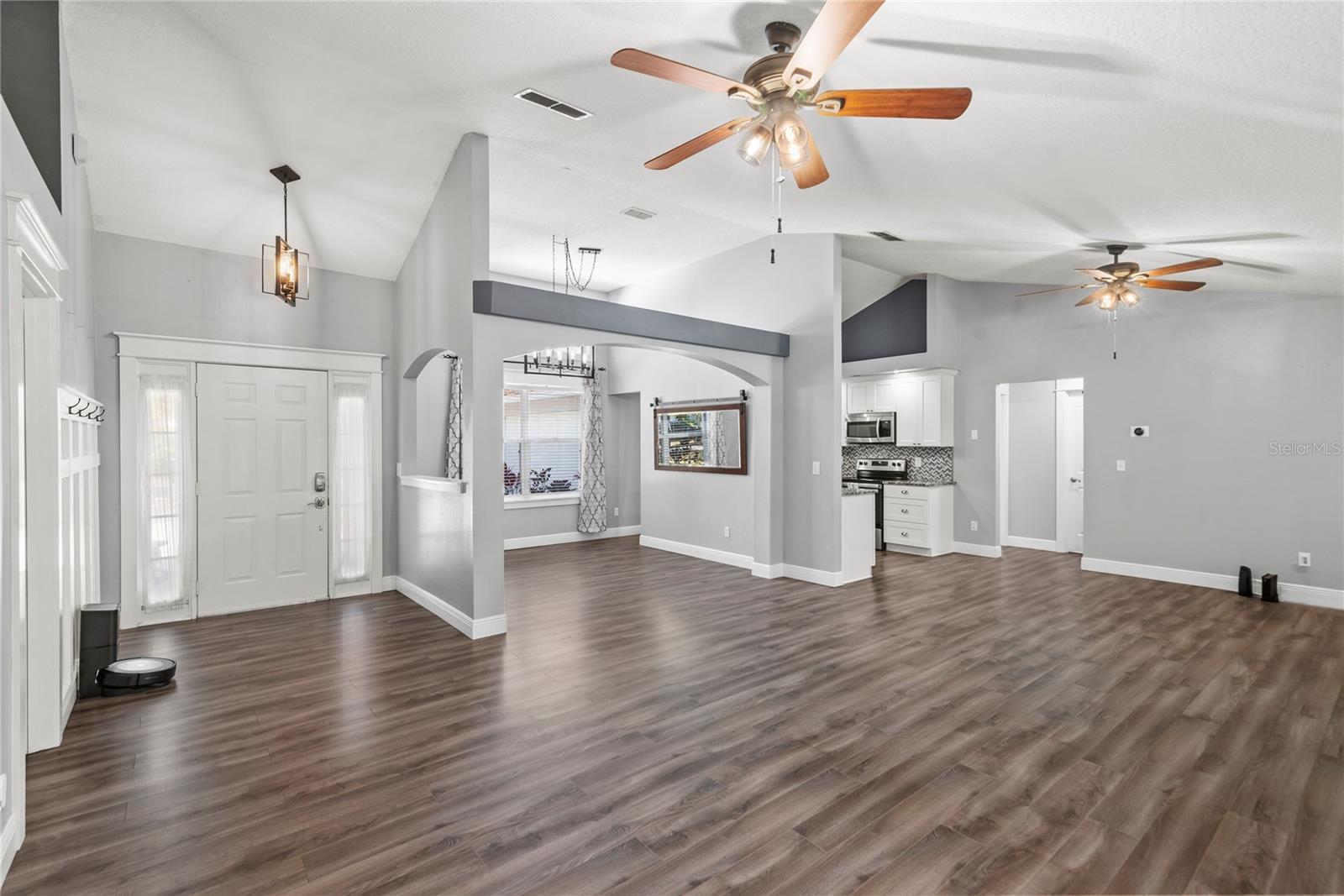 Esta linda casa de 3 camas de 2 camas é imperdível! Sem HOA! A casa fica em um lote de 0,63 acres que tem paisagismo maduro e fica ao longo do pacífico Gee Creek. Aproveite o piso plano aberto, o grande quarto da família e tetos altos abobadados, com ventiladores de teto em todos os quartos! A cozinha possui balcões de granito, backsplash, utensílios de aço inoxidável combinando, muito espaço no gabinete e uma área de jantar separada. O quarto principal tem um closet e um banheiro mestre com um passeio no chuveiro e pia de vaidade dupla. Fora da cozinha, você encontrará sua lavanderia interior e espaço flexível na sala de estar que funciona muito bem como um espaço de escritório em casa. Da sala de estar, você tem as portas francesas que levam à varanda, onde você pode sentar e desfrutar do quintal cercado de privacidade com vista para a área arborizada atrás do riacho. O AC foi substituído em 2019, nova geladeira nos últimos 6 meses