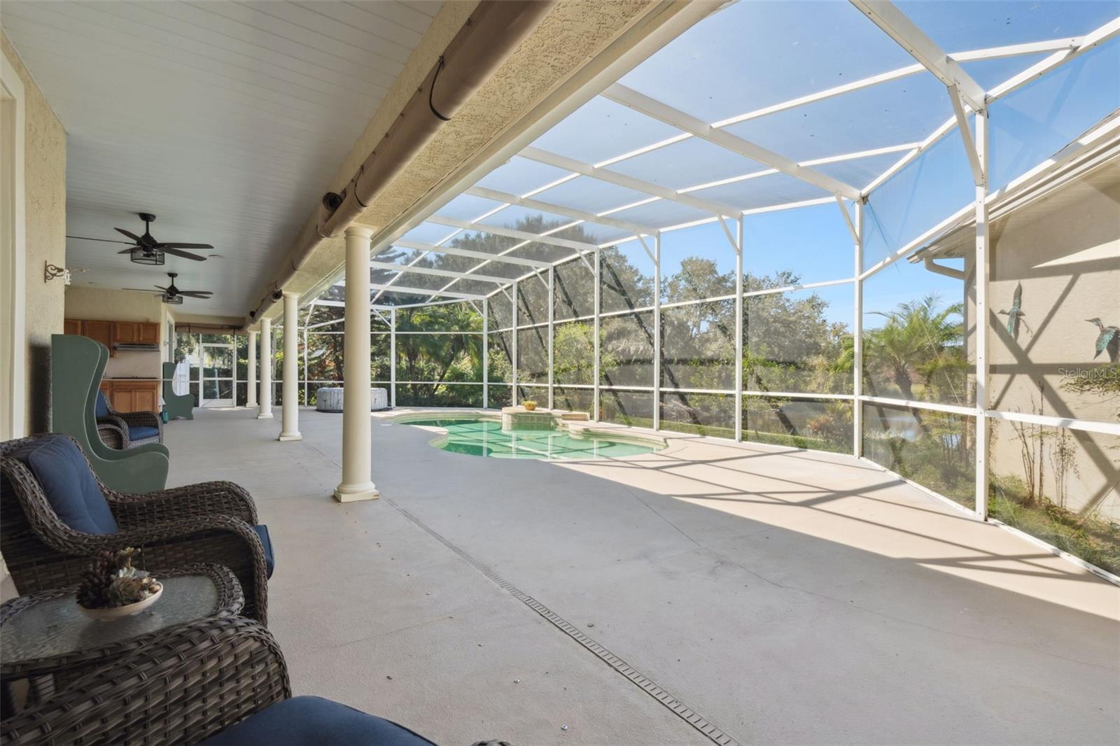 A casa dos seus sonhos o aguarda com esta IMPRESSIONANTE casa com PISCINA de 3 quartos e 2,5 banheiros, CONSTRUÍDA PERSONALIZADAMENTE, com um quarto bônus e GARAGEM para trailers na tranquila comunidade de Lakes and Springs em Yalaha! Situada em um terreno de esquina de 0,78 com belo paisagismo e VISTA PARA LAGOA E PASTO, esta casa oferece um artesanato excepcional por toda parte. Entre em uma planta aberta e iluminada com piso de porcelanato italiano, sancas, tetos altos e acabamentos elegantes. Uma sala de jantar formal com um lustre de latão real cumprimenta você à direita, enquanto um espaço flexível com sua própria lareira aconchegante, perfeito para um escritório doméstico, fica à sua esquerda. A sala familiar destaca-se pelo tecto em caixotões, iluminação embutida e lareira eléctrica embutida. Paredes de portas de vidro deslizantes enchem a casa de luz natural e emolduram vistas tranquilas da piscina e do lago. A cozinha inspirada no chef é uma verdadeira peça central, com bancadas de quartzo Silestone, fornos de parede dupla, fogão de indução magnética GE Profile, armários personalizados com prateleiras deslizantes para temperos, iluminação sob/sobre o armário, backsplash de azulejos, despensa e uma copa adjacente com vista para a piscina. A suíte principal é um retiro sereno com teto falso, banheiro privativo luxuoso com pias divididas, box amplo e acessibilidade para cadeiras de rodas, além de closets duplos grandes com prateleiras personalizadas. Dois quartos adicionais oferecem amplo espaço para os hóspedes, enquanto a sala bônus no andar de cima oferece o cenário perfeito para um quarto quarto, home theater, sala de ginástica e muito mais. Vá ao ar livre para seu oásis particular com piscina de água salgada, cozinha de verão, varanda com telas anti-furacões e vistas deslumbrantes do lago. Uma garagem grande para dois carros e GARAGEM SEPARADA para trailers com serviço de 30 e 50 A fornecem armazenamento e conveniência excepcionais. Os destaques adicionais incluem janelas de baixa emissividade, novo poço e sistema de tratamento de água para toda a casa (2023), aspiração central e telhado 2020. Experimente a sensação de um retiro no campo enquanto estiver a poucos minutos de lojas e restaurantes, incluindo a famosa Yalaha Bakery, o Mission Resort, onde você pode jogar uma partida de golfe ou desfrutar de um dia de spa, rampas de barco para a cadeia de lagos Harris e principais estradas. Não perca a chance de tornar sua esta joia verdadeiramente única em casa hoje mesmo! *Os limites da propriedade com fotos aéreas são uma estimativa e devem ser verificados pelo comprador.