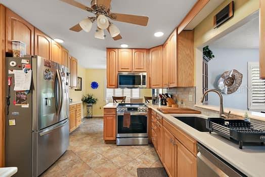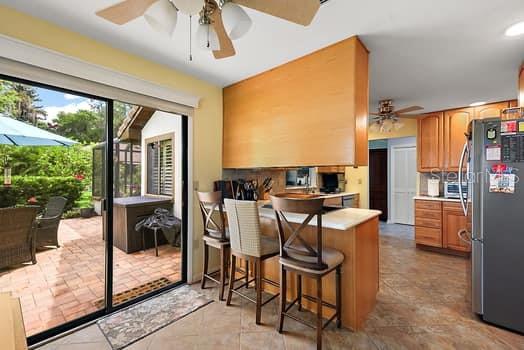 MUDANÇA PRONTA! COMUNIDADE À BEIRA-MAR NA CADEIA DE LAGOS HARRIS Grande cozinha remodelada em 2023 com superfícies sólidas de quartzo, balcão para café da manhã e sala de jantar. Banheiros reformados em 2022, lindos azulejos, chuveiro enorme com chuveiros duplos, espelhos de maquiagem iluminados. 2 closets no quarto principal. Belo pátio aberto e varanda para entretenimento. Quarto Florida claro e luminoso, além de um espaçoso Great Room. Quartos generosos com grandes armários. Novas persianas e persianas por toda parte. Este paraíso tropical está localizado no lado sul do belo Lago Harris. Clubhouse, piscina comunitária, rampa para barcos, fogueira na marina e píer de pesca. Deslizamentos para barcos, quando disponíveis: $ 67,41 trimestralmente e espaços de armazenamento para barcos, trailers e trailers, quando disponíveis: $ 16,05 trimestralmente. A poucos minutos de lojas, restaurantes, parques e vários campos de golfe públicos.