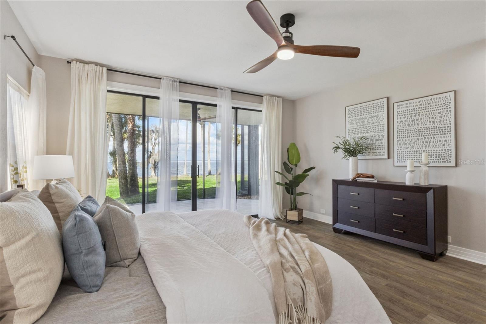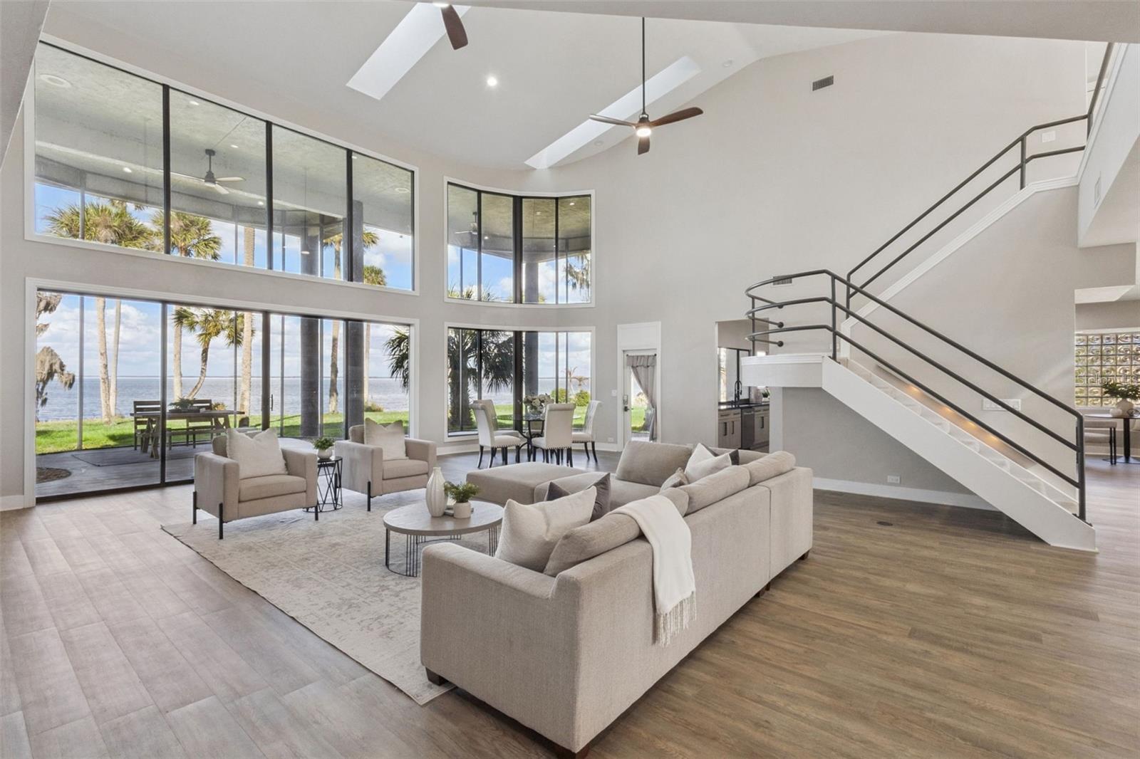 O vendedor motivado fez uma enorme redução de preço! Acorde com vistas deslumbrantes do nascer do sol sobre o Lago Harris e desfrute de acesso direto à renomada Cadeia de Lagos Harris a partir desta excepcional propriedade à beira-mar na comunidade privada de Waterwood. Conhecida por seus passeios de barco, pesca e restaurantes à beira-mar, a Harris Chain oferece mais de 75.000 acres de lagos conectados e inúmeras oportunidades recreativas. Esta casa personalizada de quase 5.000 pés quadrados foi cuidadosamente reimaginada com acabamentos de design e um layout aberto e cheio de luz que emoldura vistas panorâmicas deslumbrantes do lago. Uma estética orgânica moderna com influências tranquilas de luxo enfatiza texturas naturais, linhas limpas e uma sensação de sofisticação sem esforço. Piso de pranchas de vinil luxuoso, carpete macio no quarto e iluminação refinada criam um interior aconchegante e coeso. No coração da casa há uma cozinha de chef espetacular com eletrodomésticos de aço inoxidável de nível profissional, bancadas de quartzo e armários personalizados, todos com vista para a água. A cozinha flui perfeitamente para a copa e para a ampla área de estar, tornando-a ideal para entretenimento. Uma adega personalizada e uma área de jantar formal realçam ainda mais o design elevado da casa. Duas luxuosas suítes primárias, cada uma com varanda privativa e banheira inspirada em spa, são retiros tranquilos à beira-mar. Banheiras adicionais tipo spa e acomodações generosas proporcionam conforto para a família e visitantes. As atualizações recentes incluem um novo telhado (2022), telas aprimoradas no pátio, pintura interna renovada, iluminação elegante e uma lareira elétrica, bem como duas unidades HVAC para conforto durante todo o ano. A enorme garagem para três carros oferece armazenamento abundante para veículos e equipamentos recreativos. Ao ar livre, desfrute de mais de 30 metros de frente para o lago privativo, uma varanda coberta de 18 metros e espaço para adicionar uma futura piscina infinita. Lance seu barco ou embarcação diretamente de seu quintal e explore restaurantes próximos à beira-mar e cidades encantadoras como Monte Dora, Tavares e Eustis. Os residentes de Waterwood também têm acesso a uma marina comunitária privada com 22 ancoradouros. Os entusiastas do golfe apreciarão a proximidade da casa com Mission Inn, a apenas cinco minutos de distância, e com a academia de golfe júnior em Bishops Gate. Idealmente localizada a aproximadamente 10 minutos da Florida Turnpike, com acesso conveniente às praias de Orlando, Tampa e da Flórida, esta casa oferece uma rara mistura de privacidade, luxo e conectividade. Esta é uma vida refinada à beira do lago, projetada para aqueles que valorizam espaço, cenário e uma casa cuidadosamente selecionada. Agende sua exibição privada hoje.