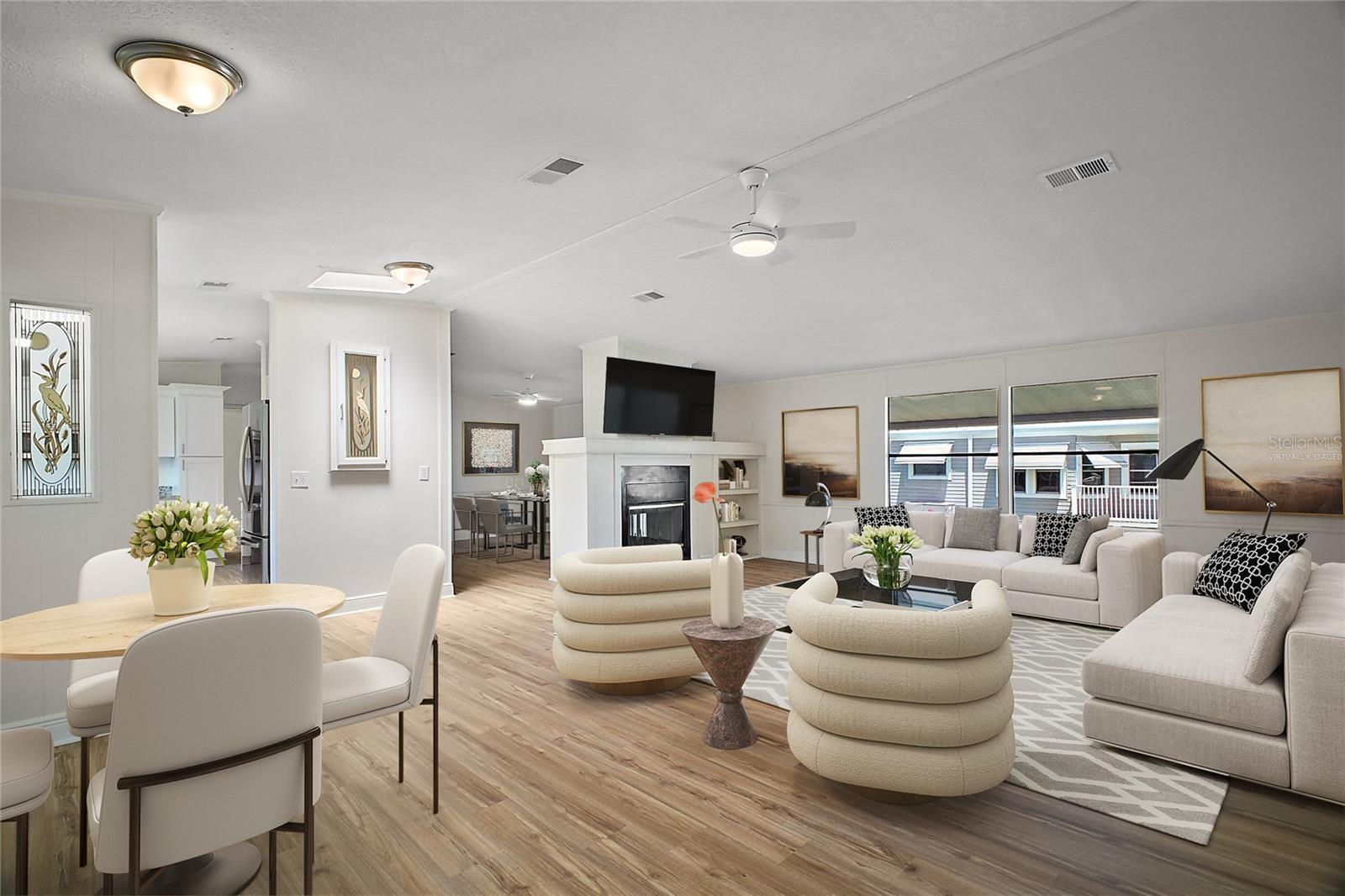 Uma ou mais fotos foram praticamente encenadas. ***** PREÇO IPROVEMENTO DE IPROVEMENTO ***** O vendedor motivado diz que traga uma oferta ***** Passo para esta casa fabricada lindamente nomeada, oferecendo uma mistura convidativa de conforto e elegância em uma comunidade mais procurada de 55 mais. Esta residência espaçosa possui um plano de quarto dividido bem projetado, garantindo privacidade para proprietários e convidados. O coração da casa apresenta uma cozinha moderna equipada com bancadas de granito de balcão novinho em folha, perfeitas para entretenimento ou jantar. A cozinha é completa com uma pia de aço inoxidável elegante e um conjunto completo de utensílios de aço inoxidável, combinando estilo e funcionalidade. Adjacente à cozinha, desfrute de refeições na aconchegante área de Dinets ou organiza reuniões na sala de jantar formal. Descontraia na sala de estar, onde uma lareira de dupla face, atordoada, acrescenta calor e ambiente, também acessíveis a partir da sala de família-ideal para aquelas noites frias de inverno. Lavanderia interna com Business Center fala com conveniência. A vida ao ar livre é igualmente impressionante, com duas varandas amplas, uma de cada lado da casa, oferecendo amplo espaço para relaxar sem a distração dos vizinhos traseiros. Esta comunidade vibrante oferece um estilo de vida semelhante ao resort com comodidades de primeira linha, incluindo um clube, fitness center, piscina de swinning, quadras de tênis, bola de pickle, campo de golfe e acesso ao carrinho de golfe. Com um guarda no local, você pode desfrutar de paz de espírito nesta comunidade fechada e segura. ### Seller substituirá o teto pela oferta ressonável ###